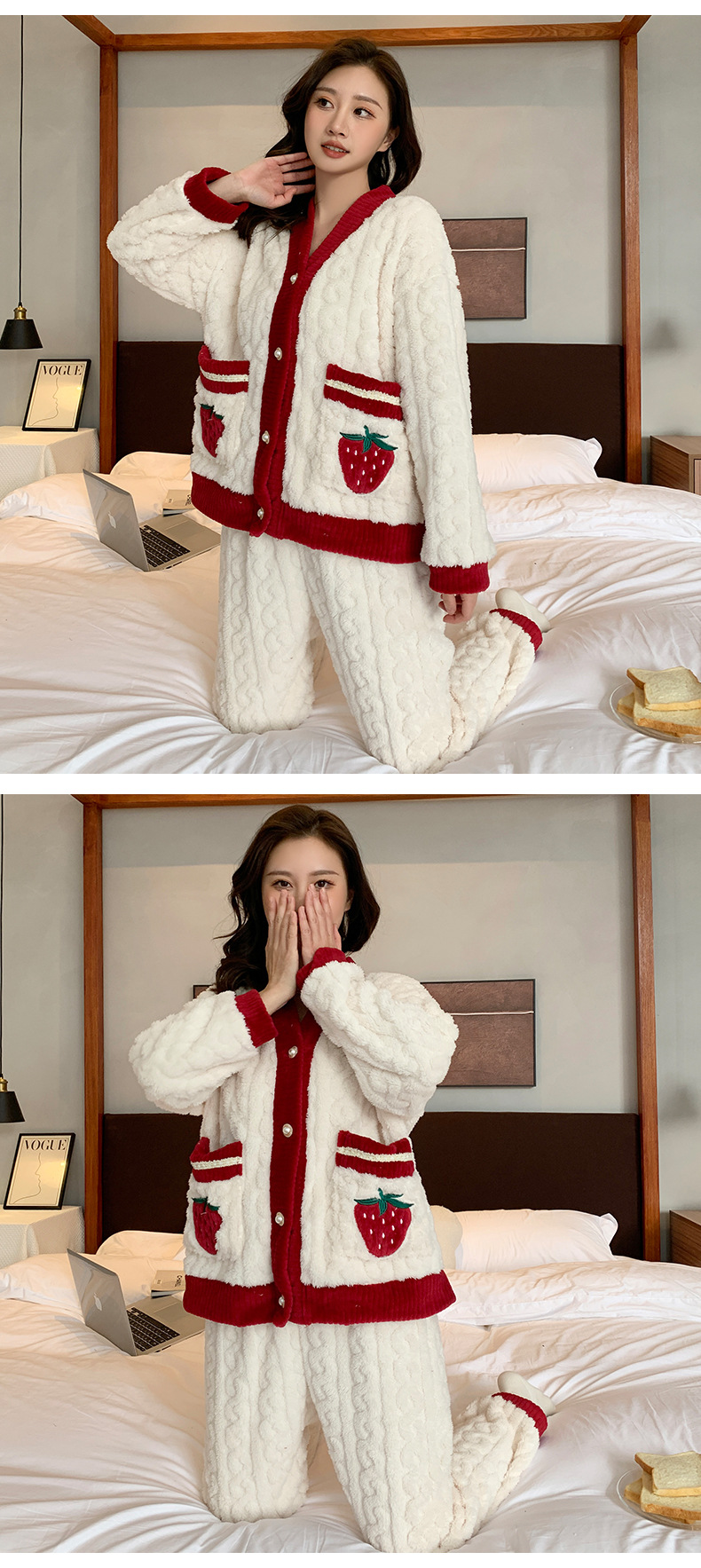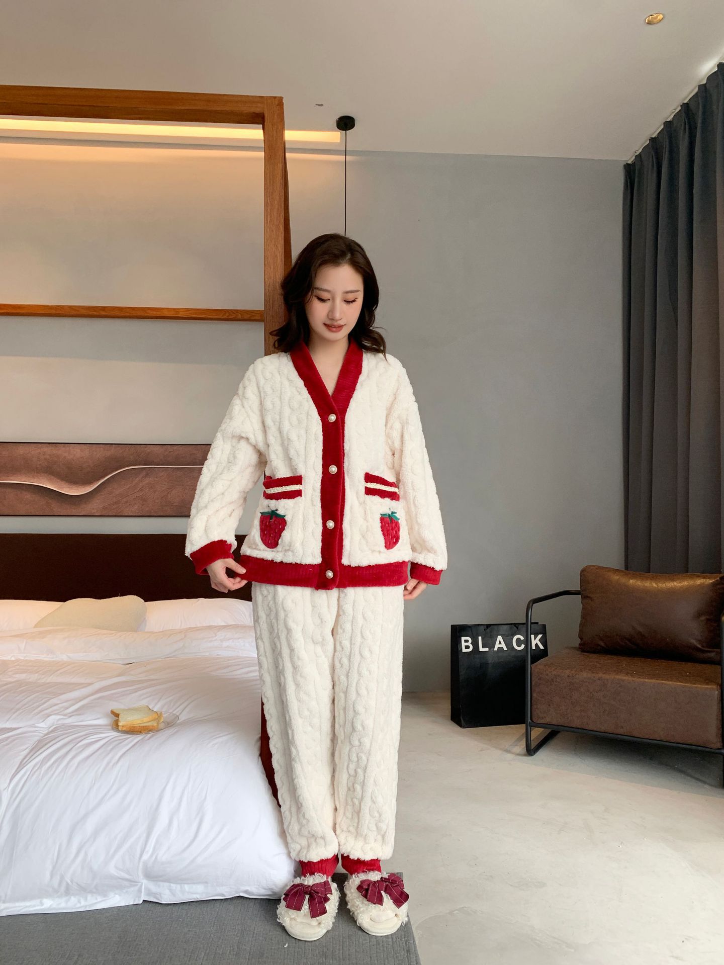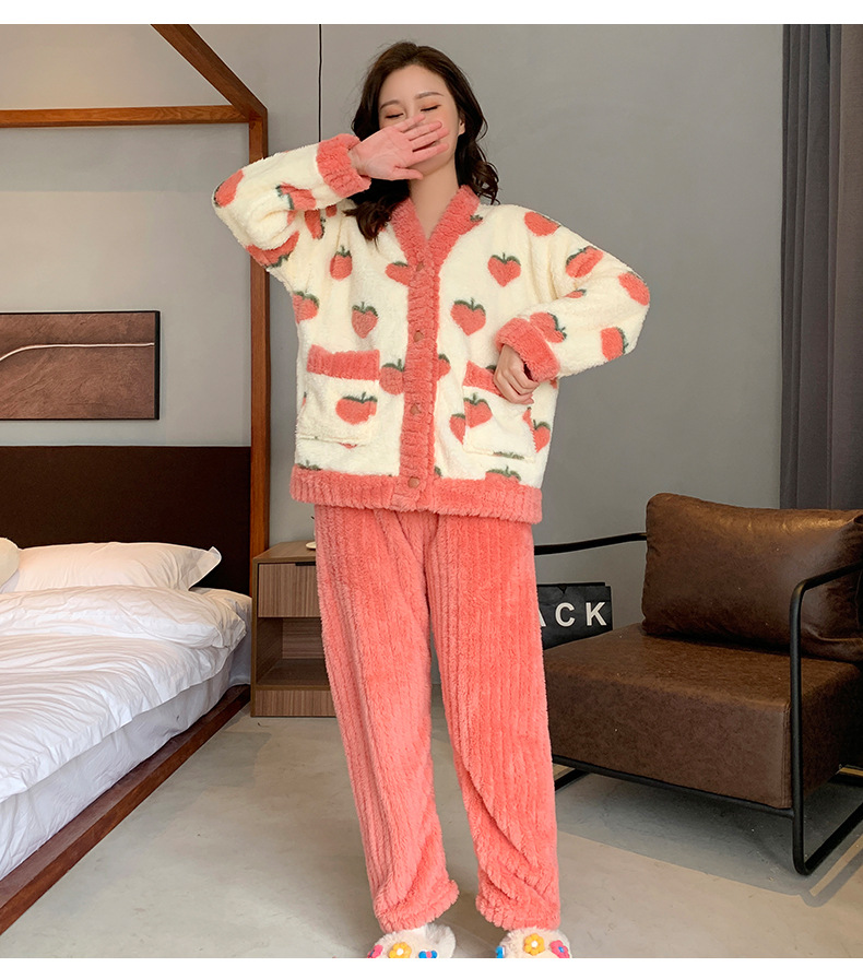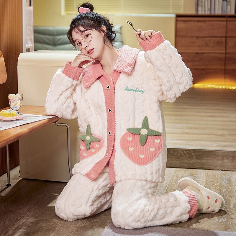 2023新春秋珊瑚绒睡衣女甜美可爱加绒加厚套装法兰绒家居服外穿