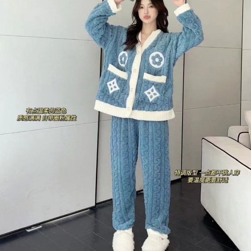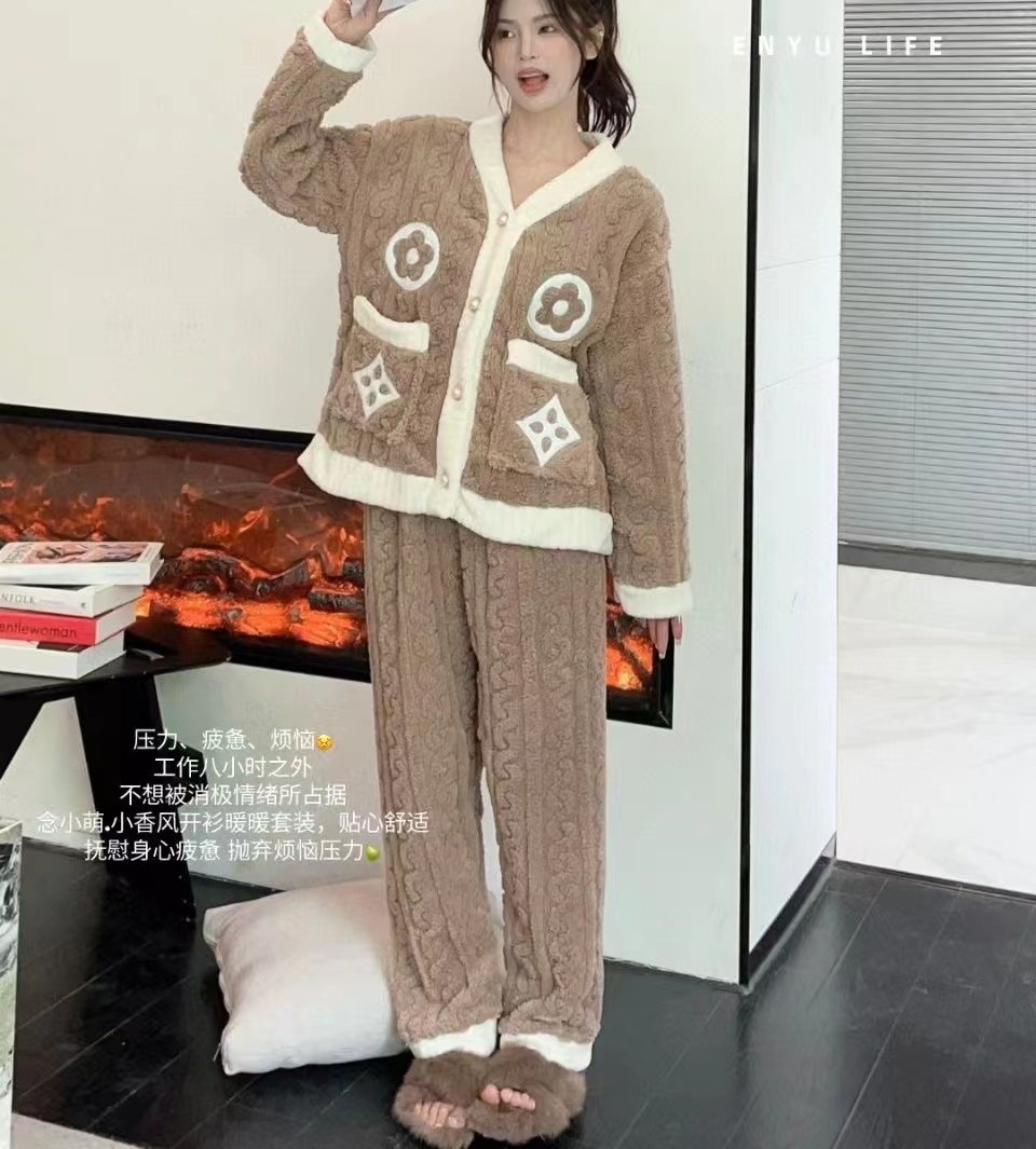 秋冬珊瑚绒睡衣女长袖加厚家居服月牙水蜜桃舒棉绒大码时尚女套装