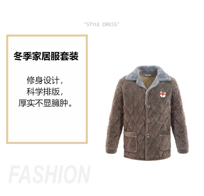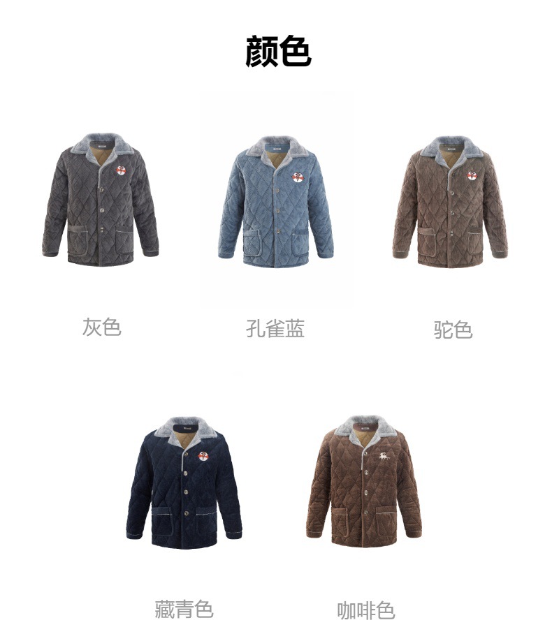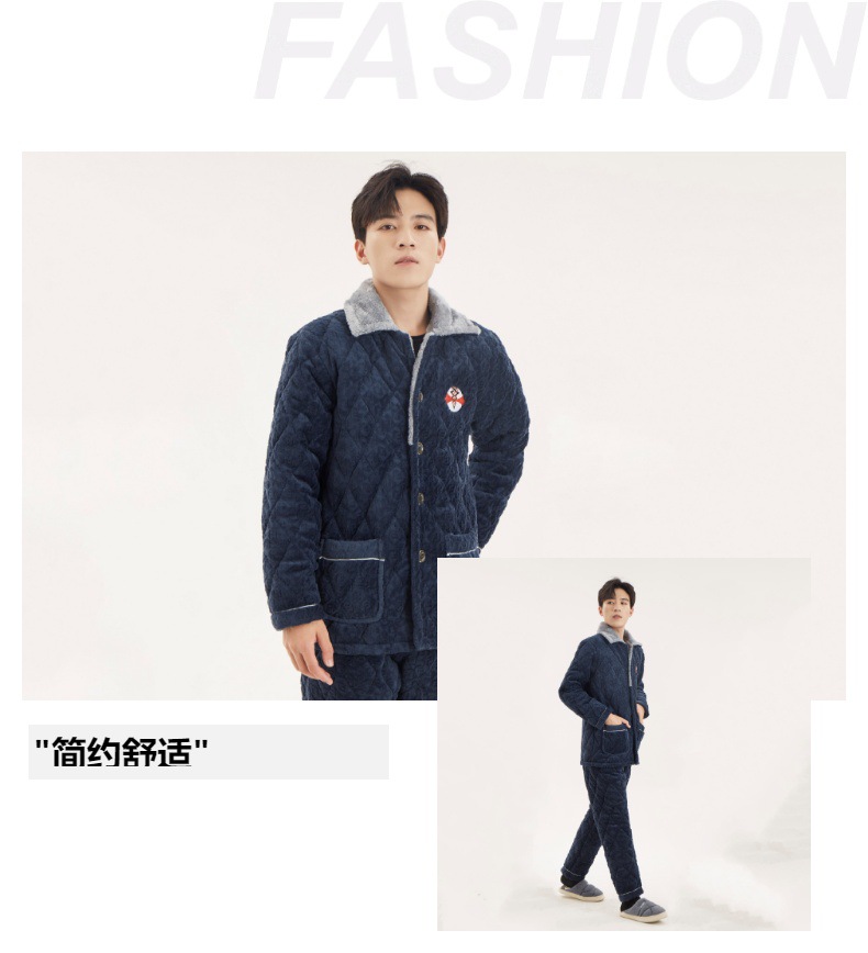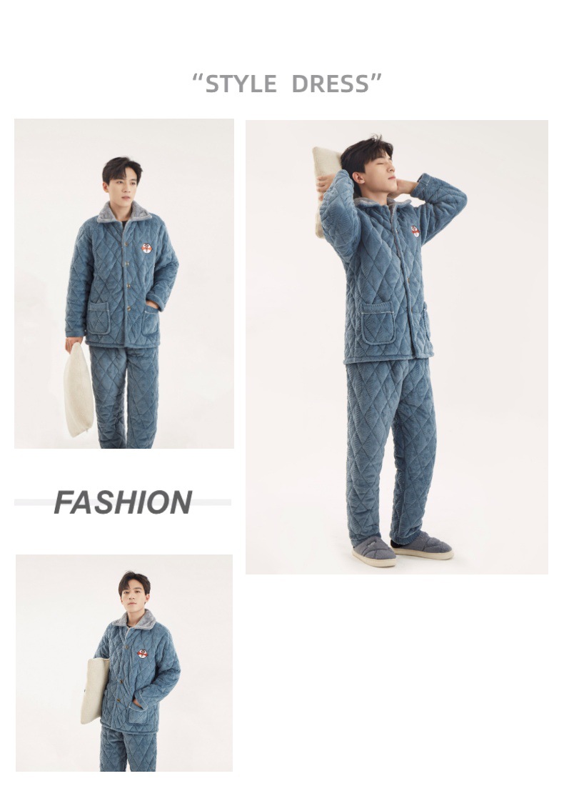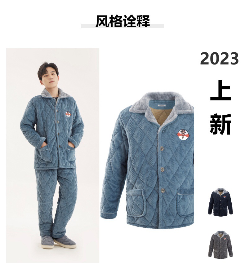 冬季男士新款加厚牛奶绒烂花三层夹棉保暖睡衣开衫两件套装可外穿