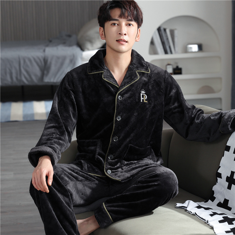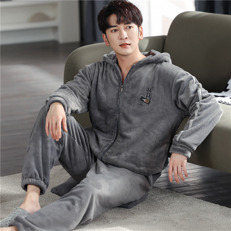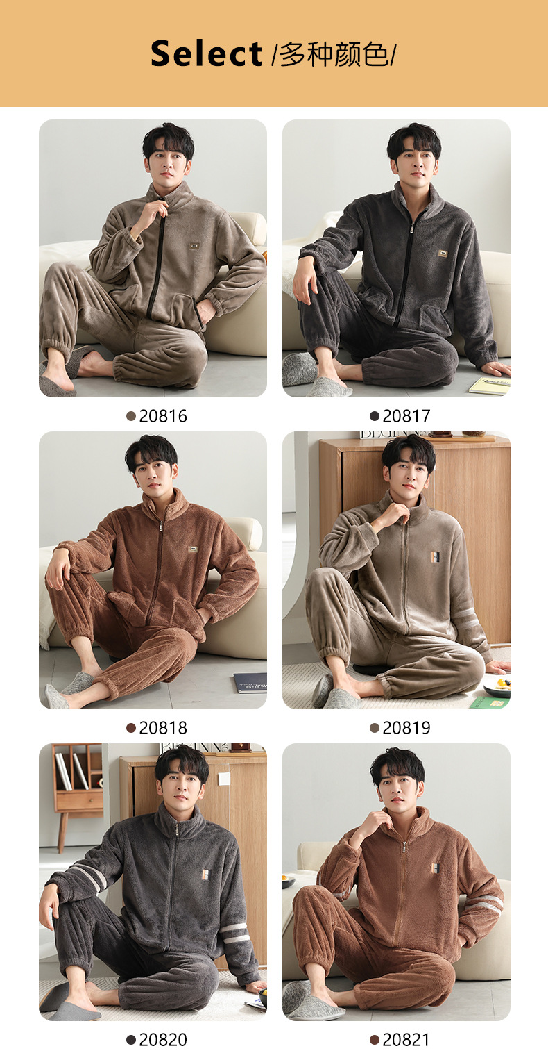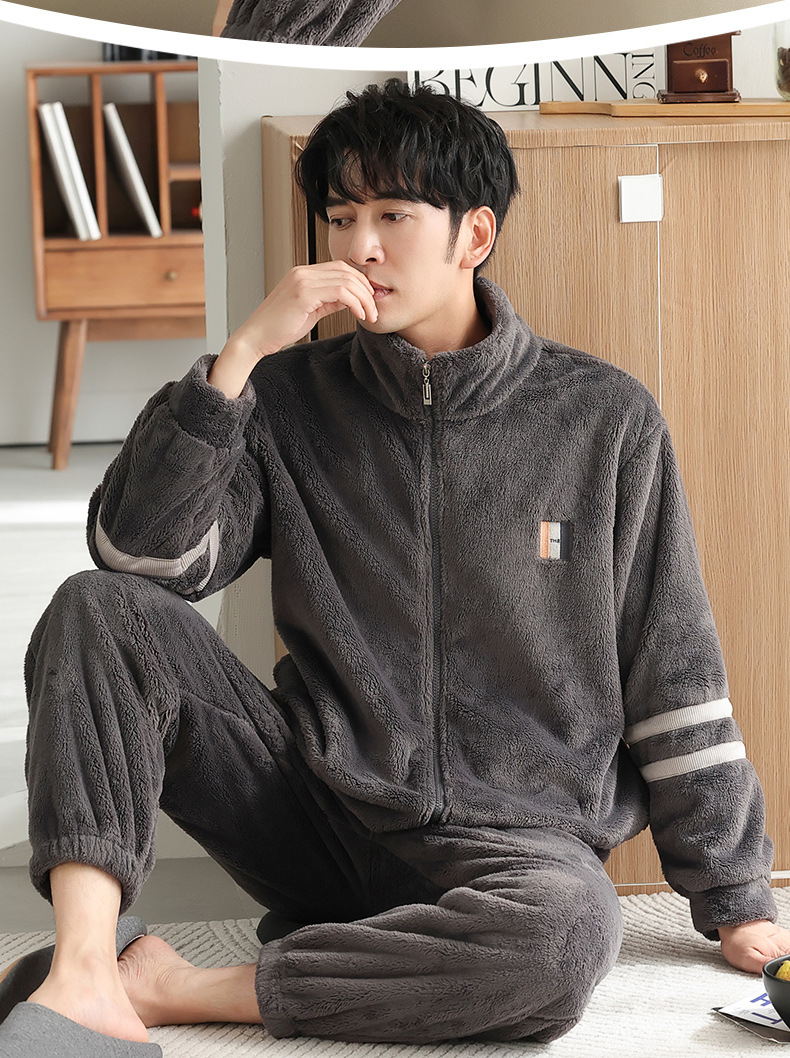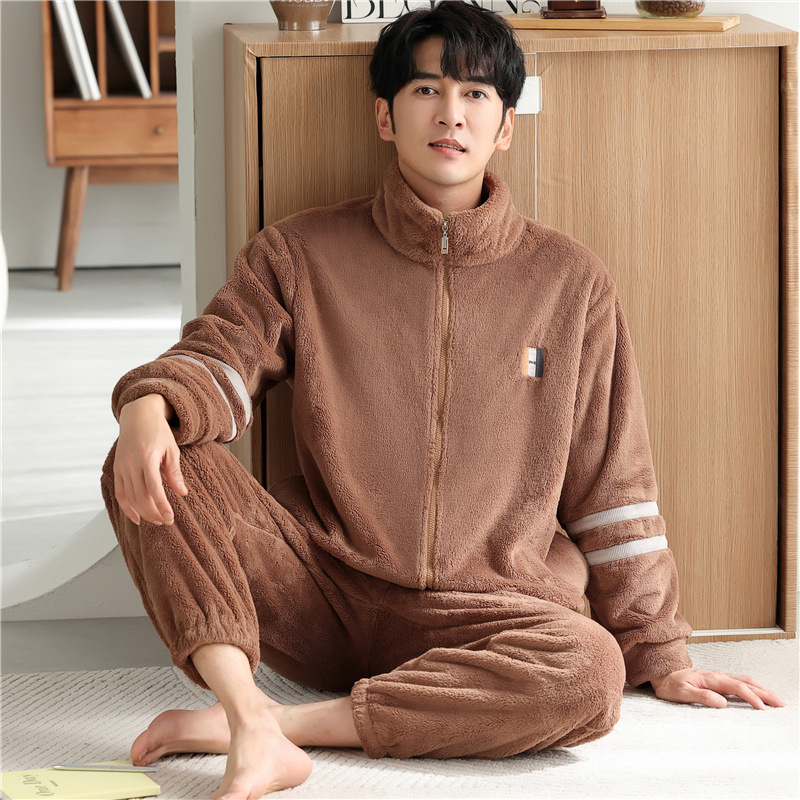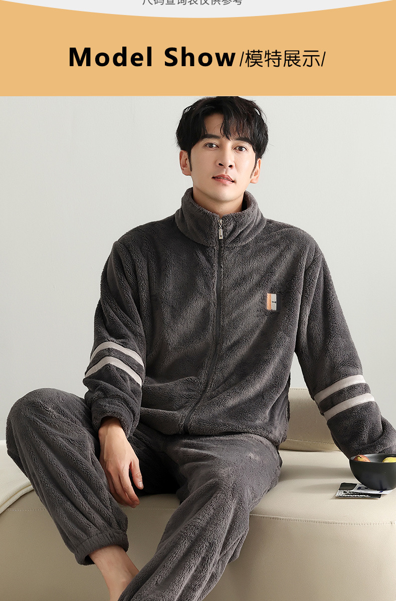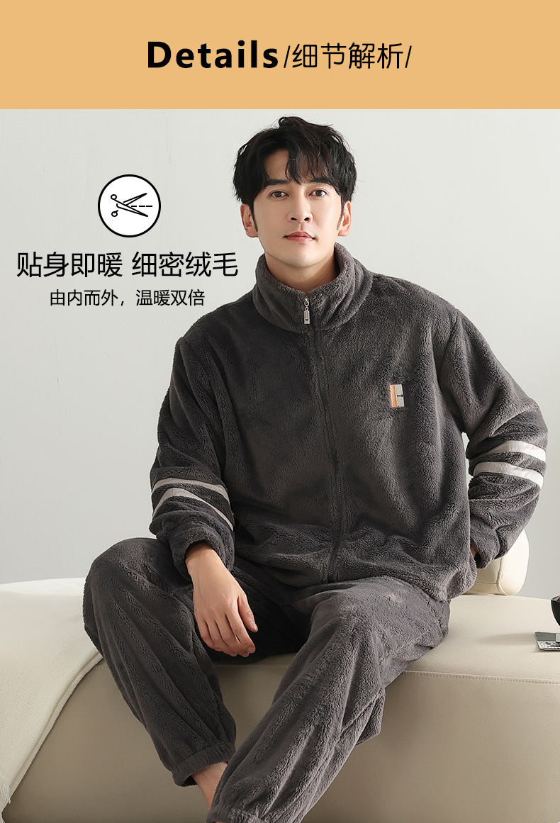男士睡衣冬季加绒加厚珊瑚绒加大码秋冬2023新款法兰绒拉链家居服