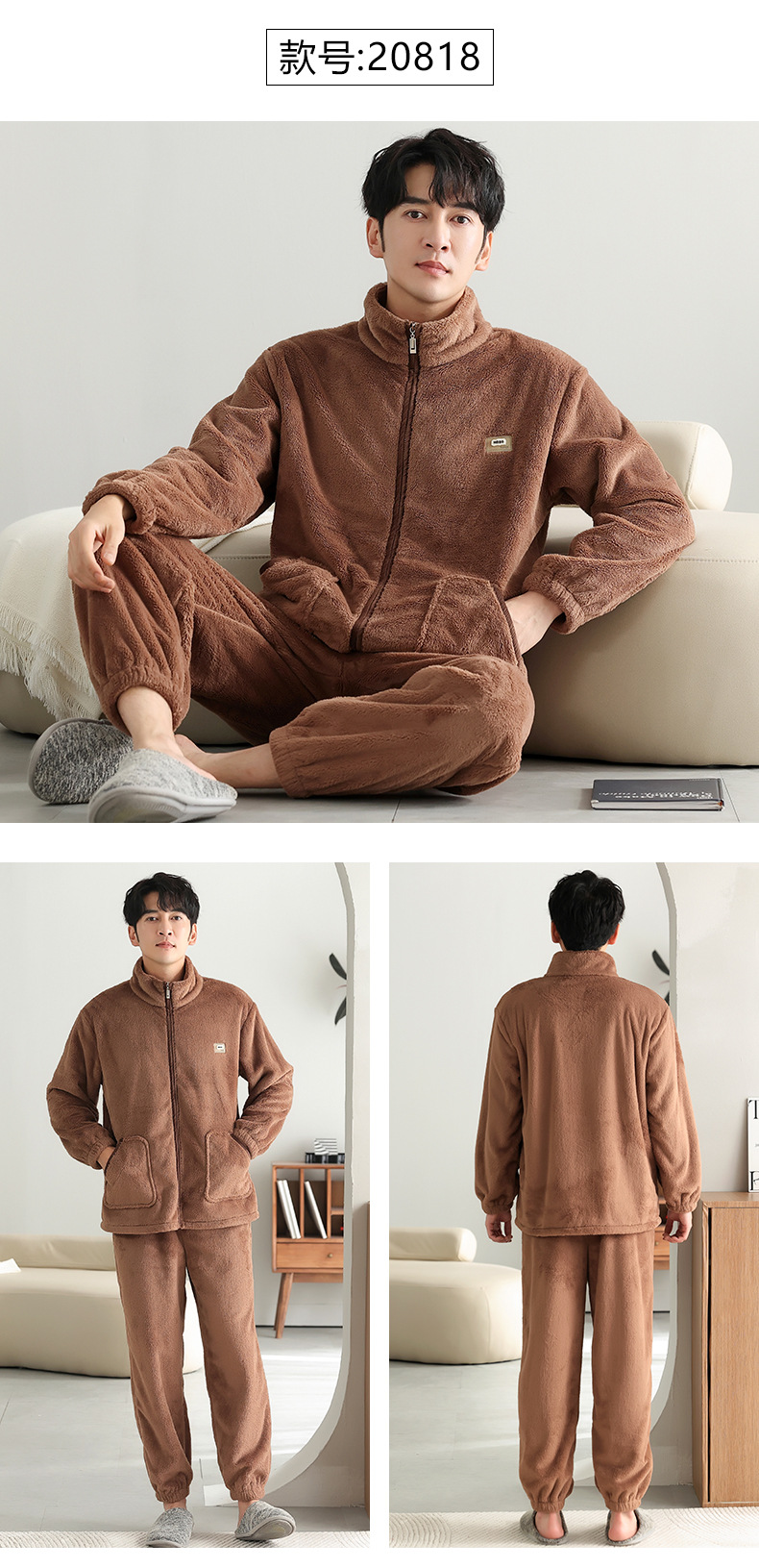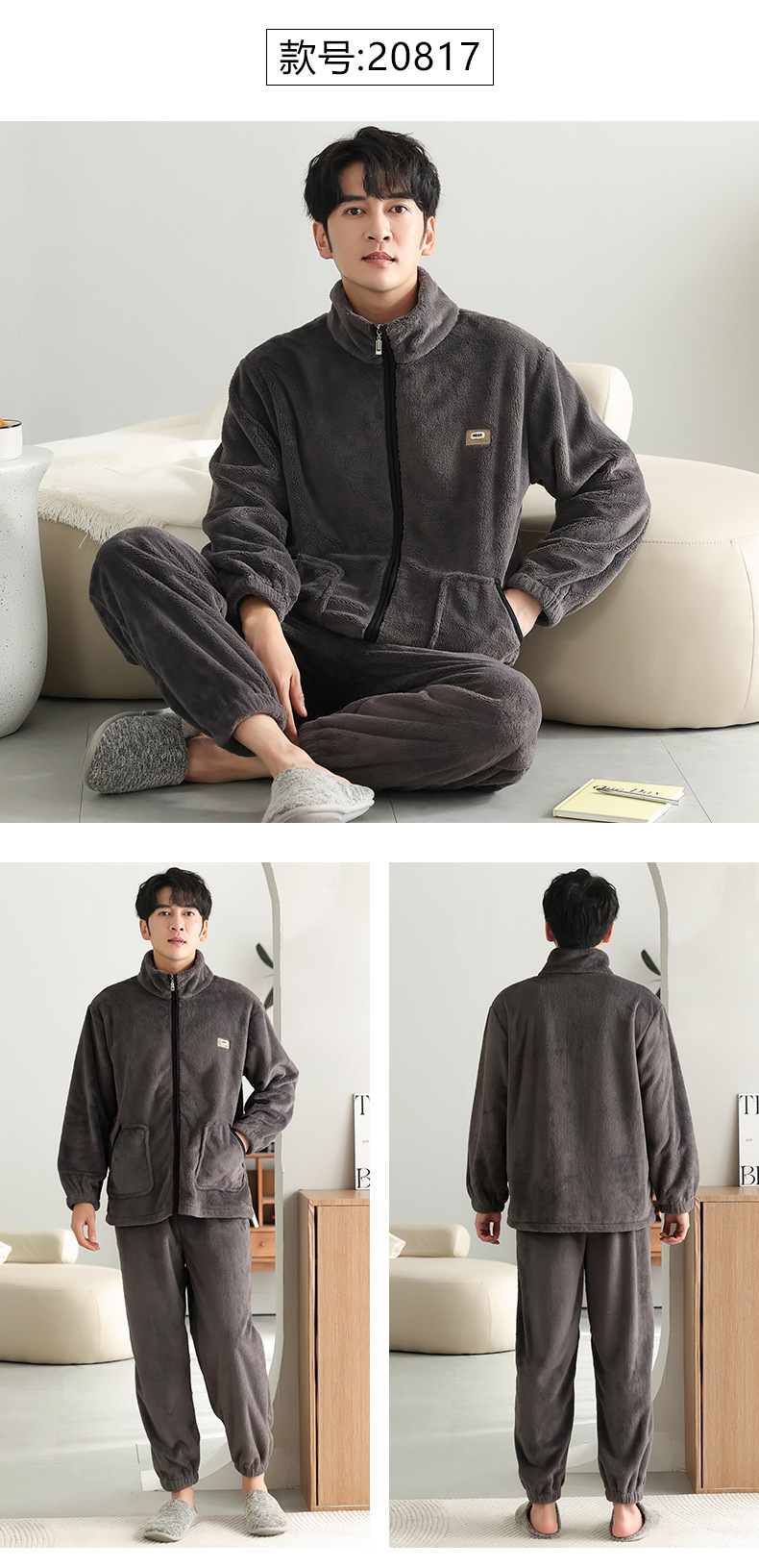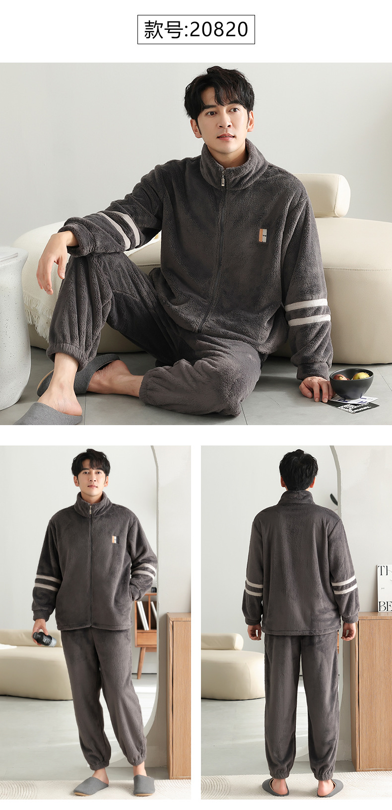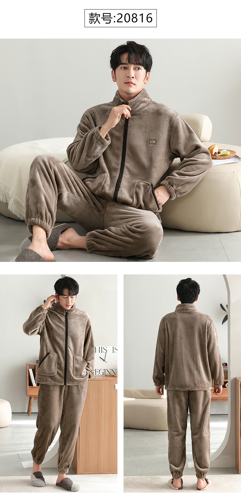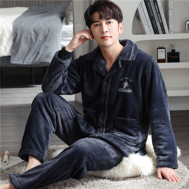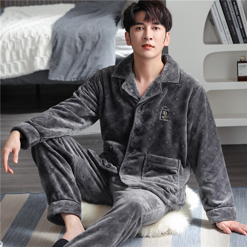 男士睡衣冬季加绒加厚珊瑚绒加大码秋冬2023新款法兰绒拉链家居服