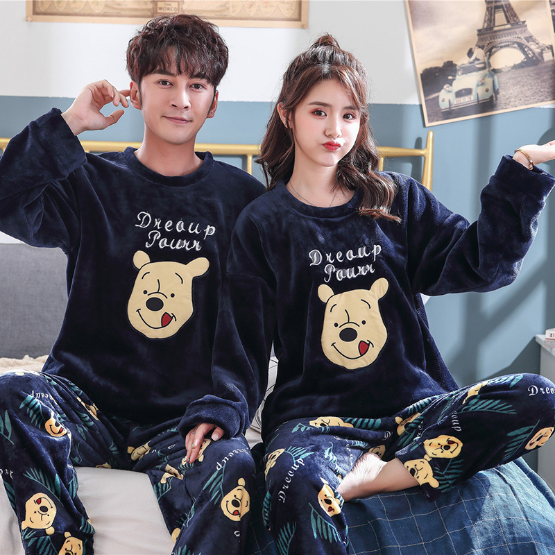 珊瑚绒情侣大码睡衣女男秋冬季加绒加厚法兰绒家居服套装网红直播