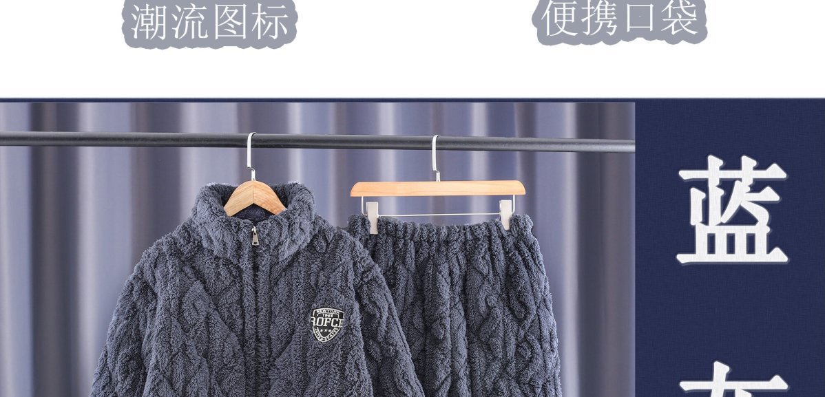 2023睡衣男士款秋冬季加厚款家居服夹棉睡衣款保三层可外穿新款睡