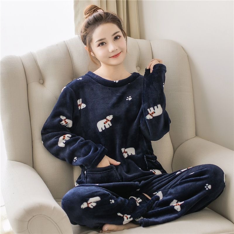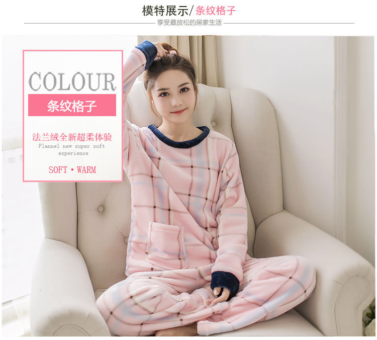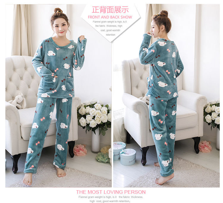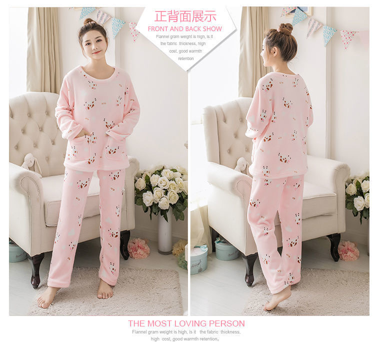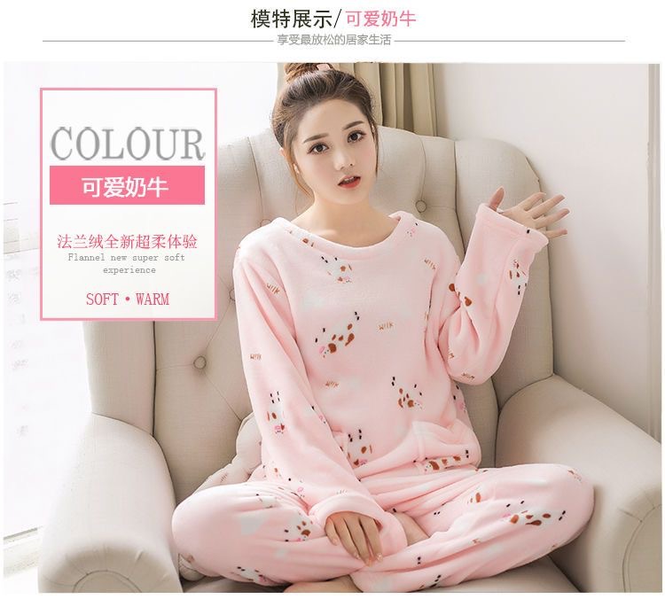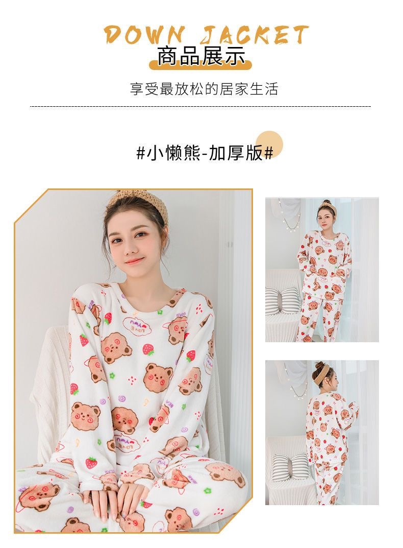 珊瑚绒睡衣女士秋冬季新款卡通印花甜美少女妈妈可外穿家居服套装