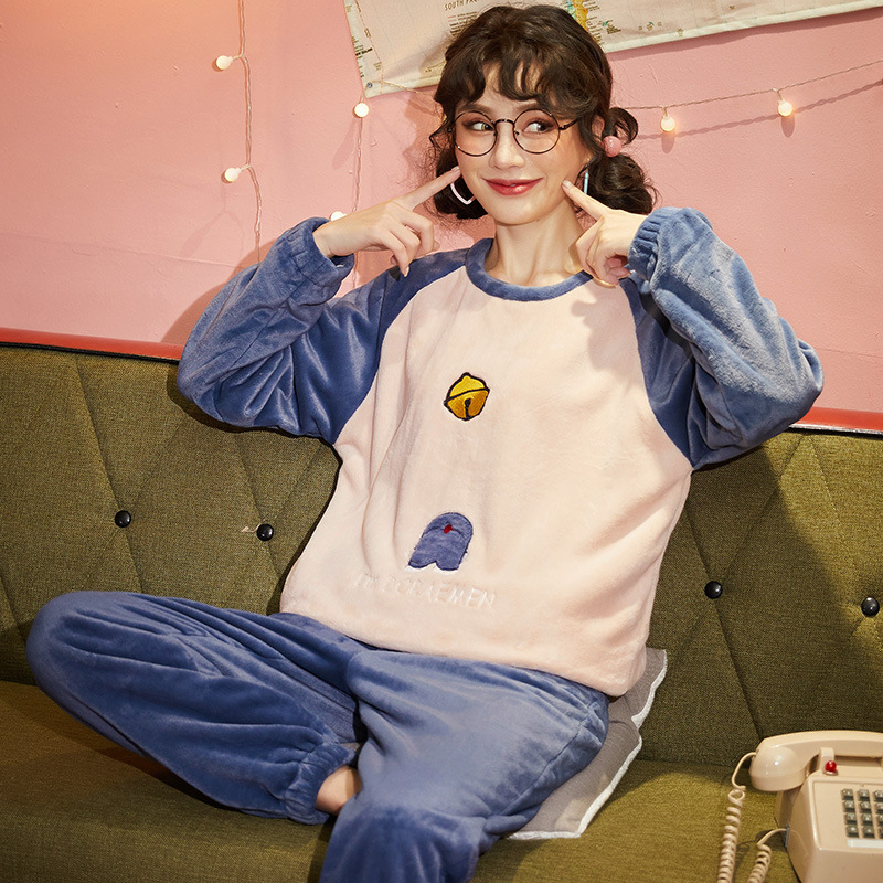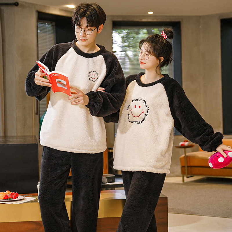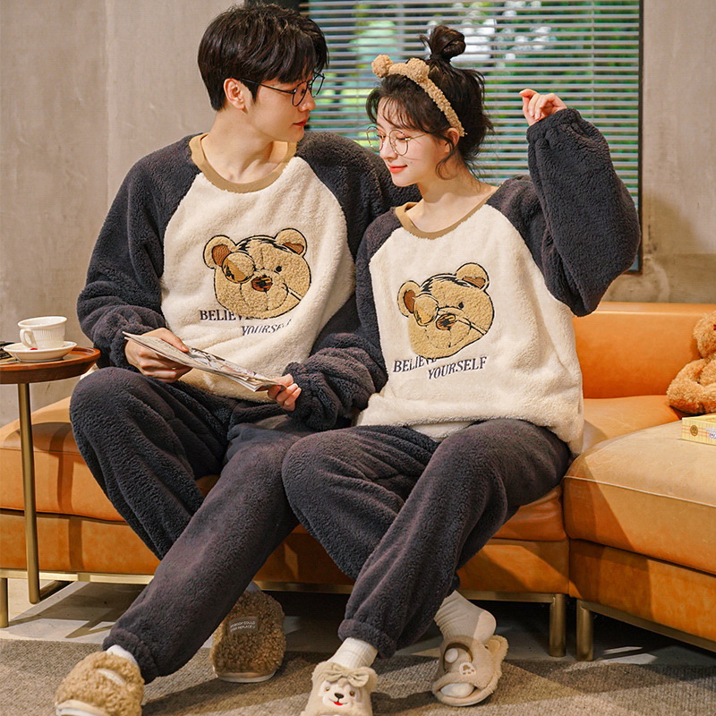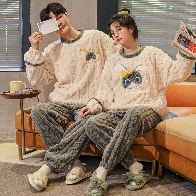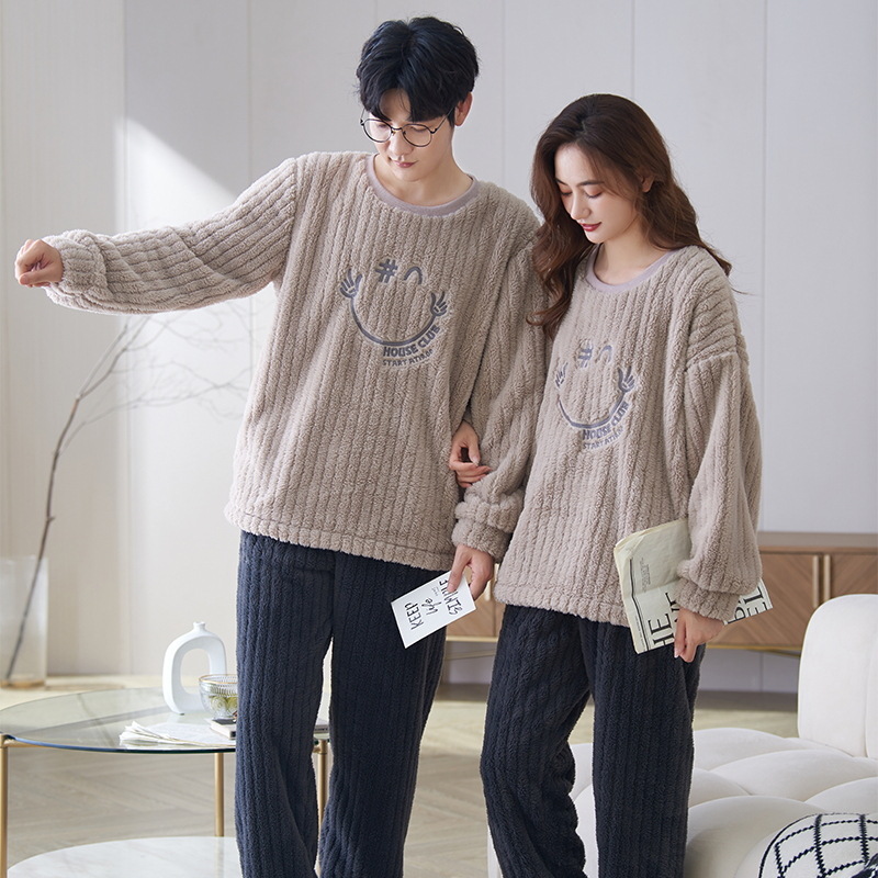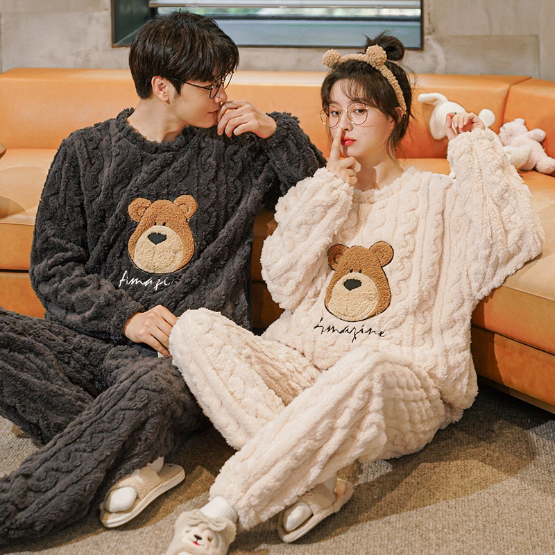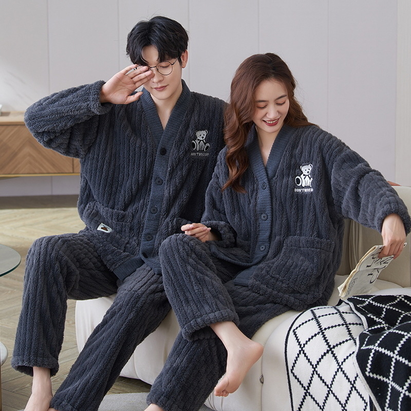 秋冬季新款情侣睡衣女珊瑚绒提花绒加绒加厚韩版可外穿男士家居服