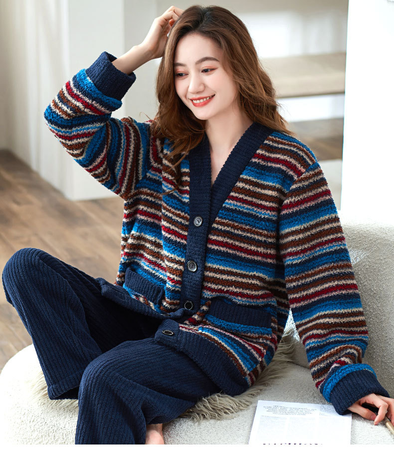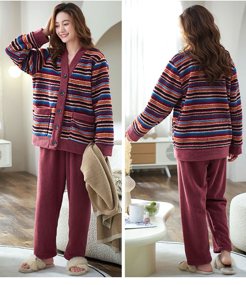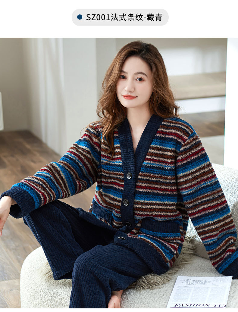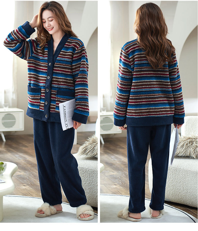 秋冬款睡衣女加厚加绒法兰绒长袖大码宽松珊瑚绒甜美家居服两件套