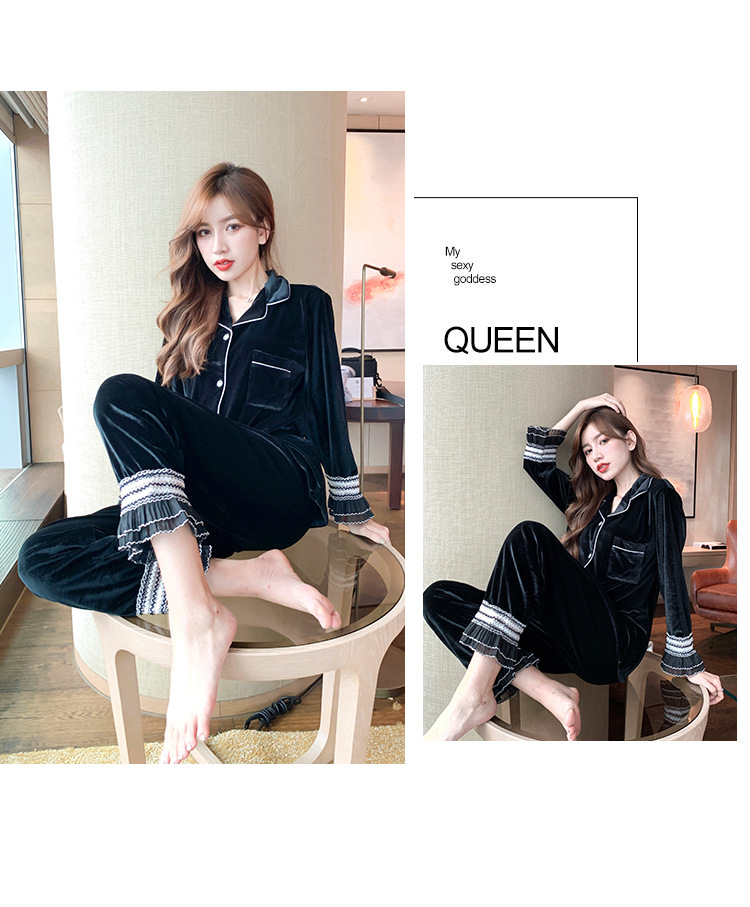 睡衣女冬季金丝绒韩版学生保暖加厚女士秋冬天两件套装大码家居服