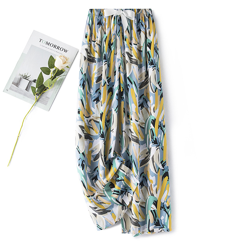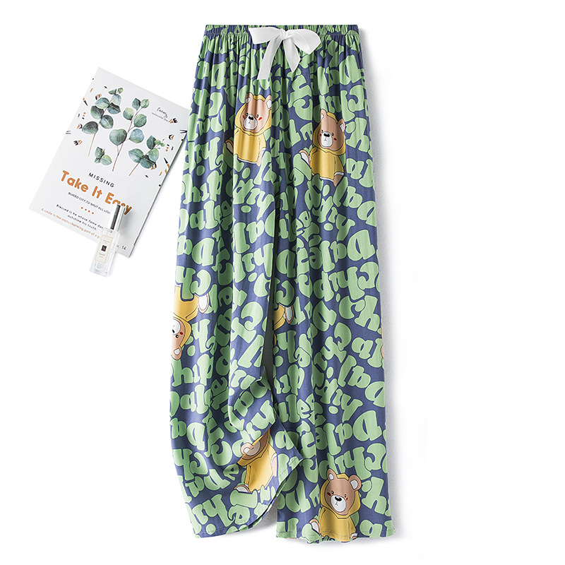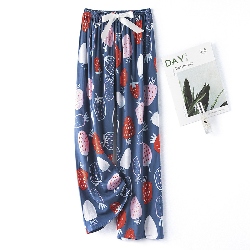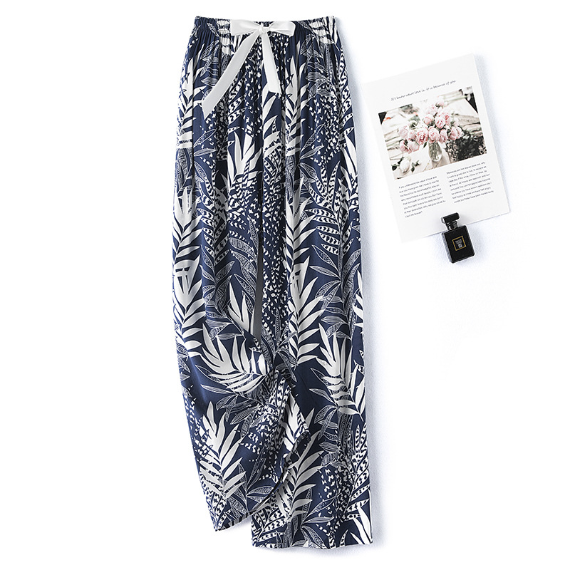 棉绸睡裤女夏人造棉薄款阔腿裤春秋外穿九分长裤子空调防蚊家居裤