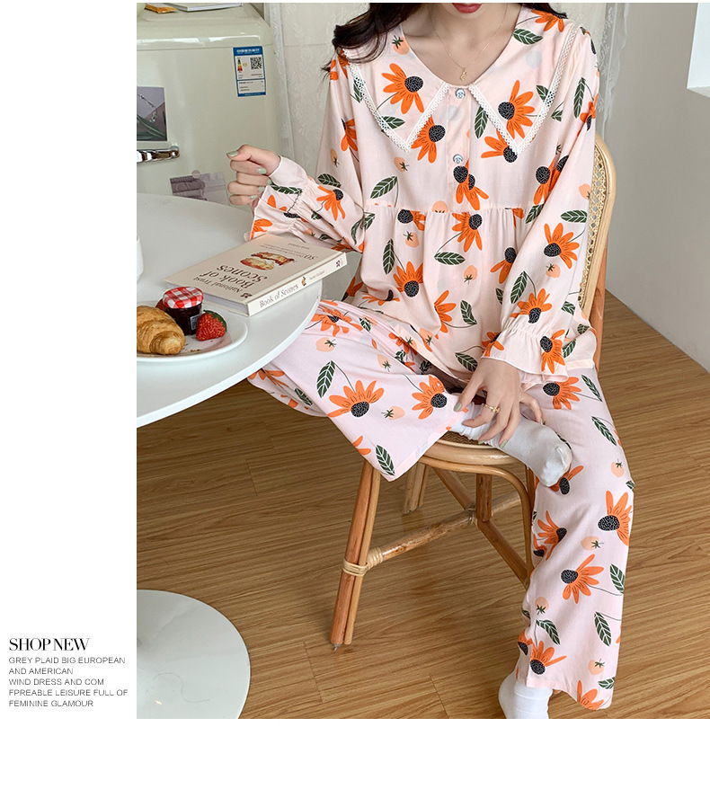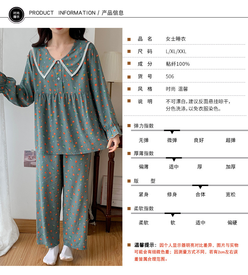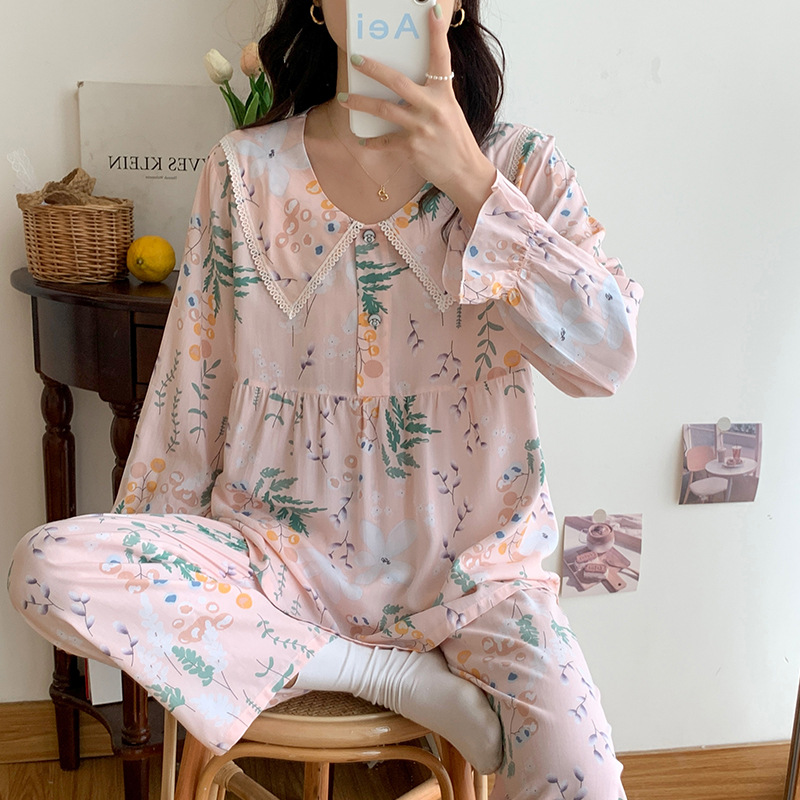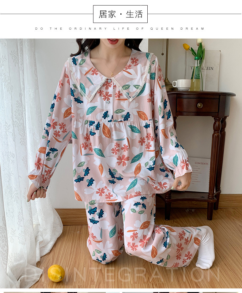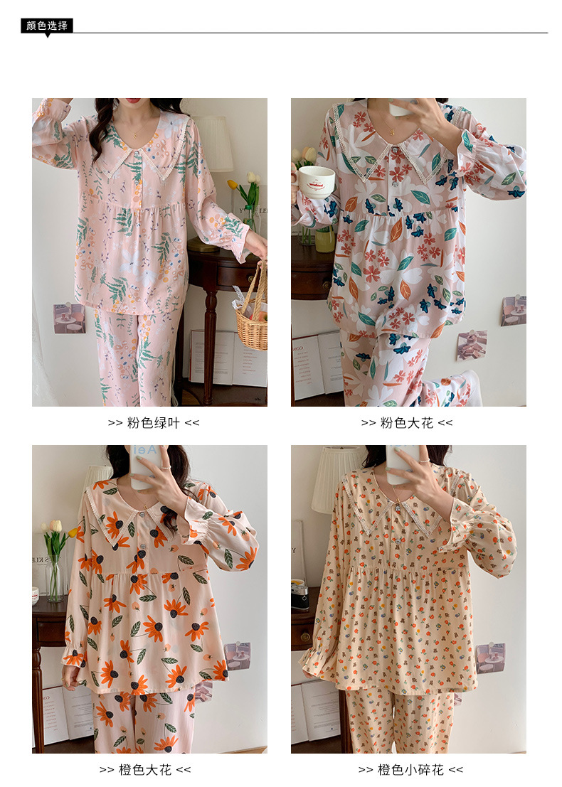 2023夏新款棉绸女士睡衣家居服套装薄款翻领舒适透气长袖长裤