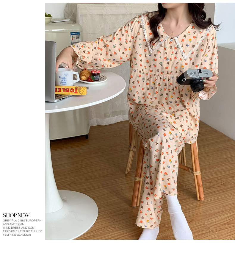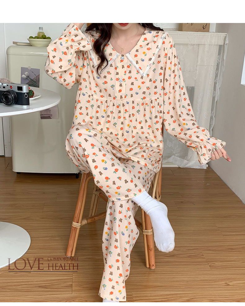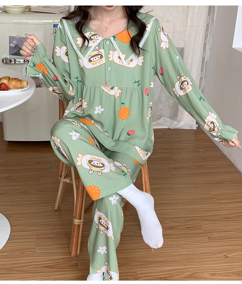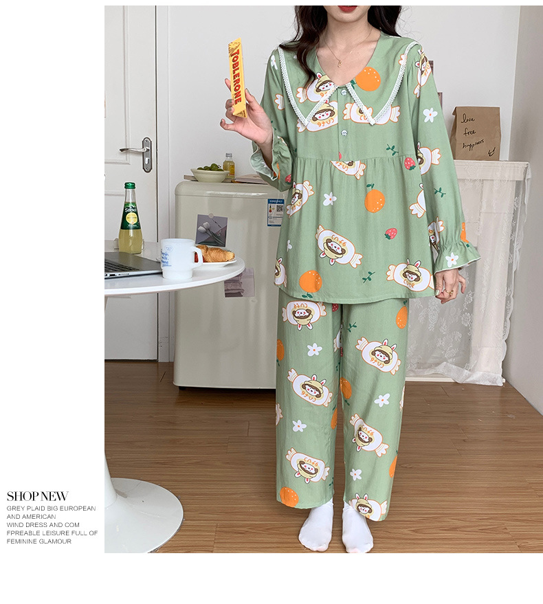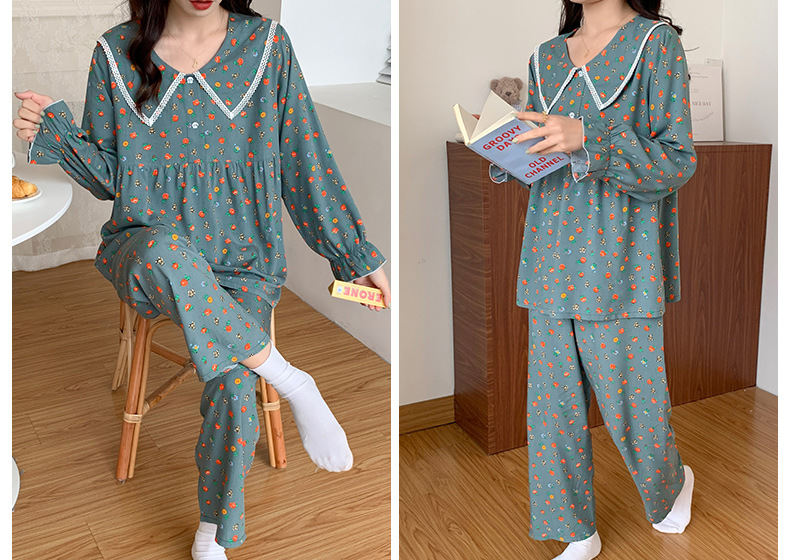 2023夏新款棉绸女士睡衣家居服套装薄款翻领舒适透气长袖长裤