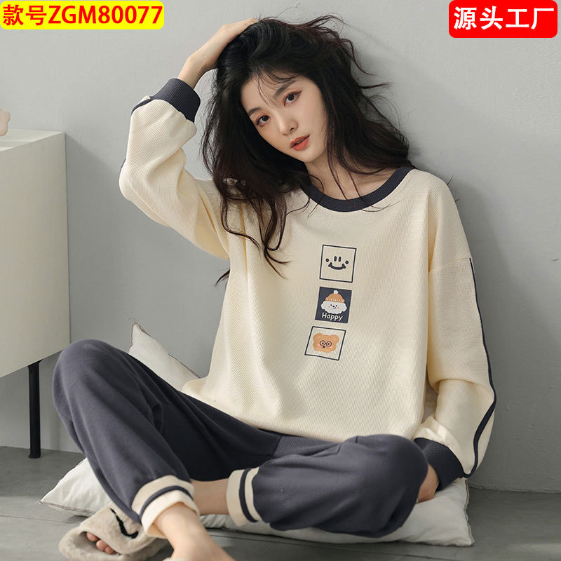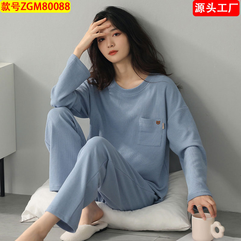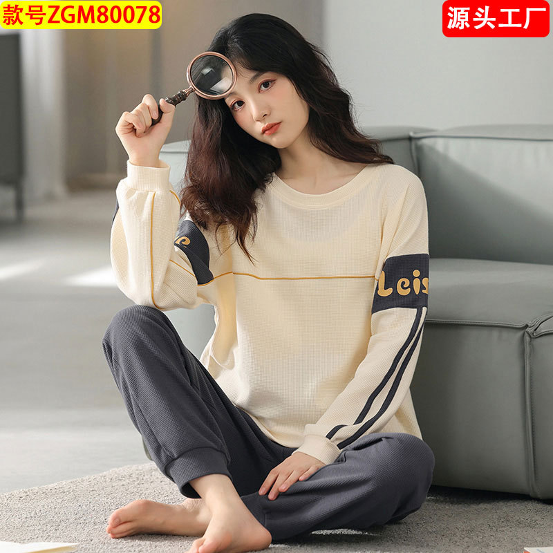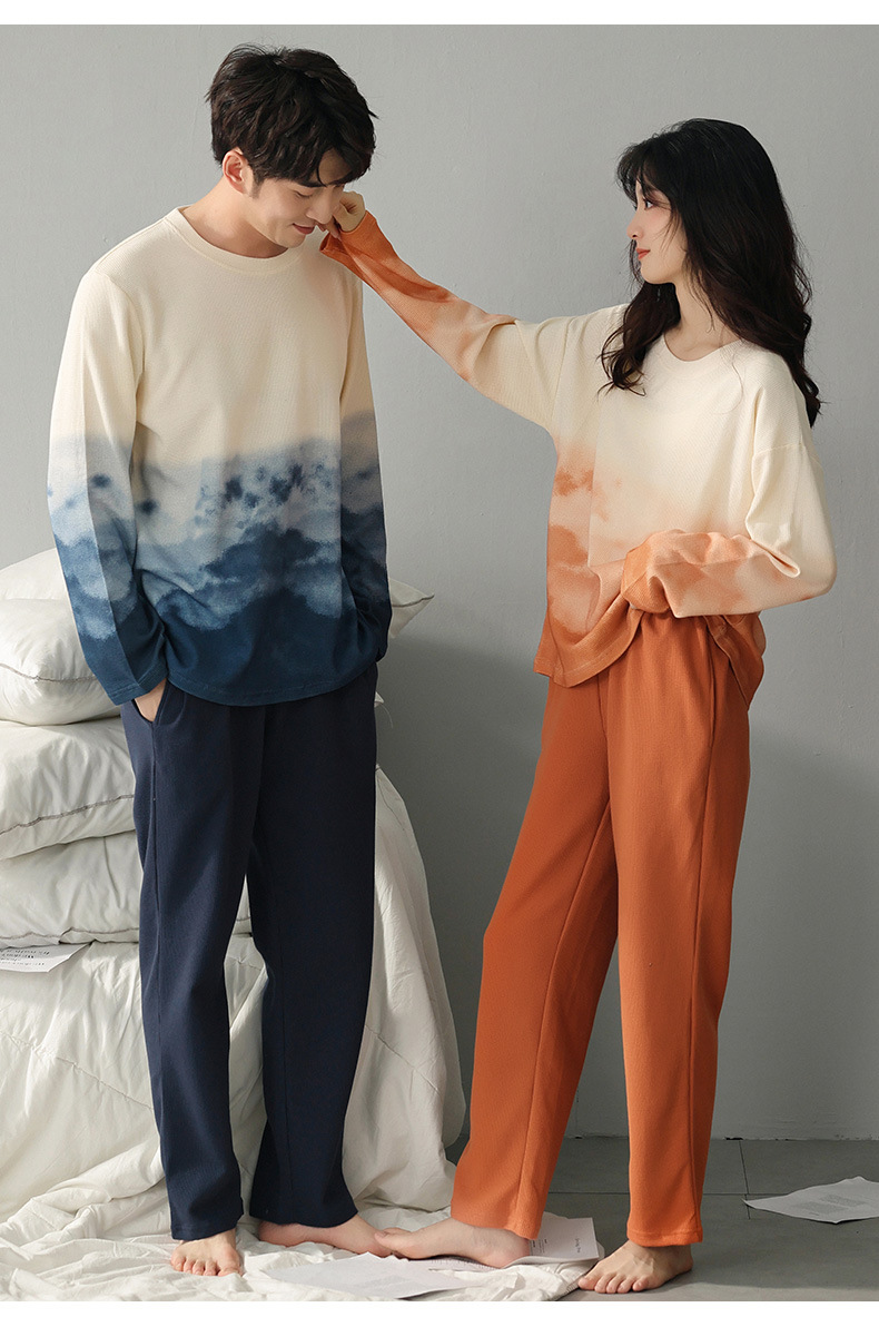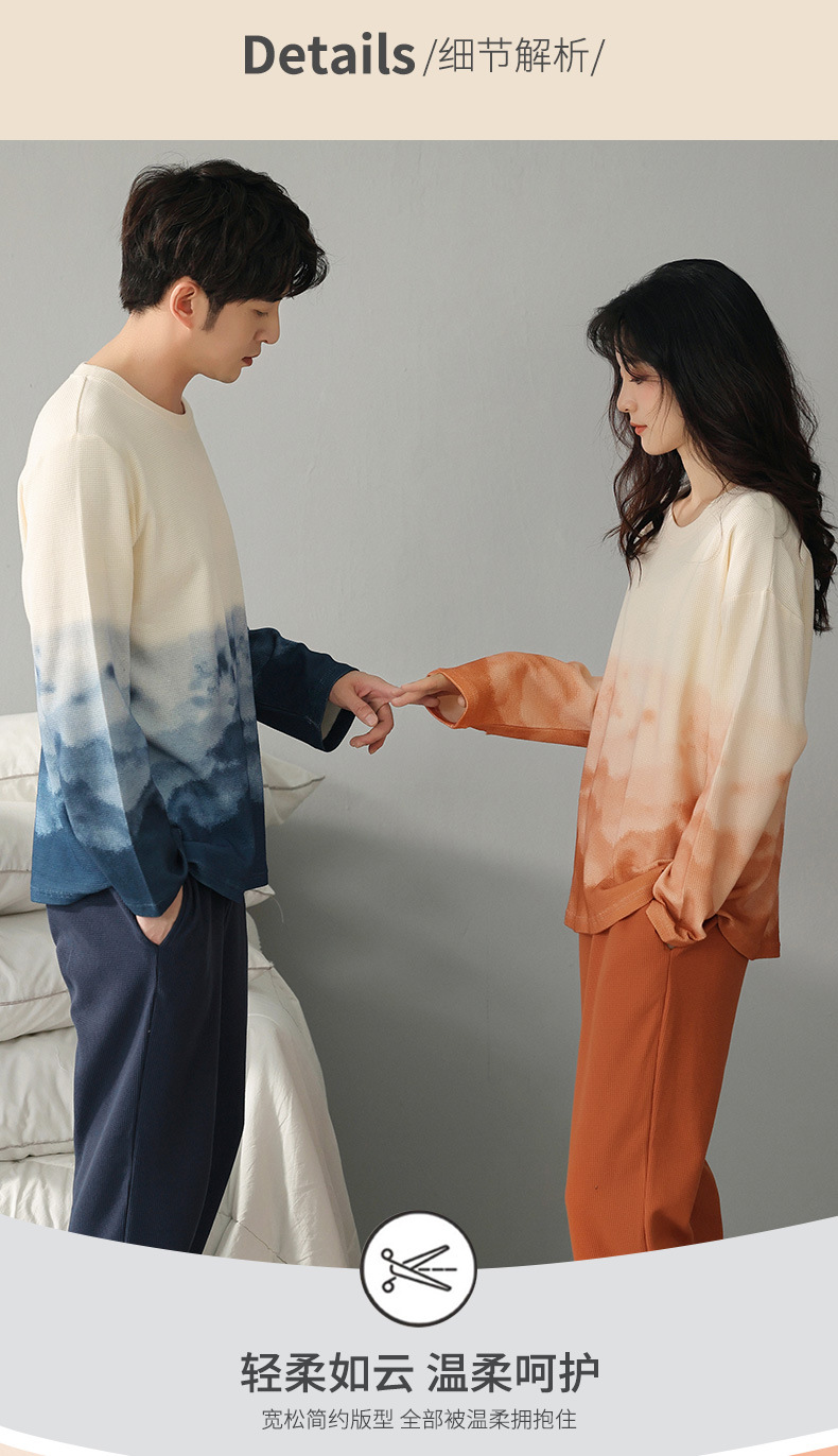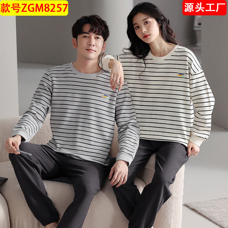 秋冬季高级感纯棉情侣款睡衣加厚保暖全棉外穿男女家居服套装批发
