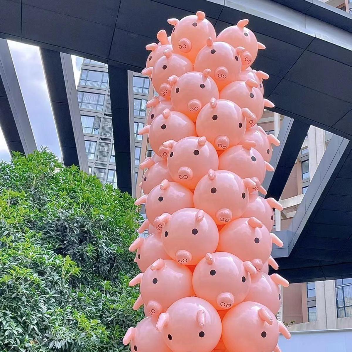 抖音同款猪猪气球网红粉红色猪猪塔批猪头棒充气玩具发猪猪气球锤