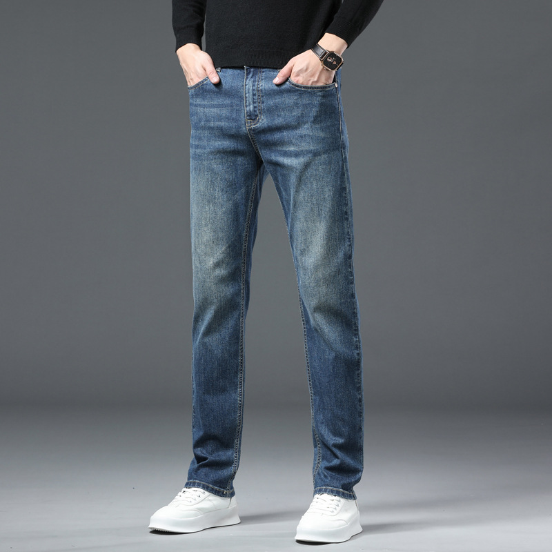 2023秋冬新款牛仔裤男士直筒修身弹力加绒加厚保暖休闲裤男装长裤