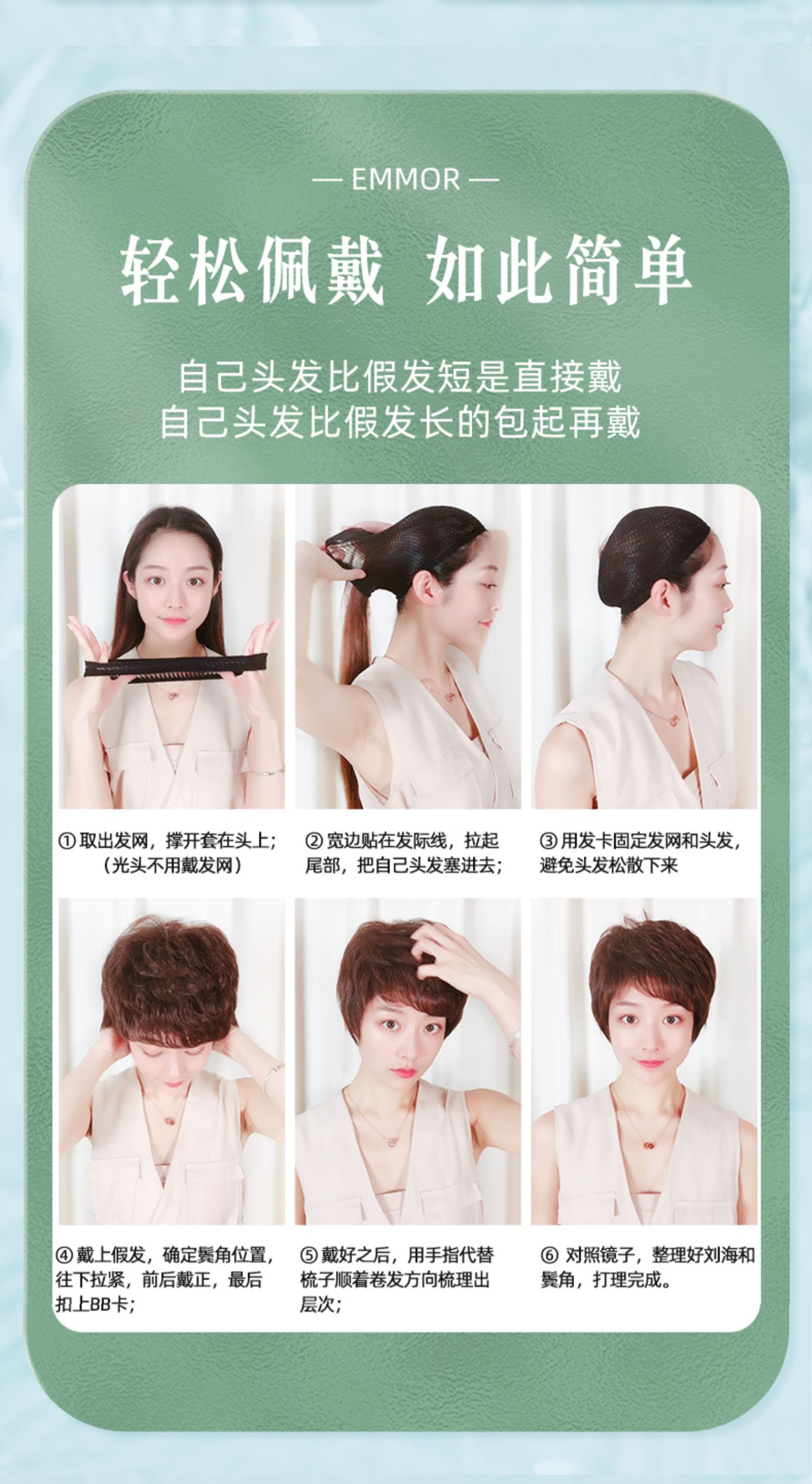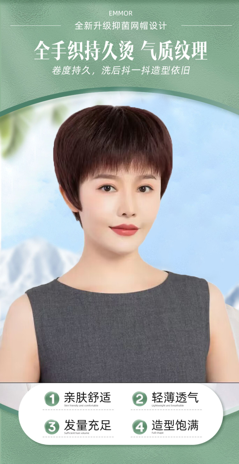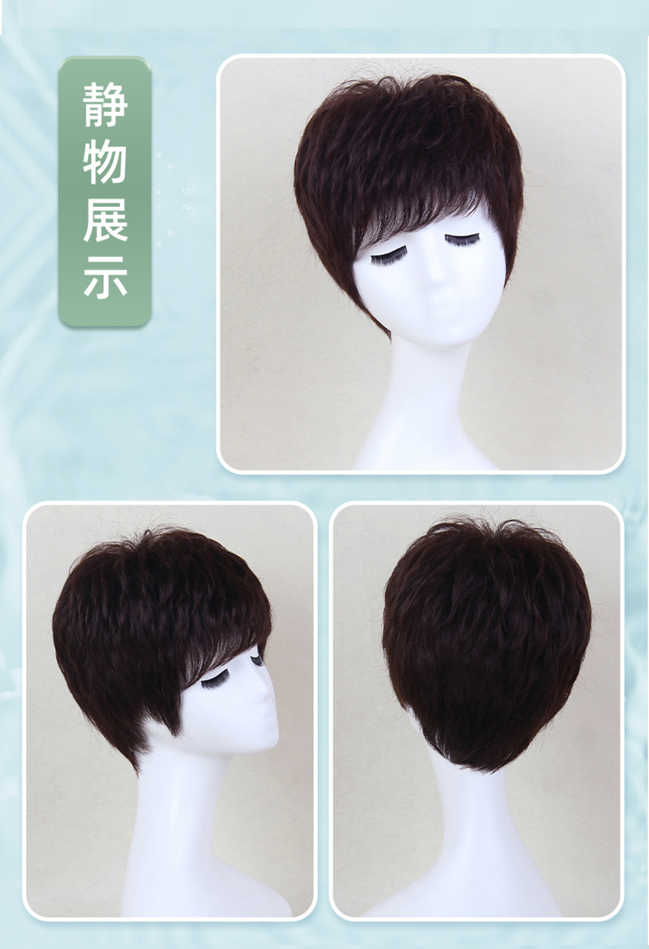 全手织假发女短发全头套真人发丝短直发中老年女士自然妈妈假发套