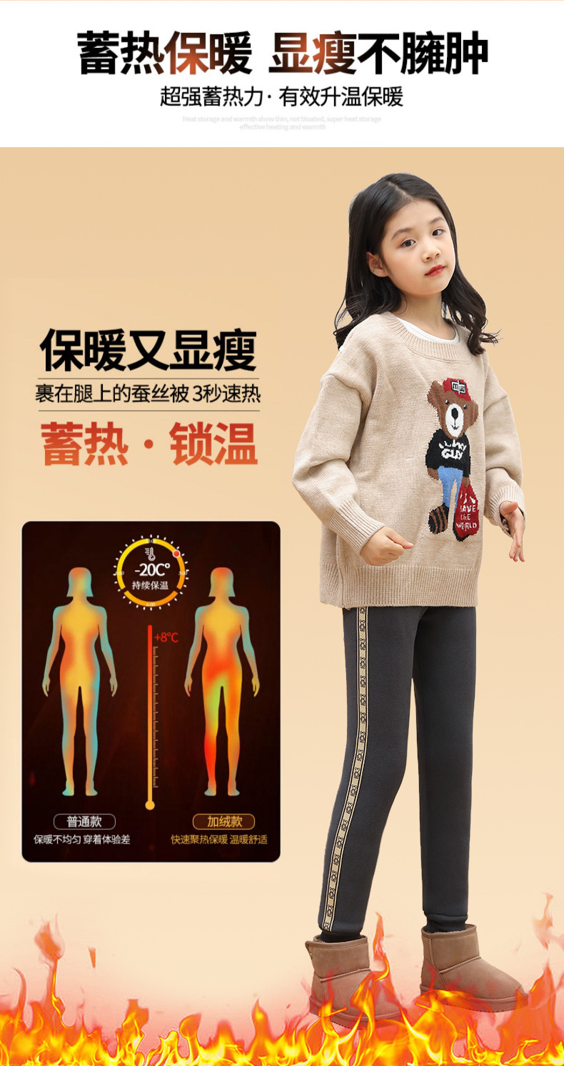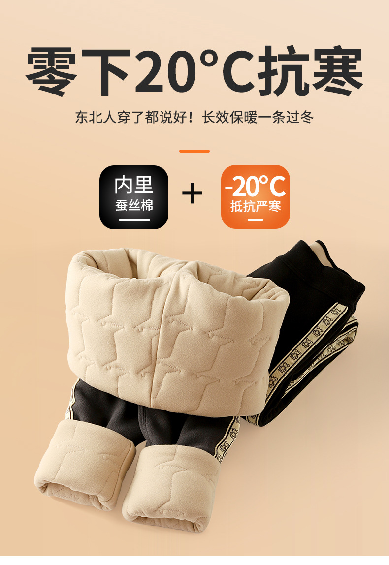 儿童外穿棉裤冬季中大童加绒加厚蚕丝保暖裤男童女童保暖运动长裤