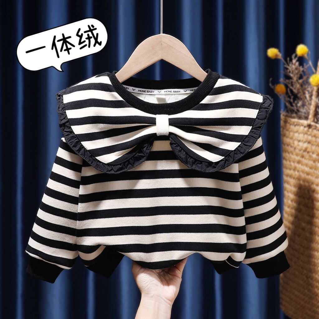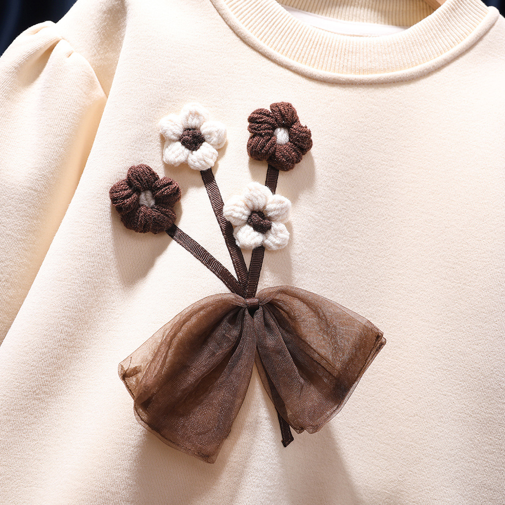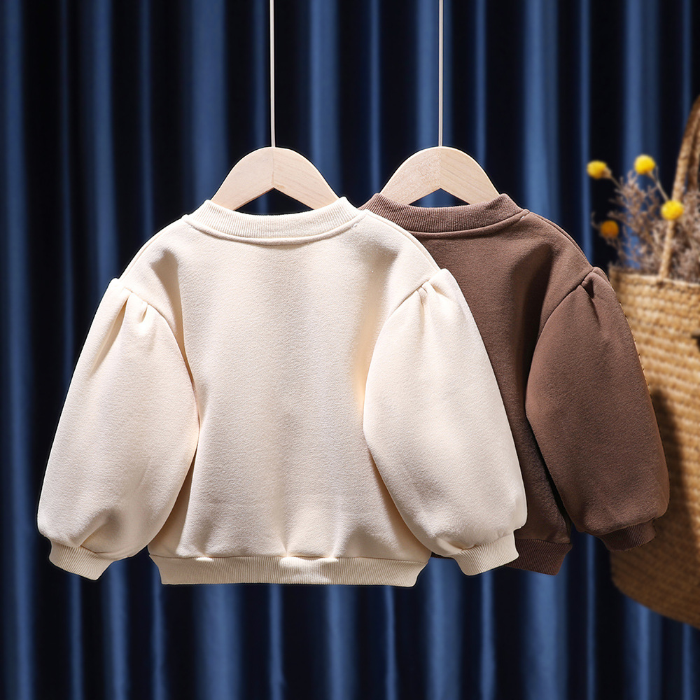 2023深秋冬 80-130码一体绒花朵泡泡袖卫衣 女童装中小童新款冬装