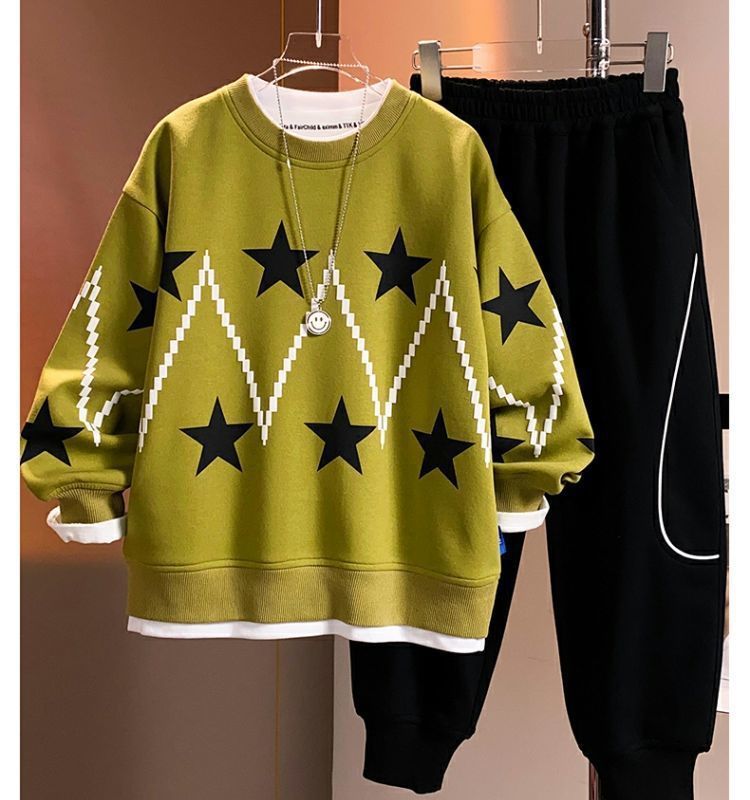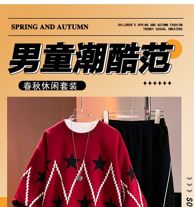 男童套装2023新款秋冬季儿童加绒两件套卫衣卫裤中大童童装冬装潮