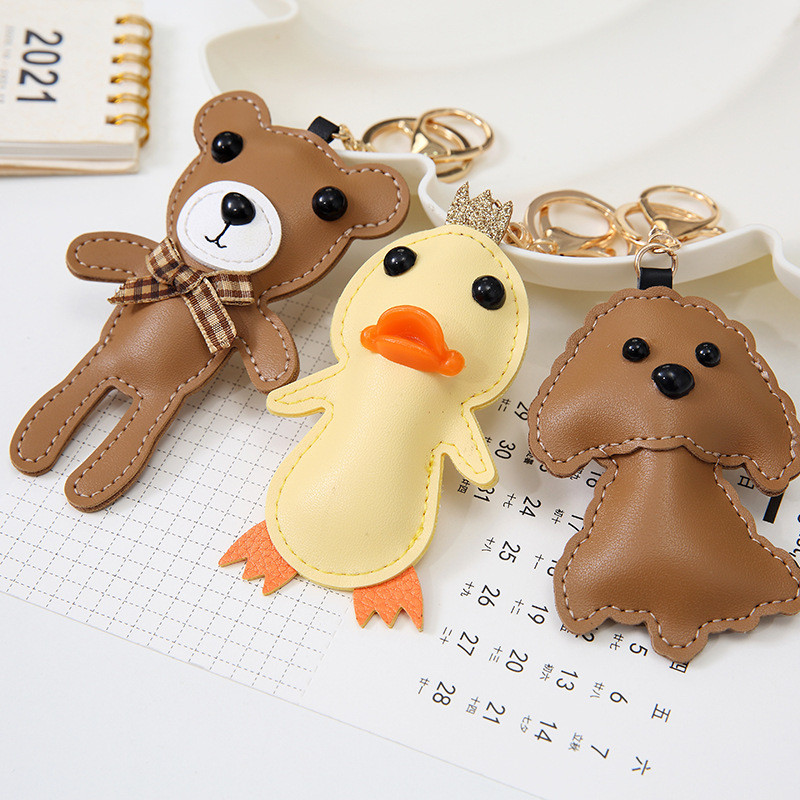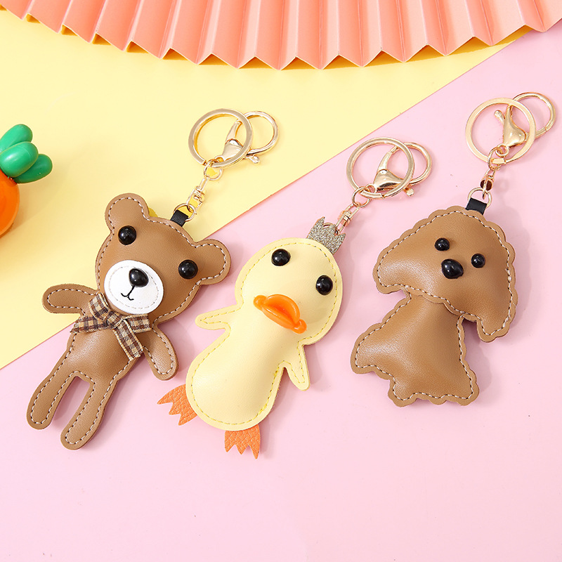 创意pu皮质小熊钥匙扣挂件可爱服装配饰包包书包挂件学生玩偶挂饰