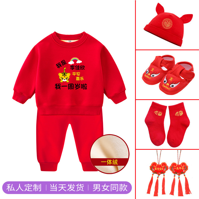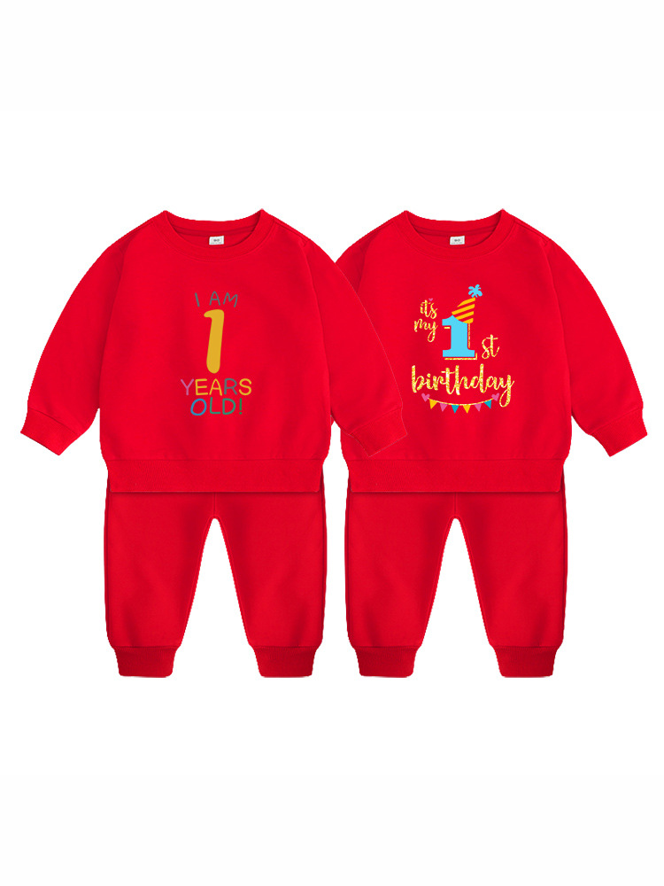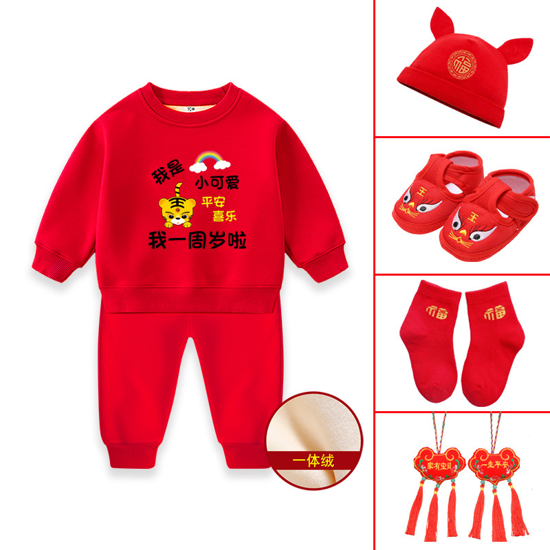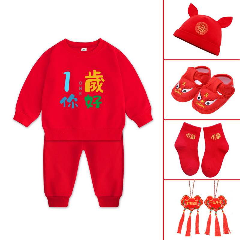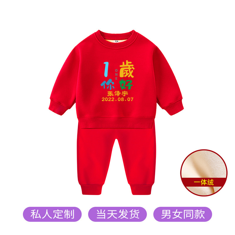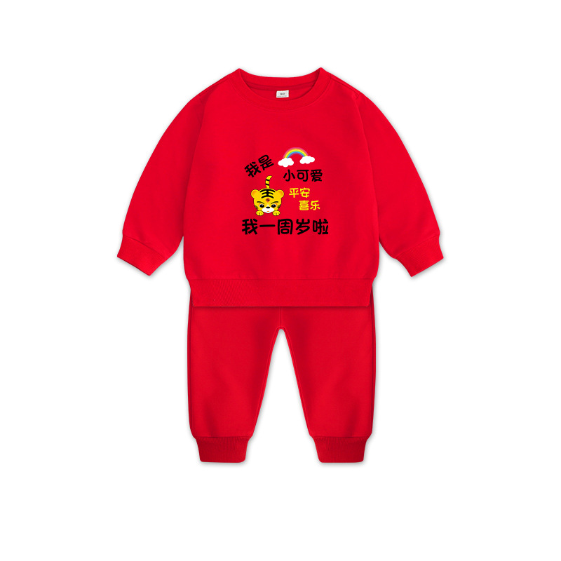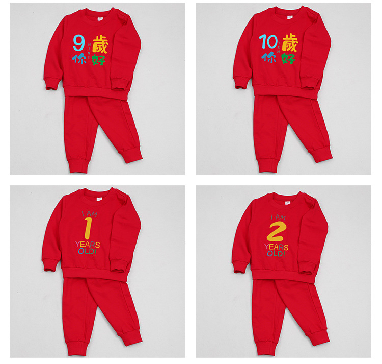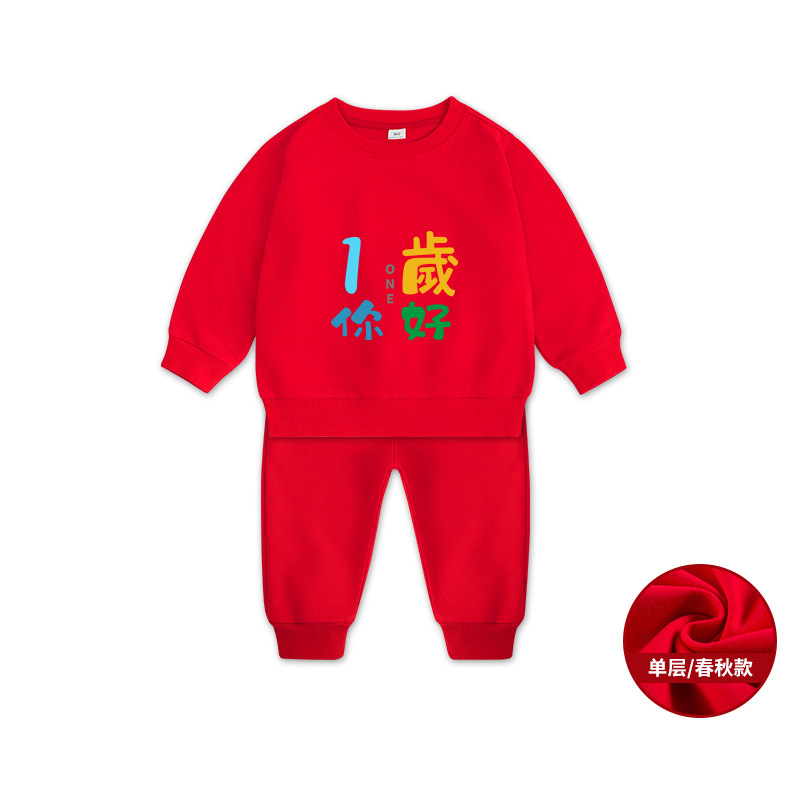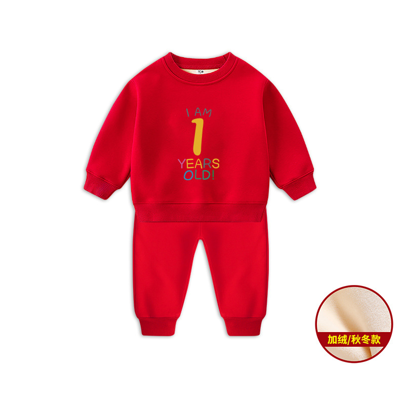 1男童秋装套装男孩衣服红色一周岁服装女孩生日宴抓周礼服男宝宝2