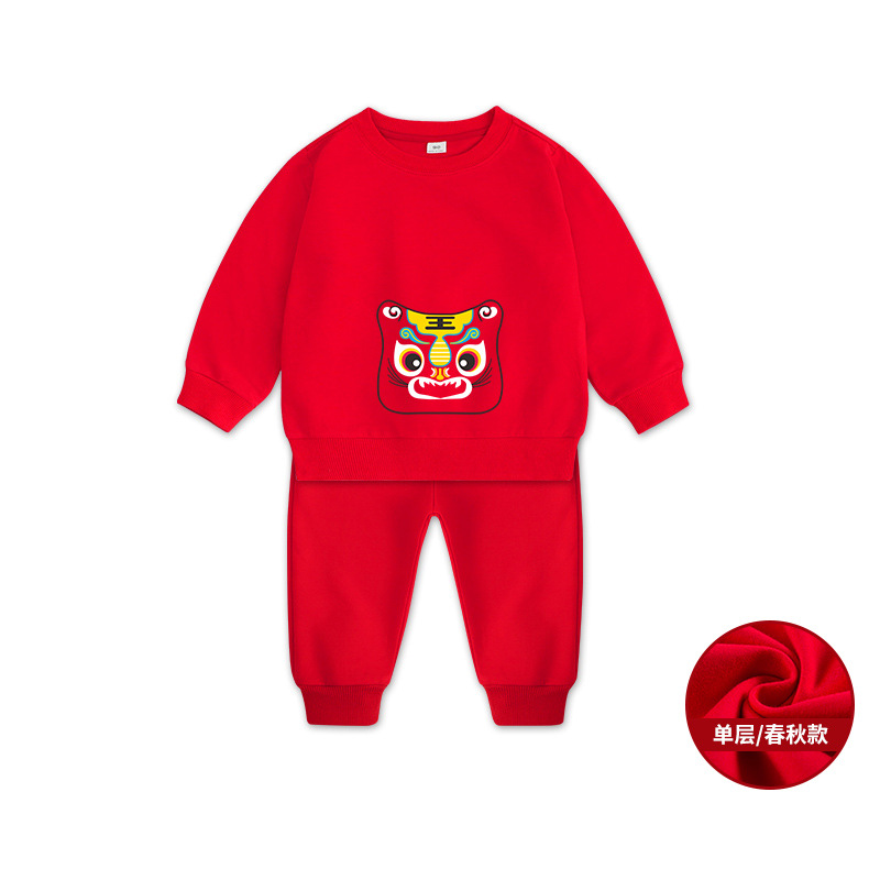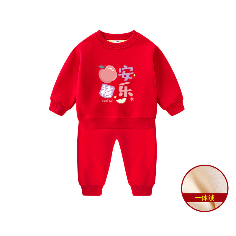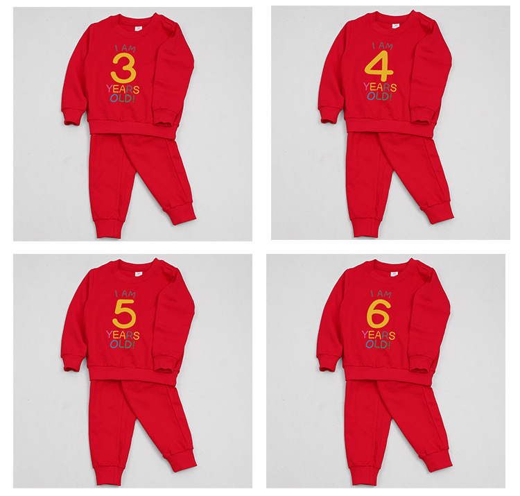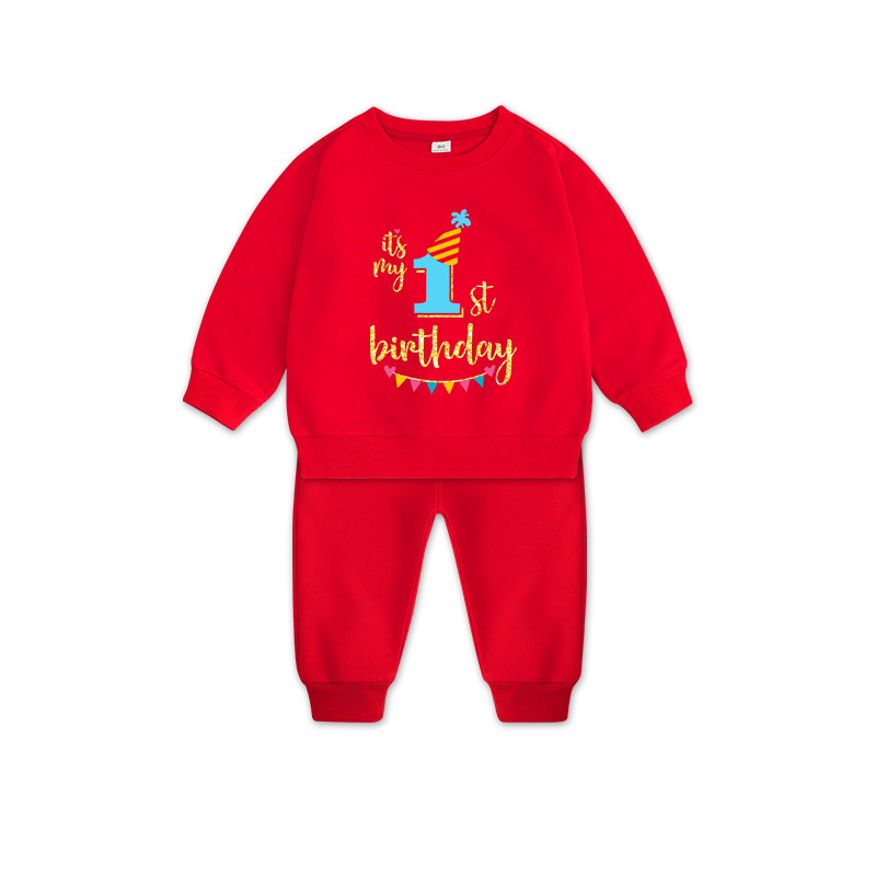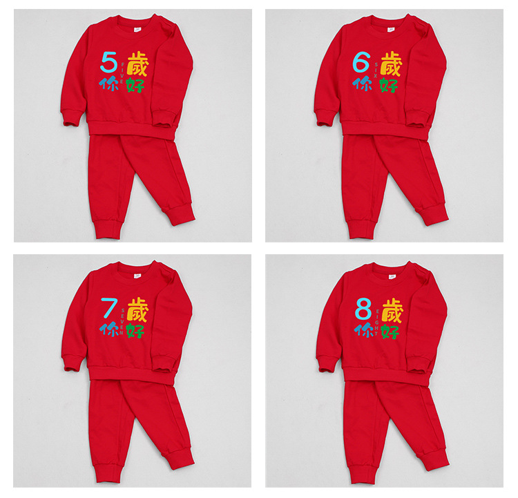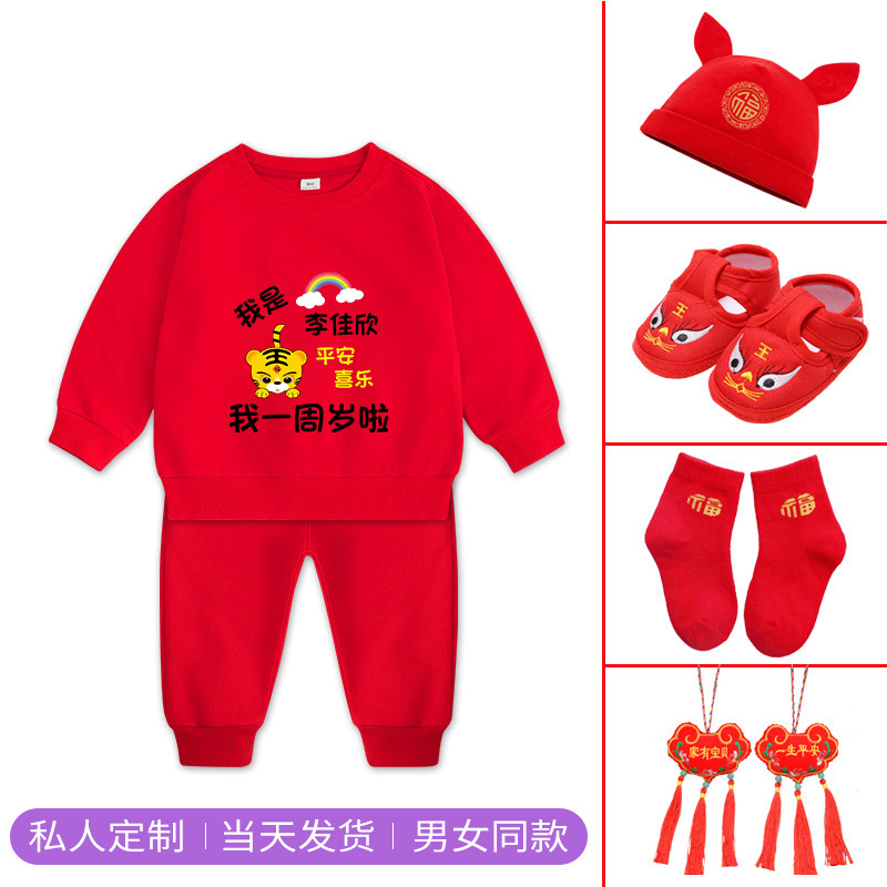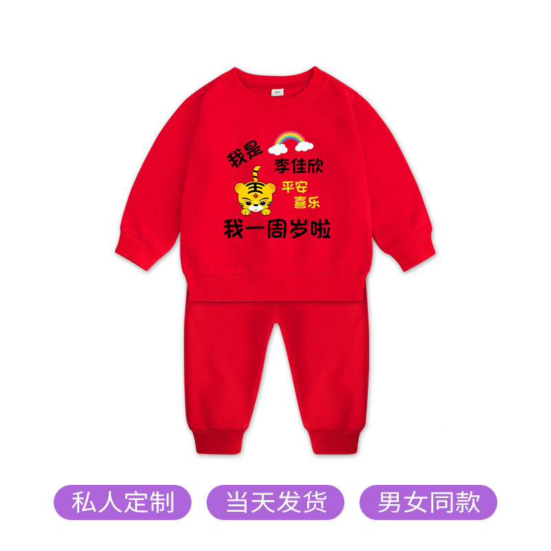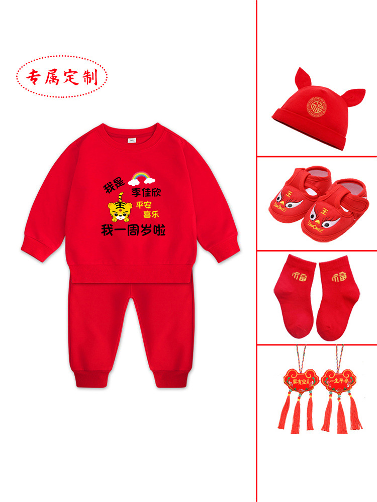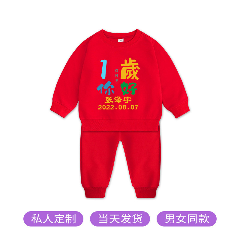 1男童秋装套装男孩衣服红色一周岁服装女孩生日宴抓周礼服男宝宝2