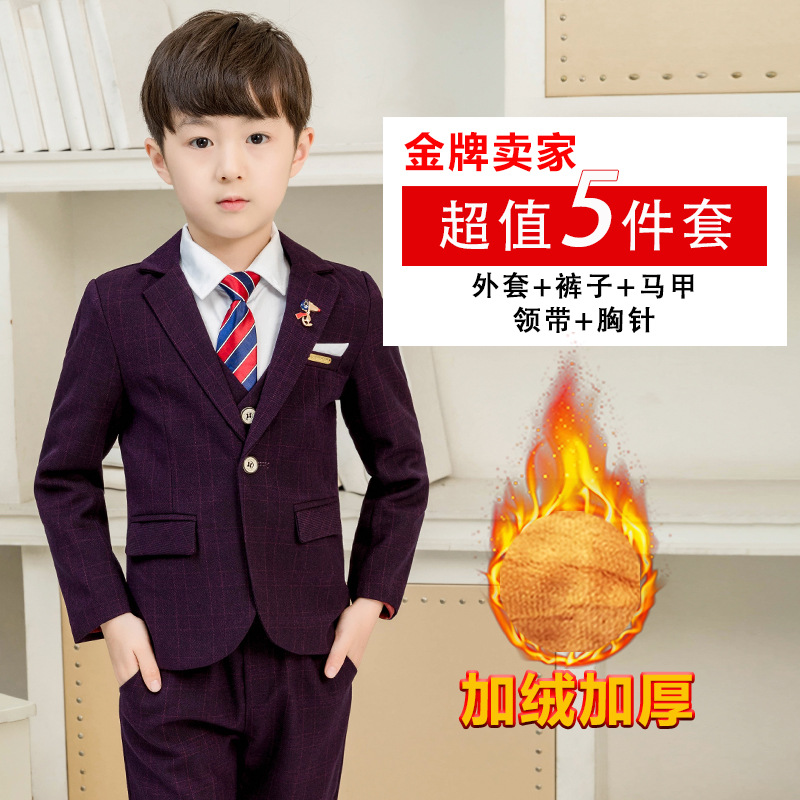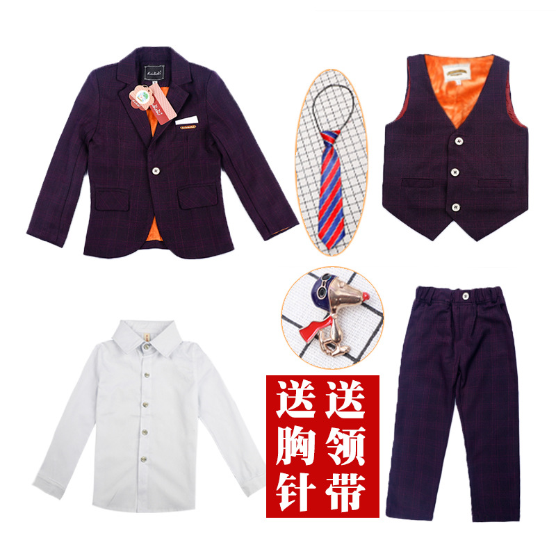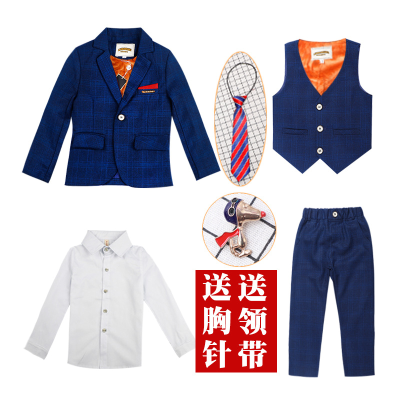 童装男童小西装套装格子英伦儿童西服活动表演演出服婚礼花童礼服