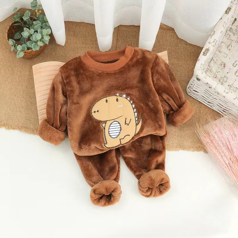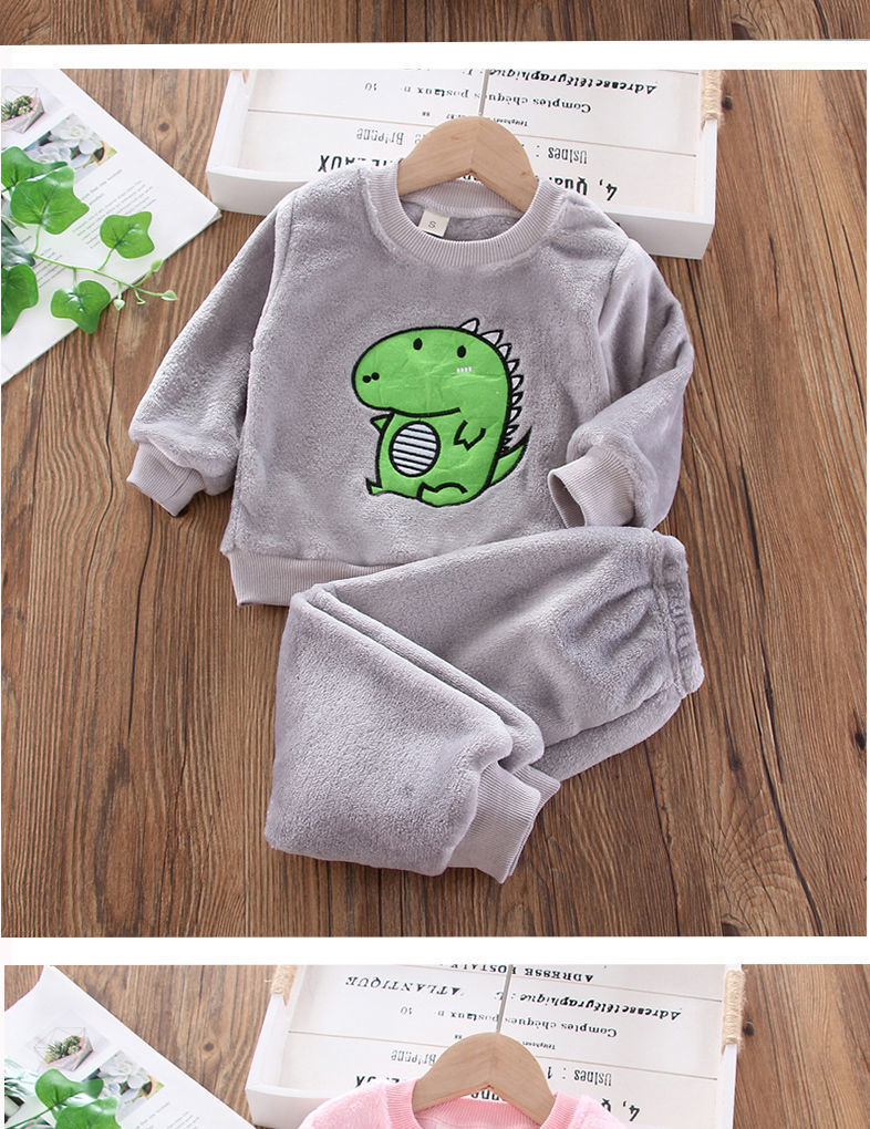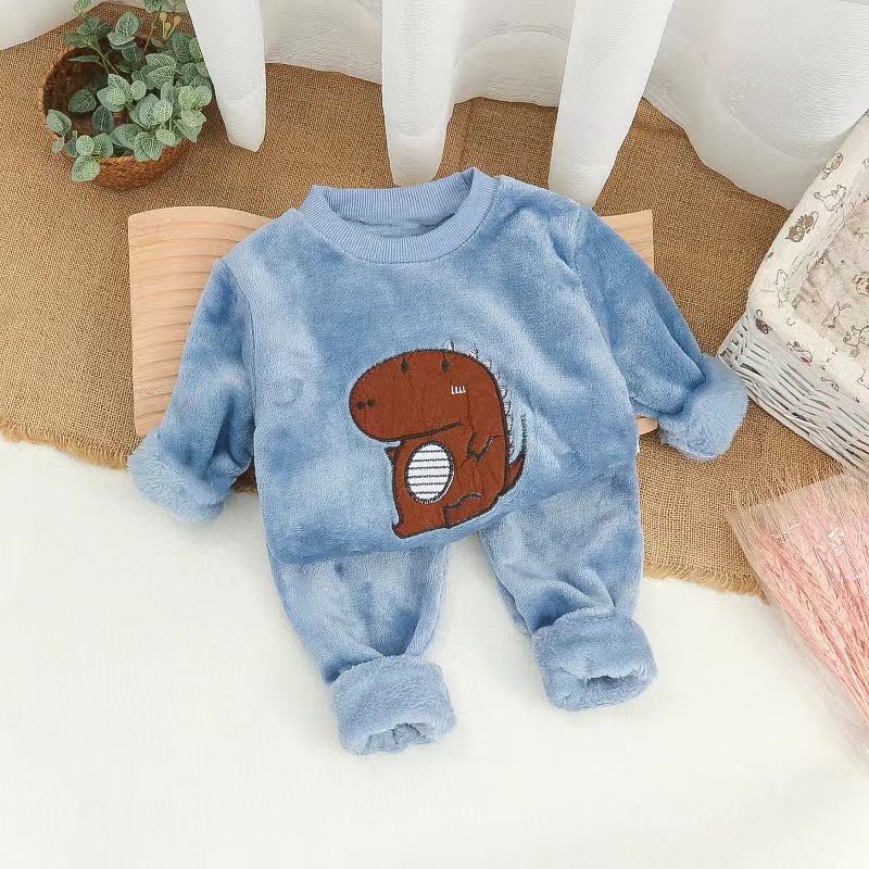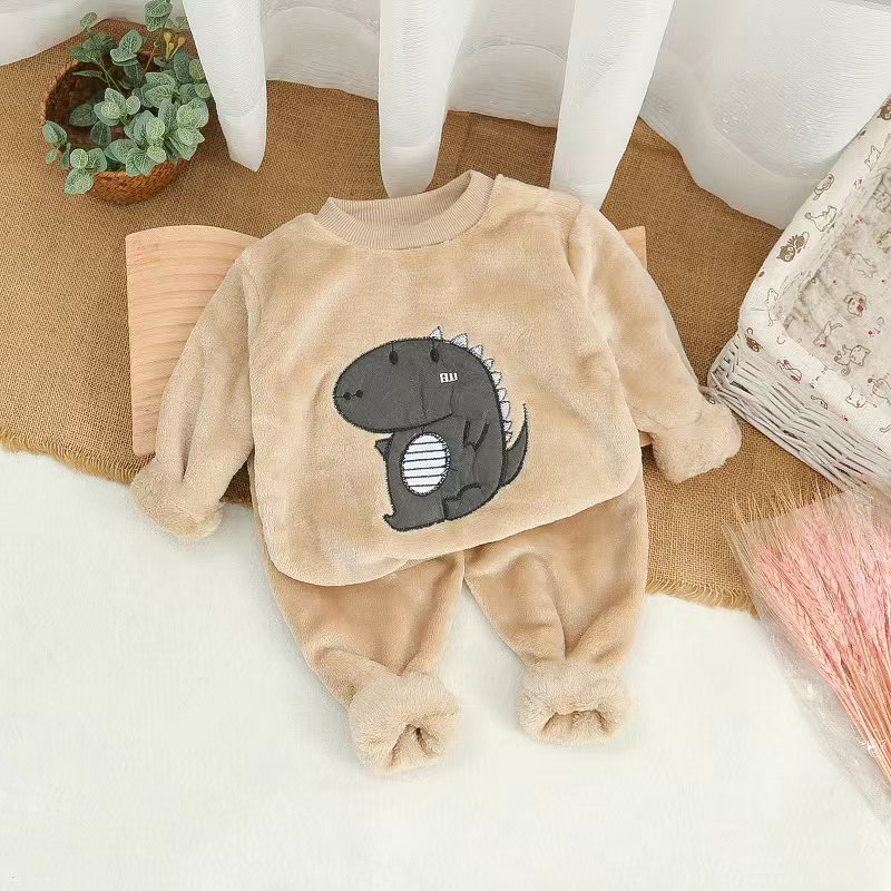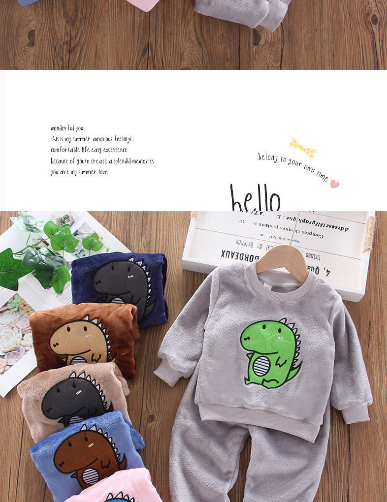 睡衣套装儿童珊瑚绒睡衣春秋2022新款套装两件套恐龙卡通图案