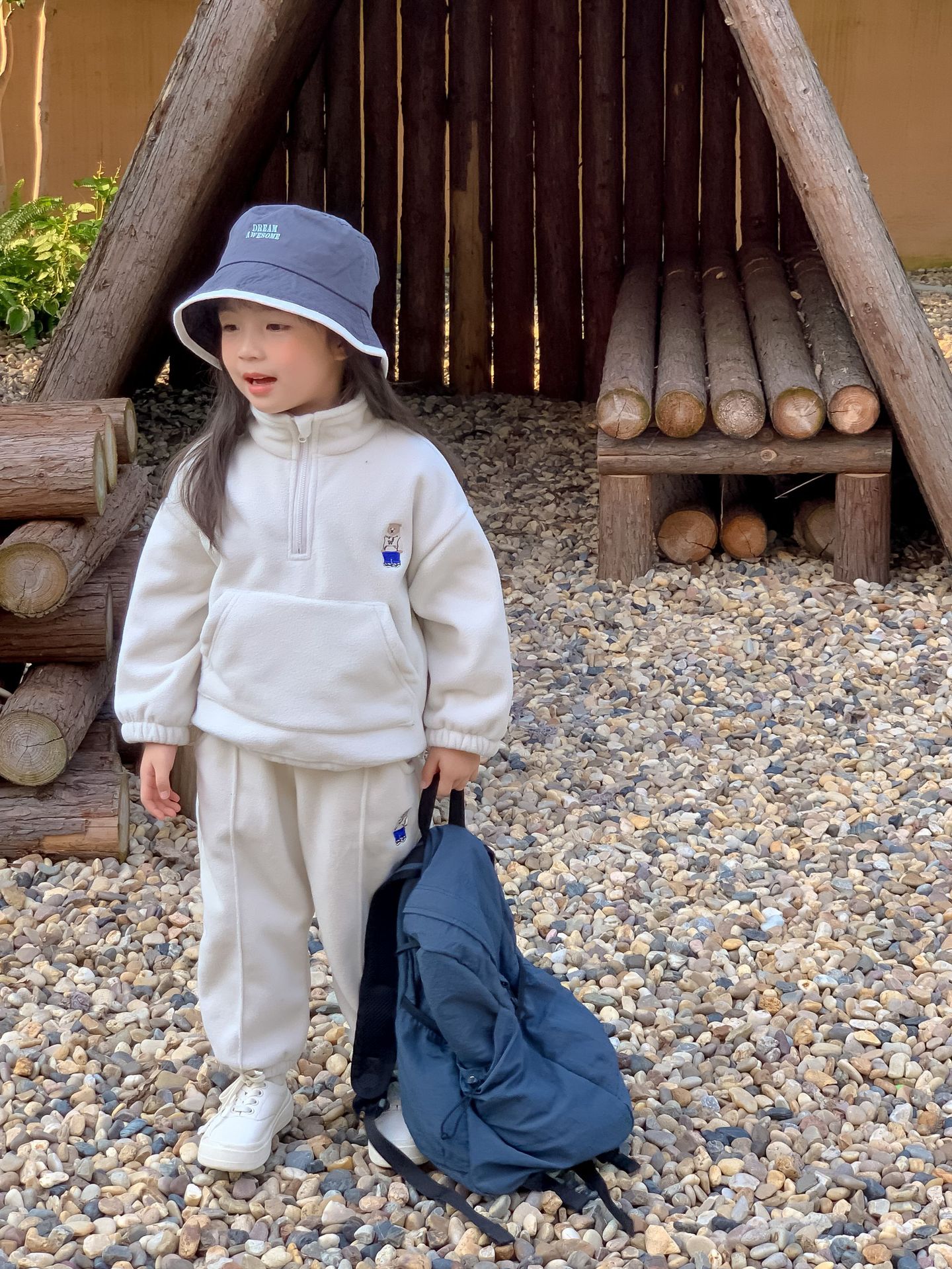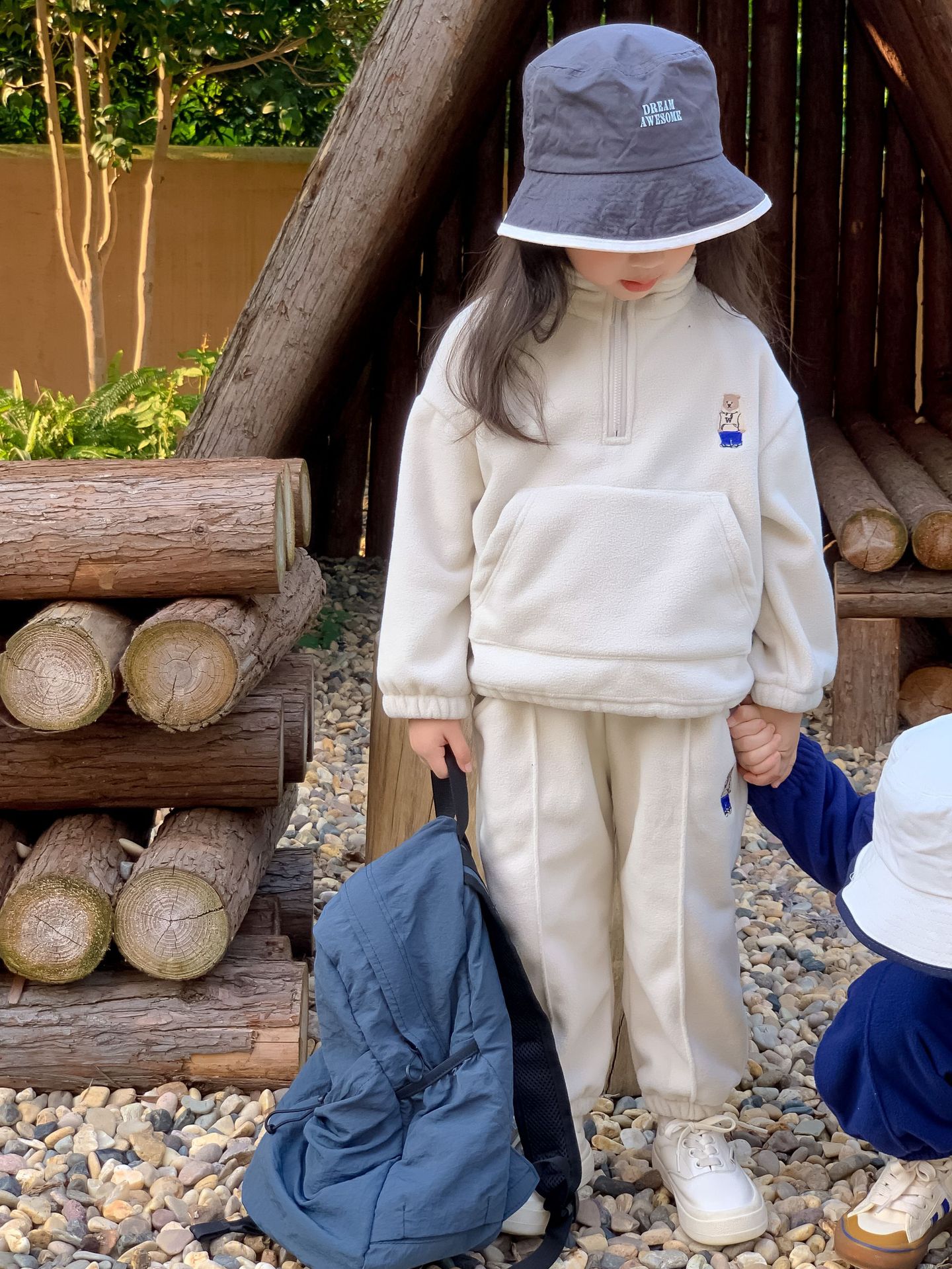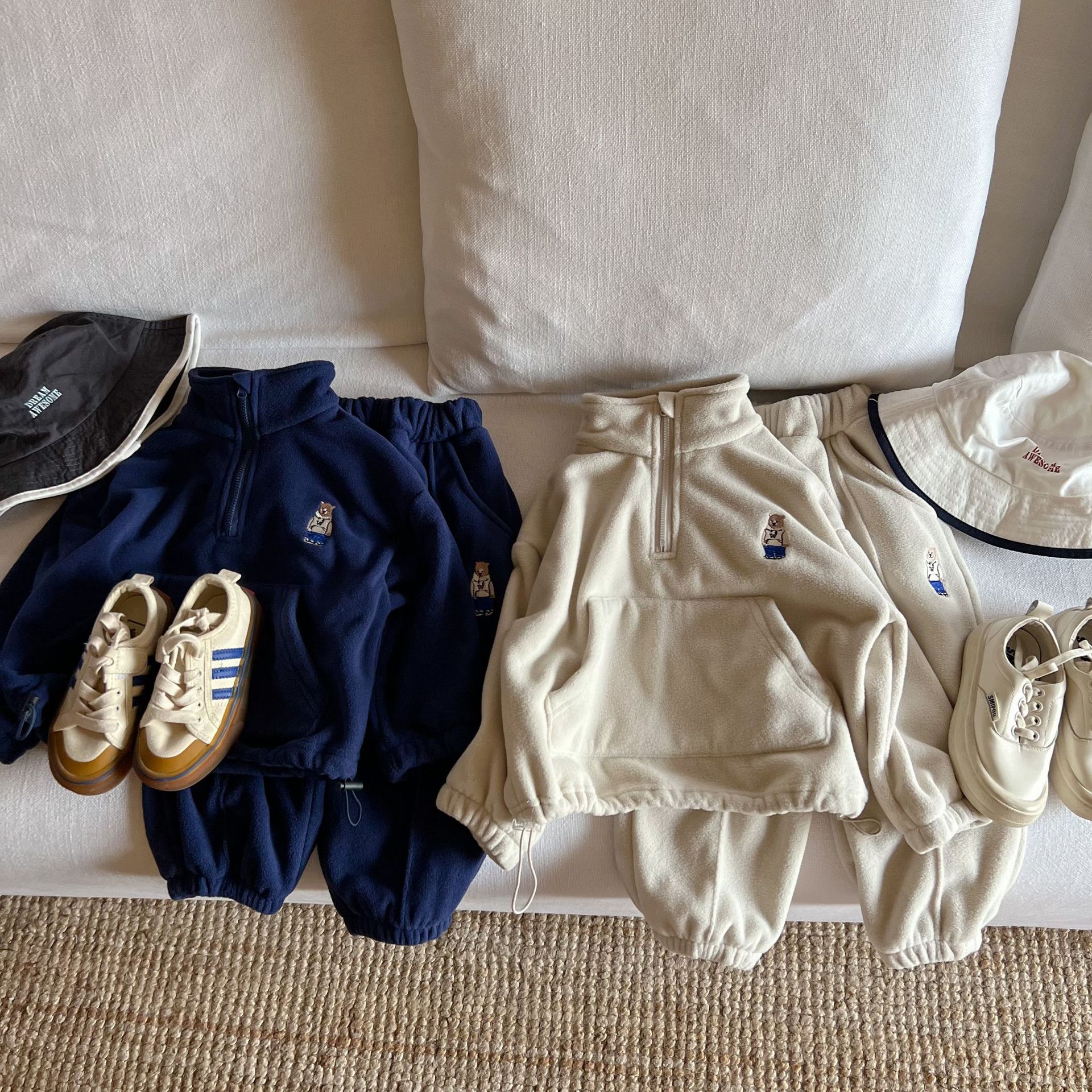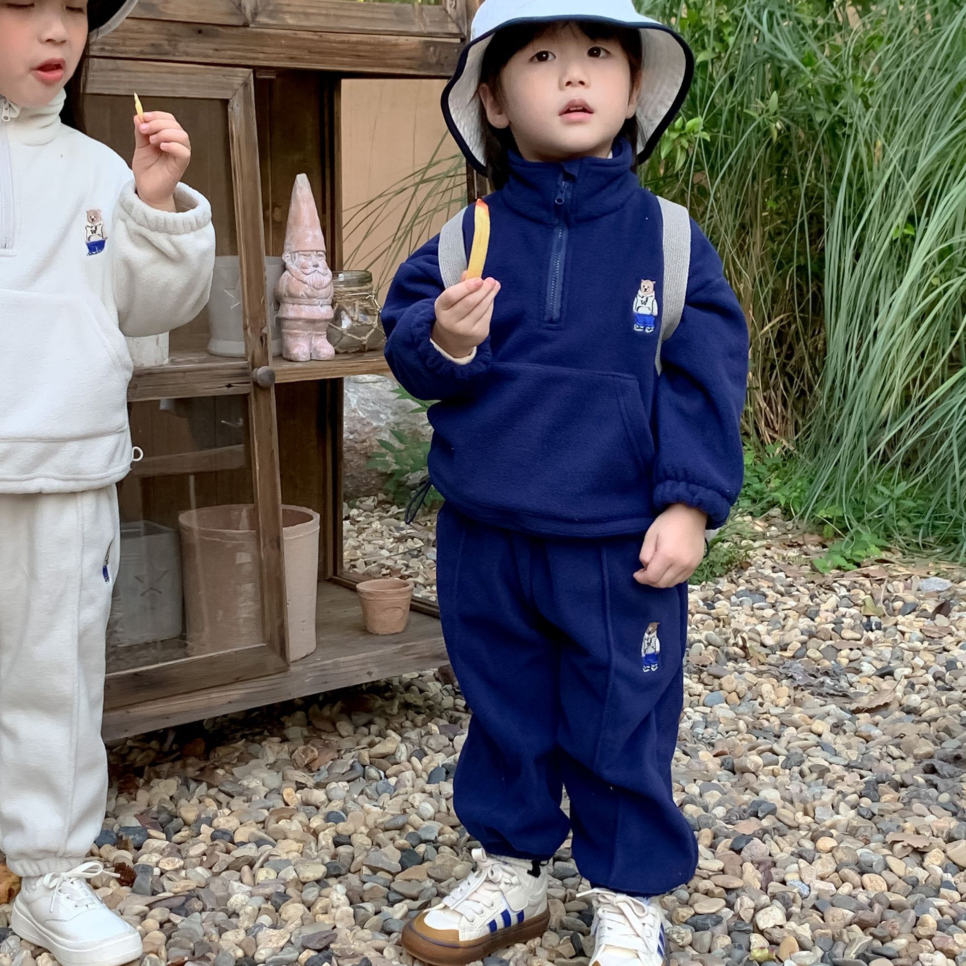 秋冬新款韩版儿童摇粒绒套装卡通卫衣两件套男女童幼儿园保暖套装