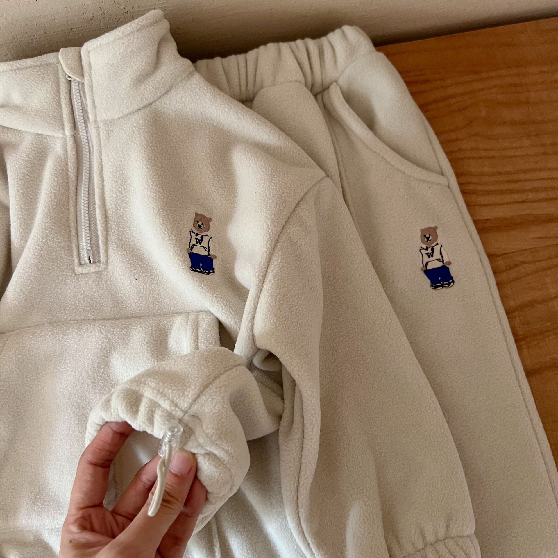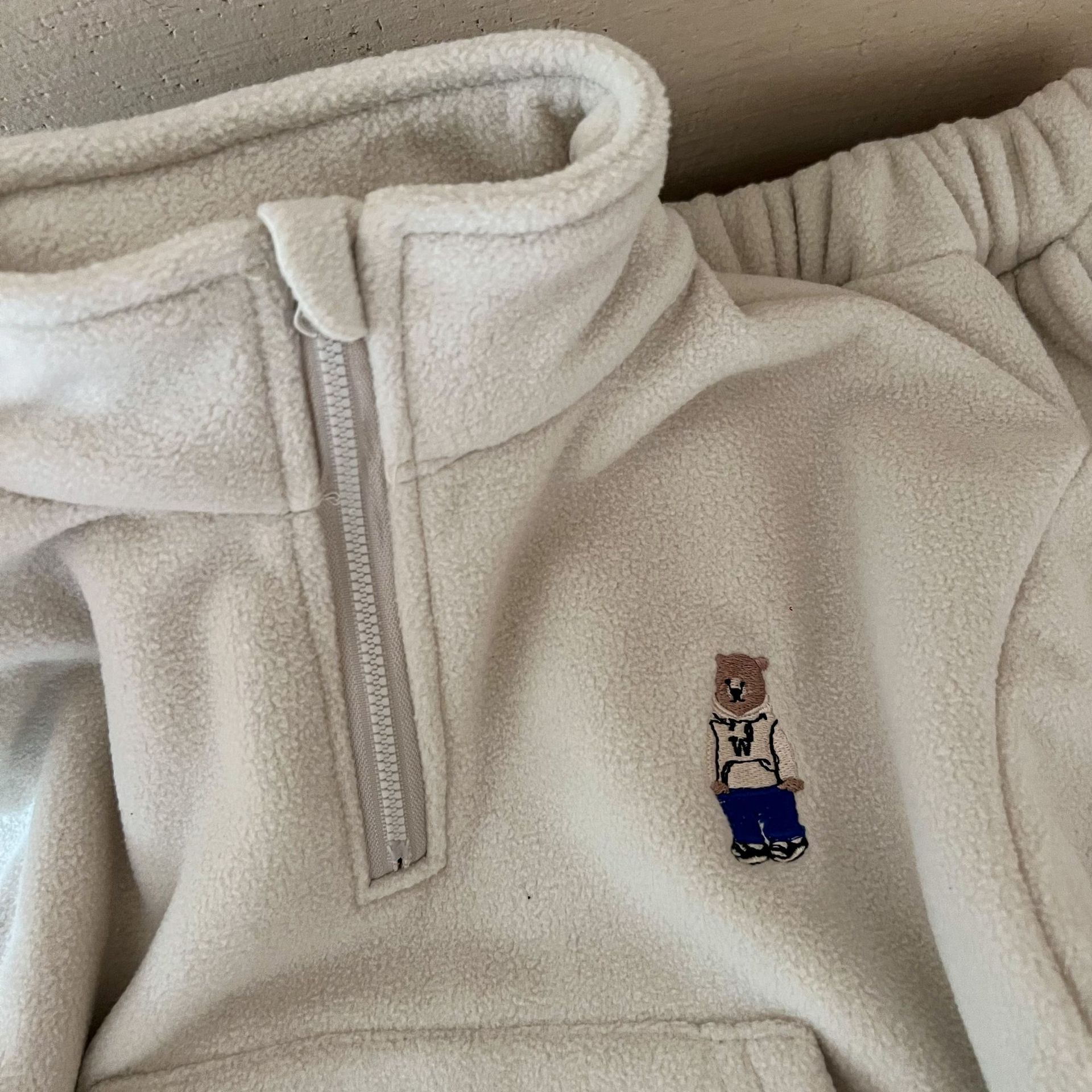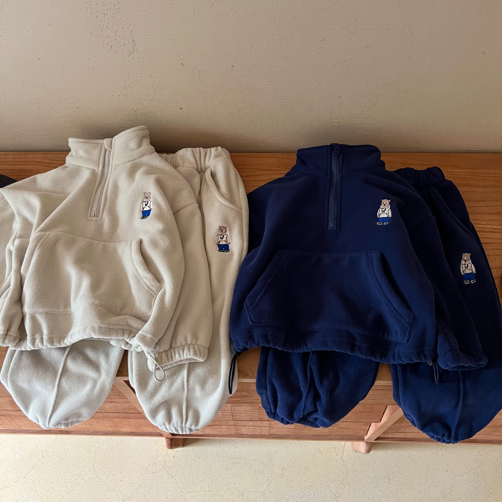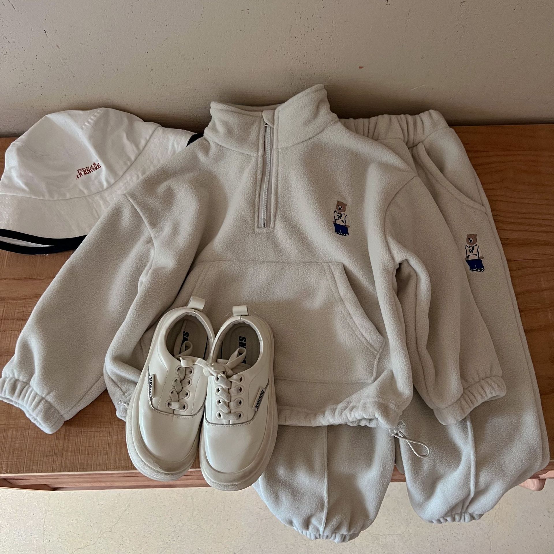 秋冬新款韩版儿童摇粒绒套装卡通卫衣两件套男女童幼儿园保暖套装