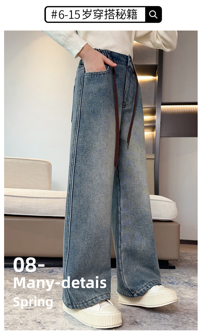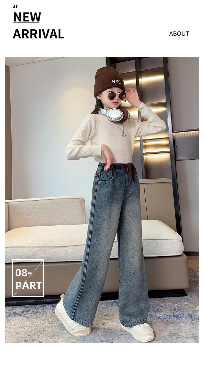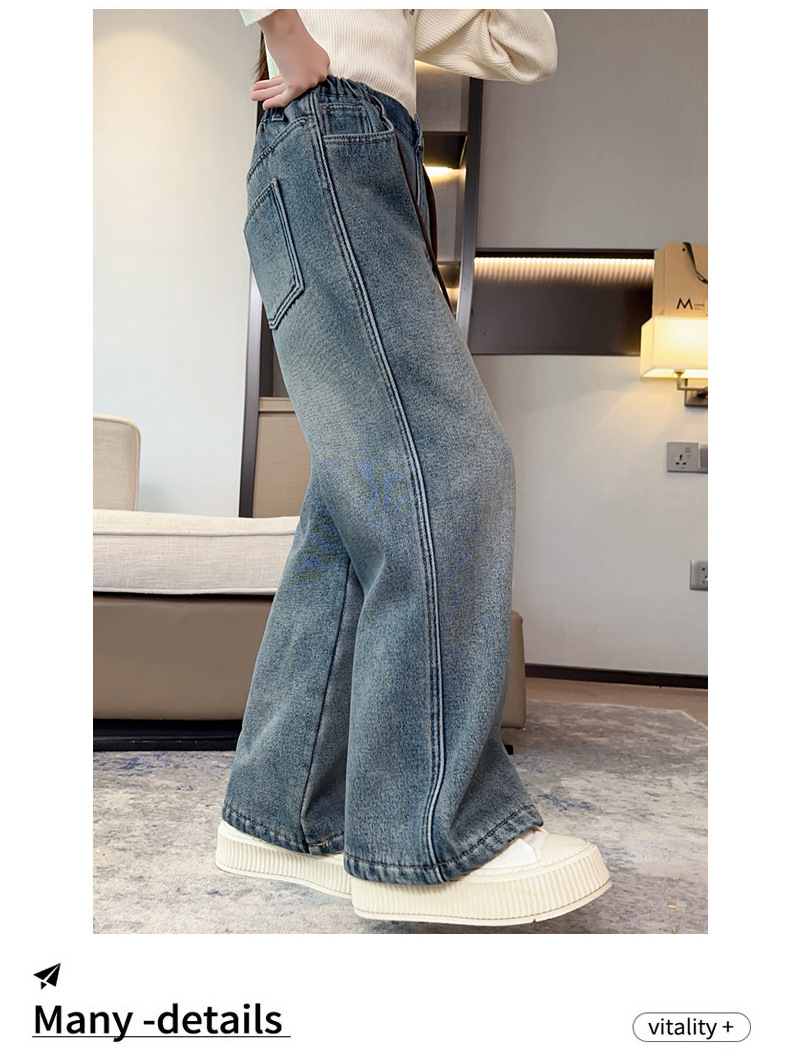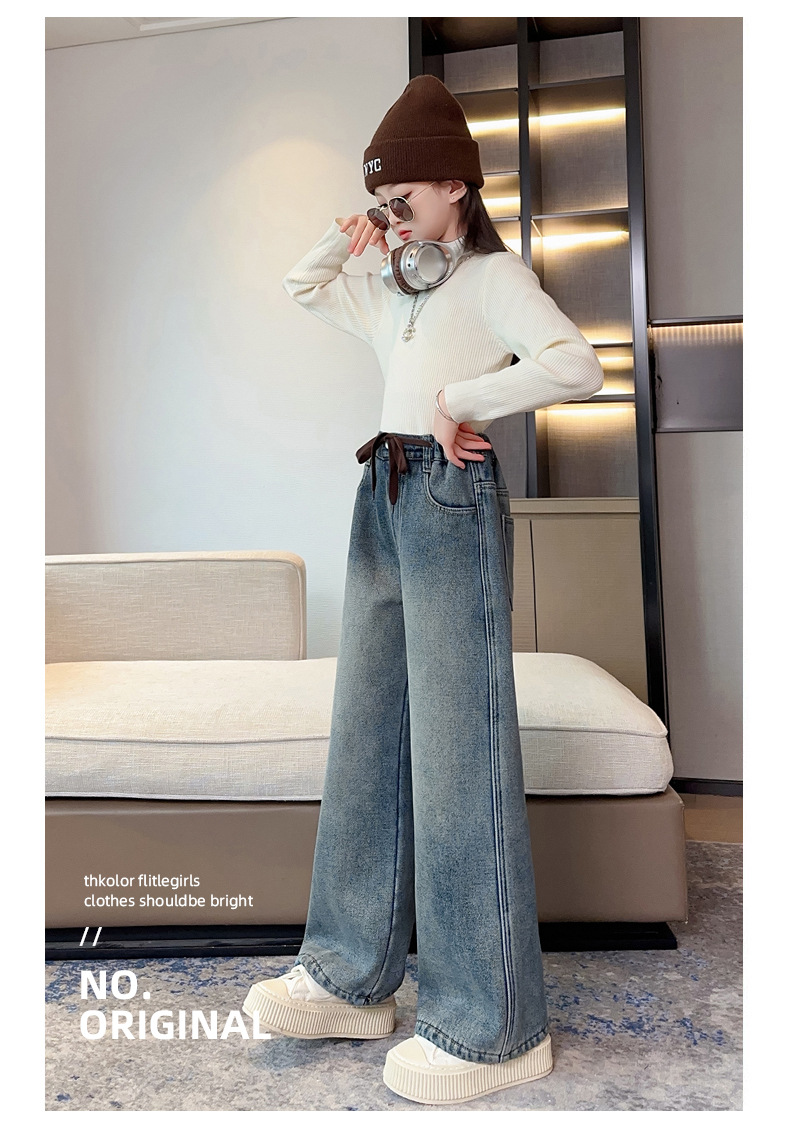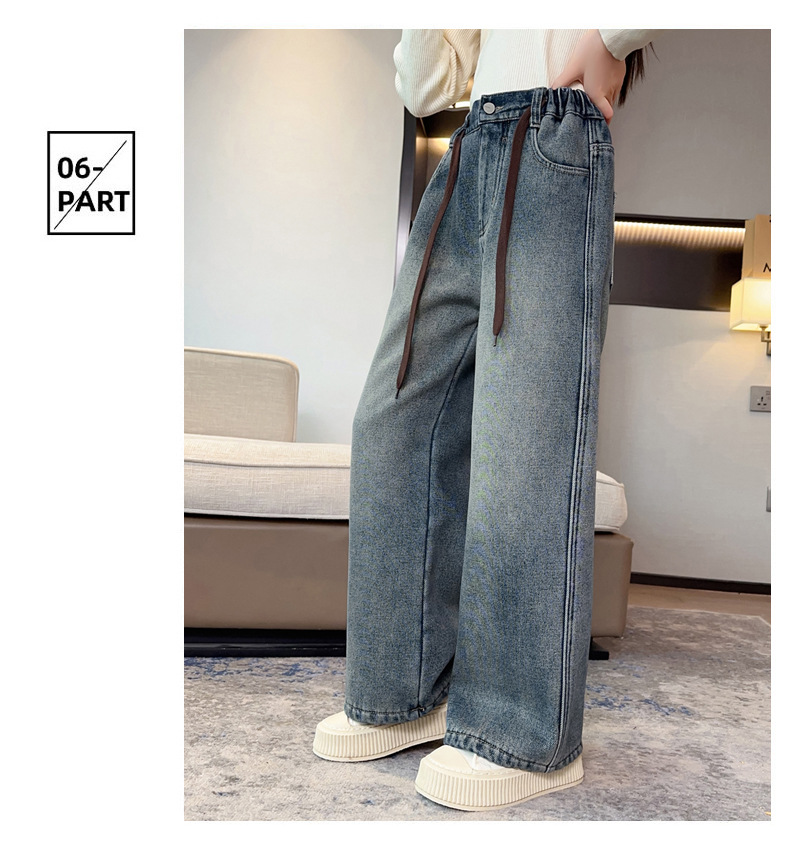 女童牛仔裤加绒加厚2023冬季新款中大童宽松直筒百搭一体绒长裤子