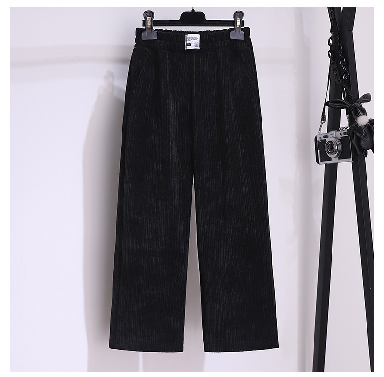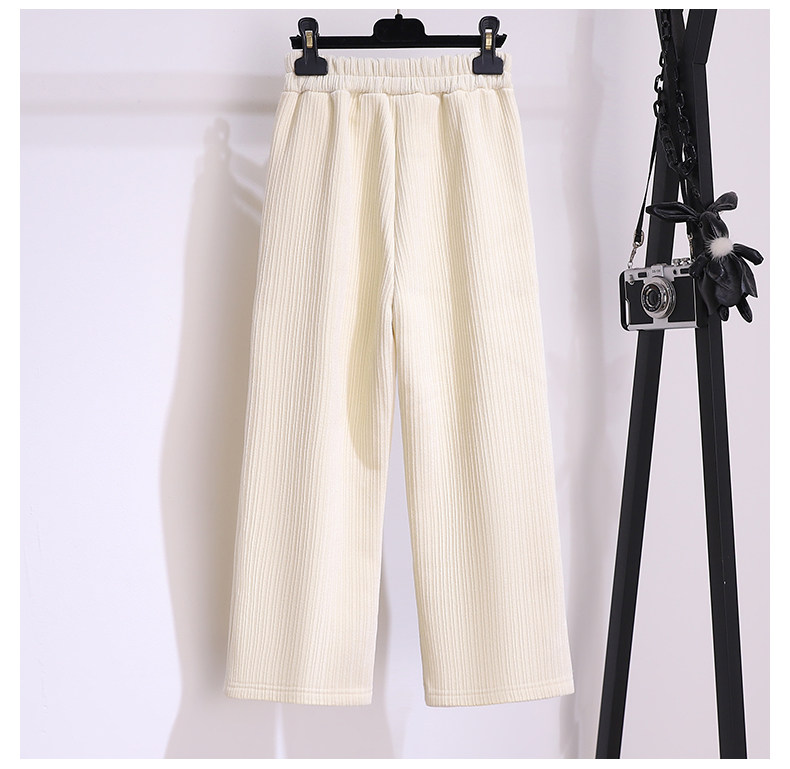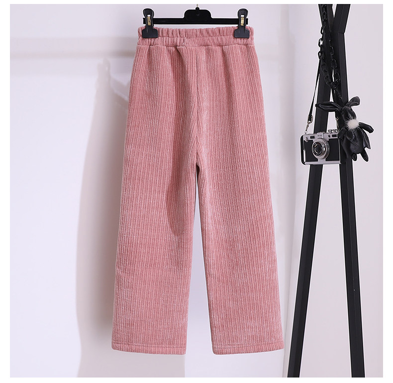 女童加绒加厚阔腿裤秋冬款洋气时髦儿童雪尼尔一体绒直筒休闲裤子