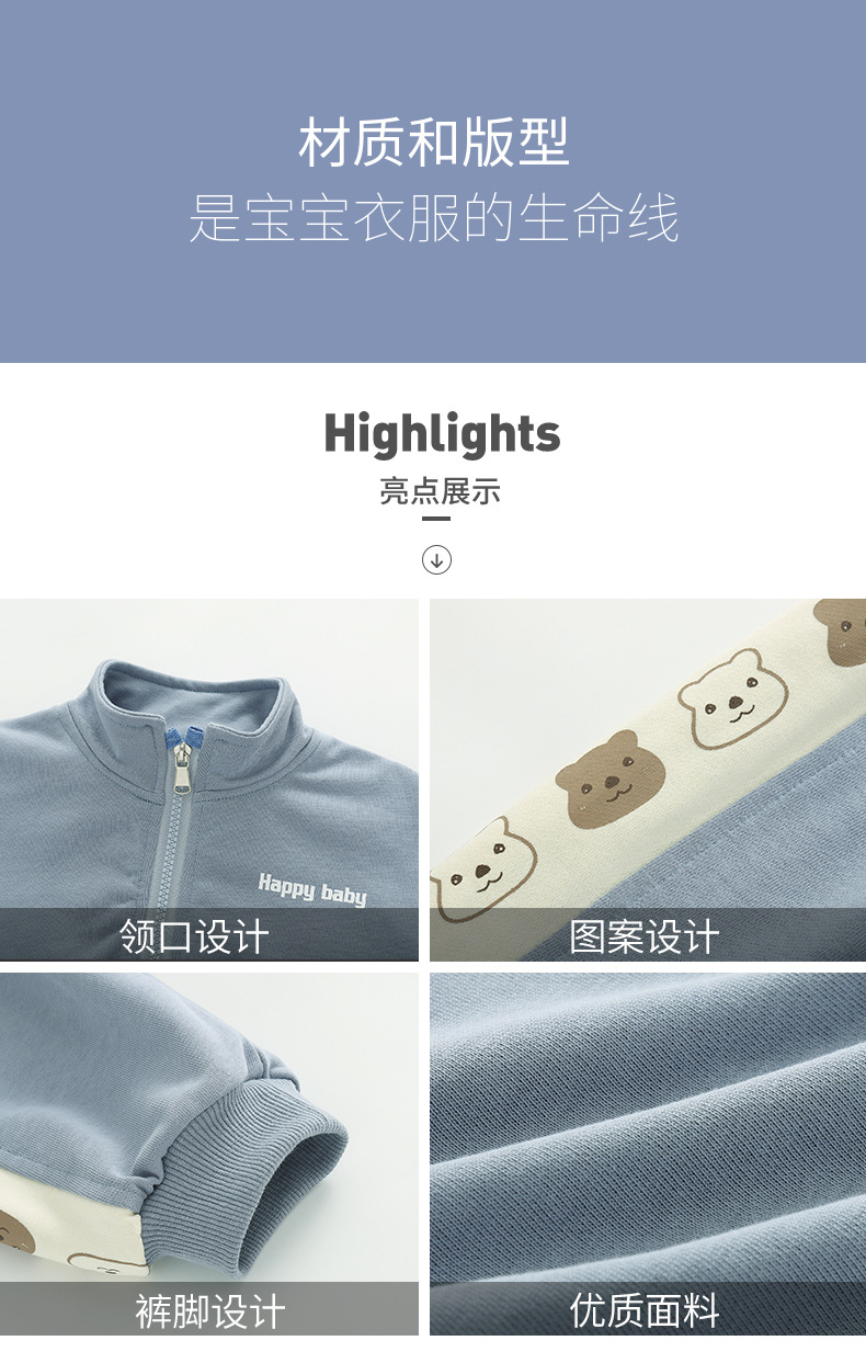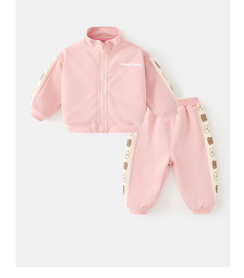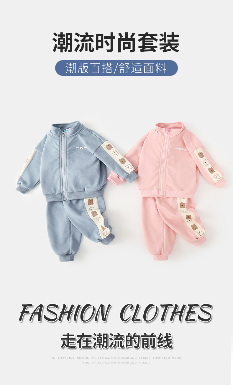 婴儿棒球服套装春秋款宝宝长袖拉链卡通两件套男女童洋气秋装衣服