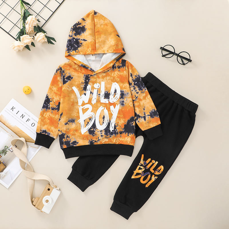 外贸2021儿童秋款套头衫两件套 韩版小童连帽卫衣长裤套装现货新