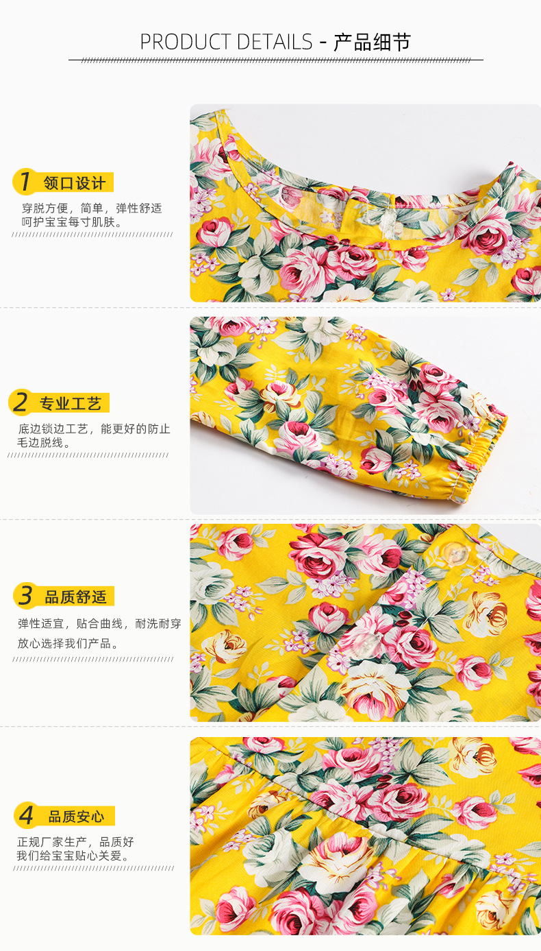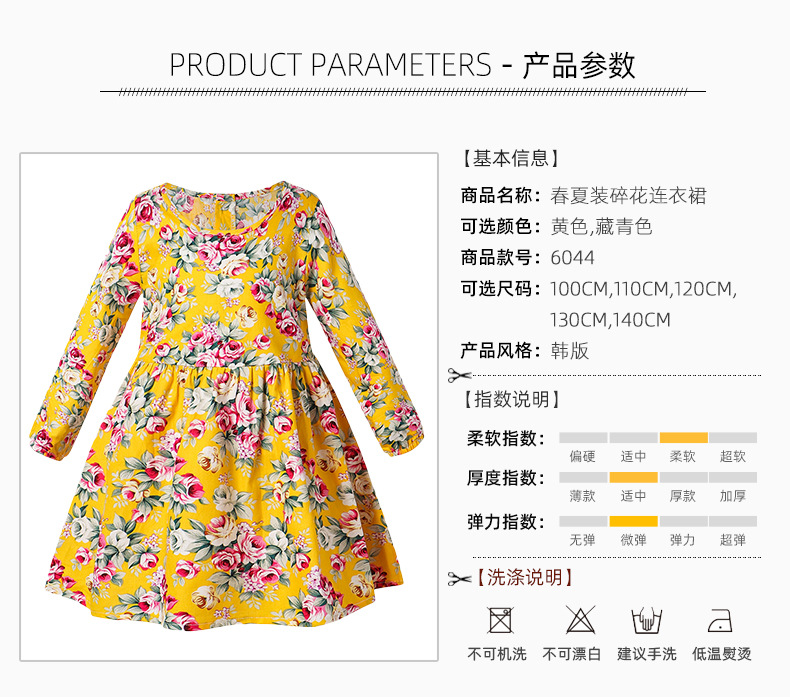 跨境春秋女童纯棉长袖连衣裙 儿童碎花连衣裙宝宝韩版印花公主裙