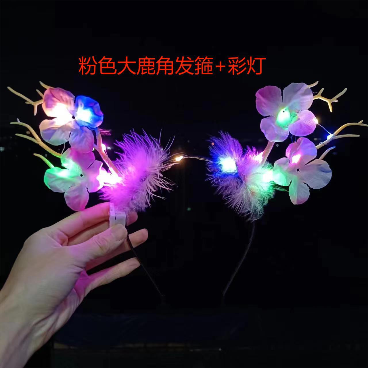 摆摊新款发光发箍大号梅花羽毛鹿角发饰圣诞发箍地摊发光玩具批发