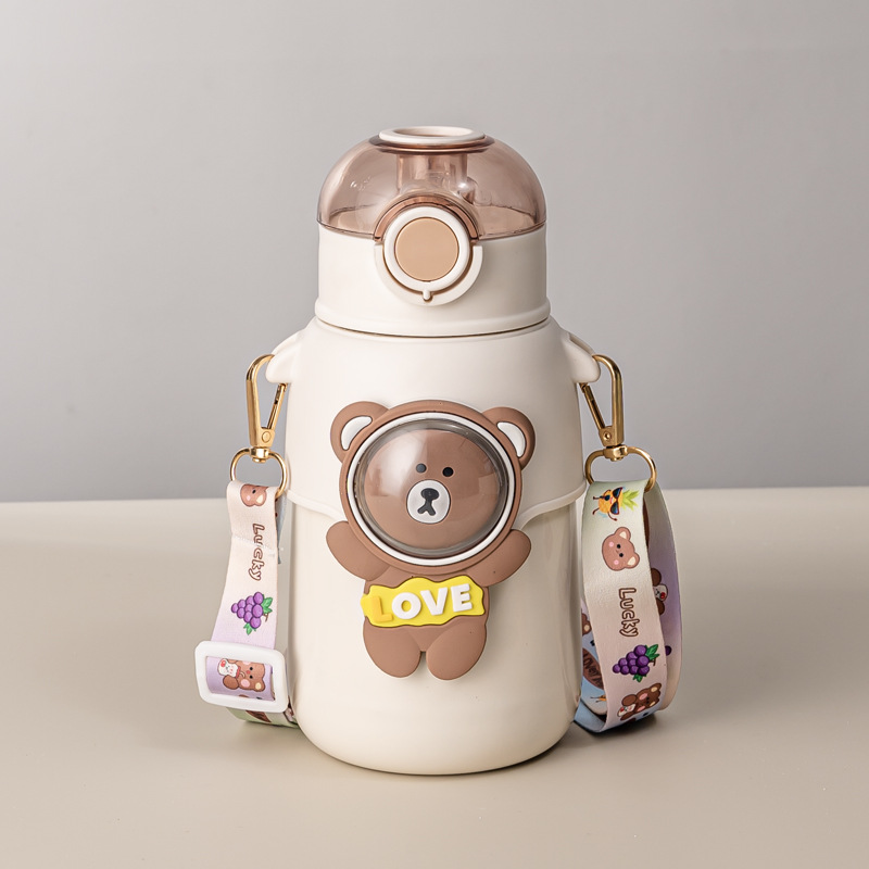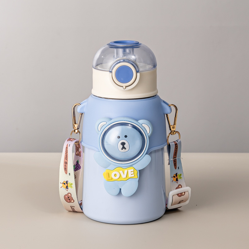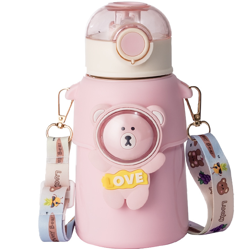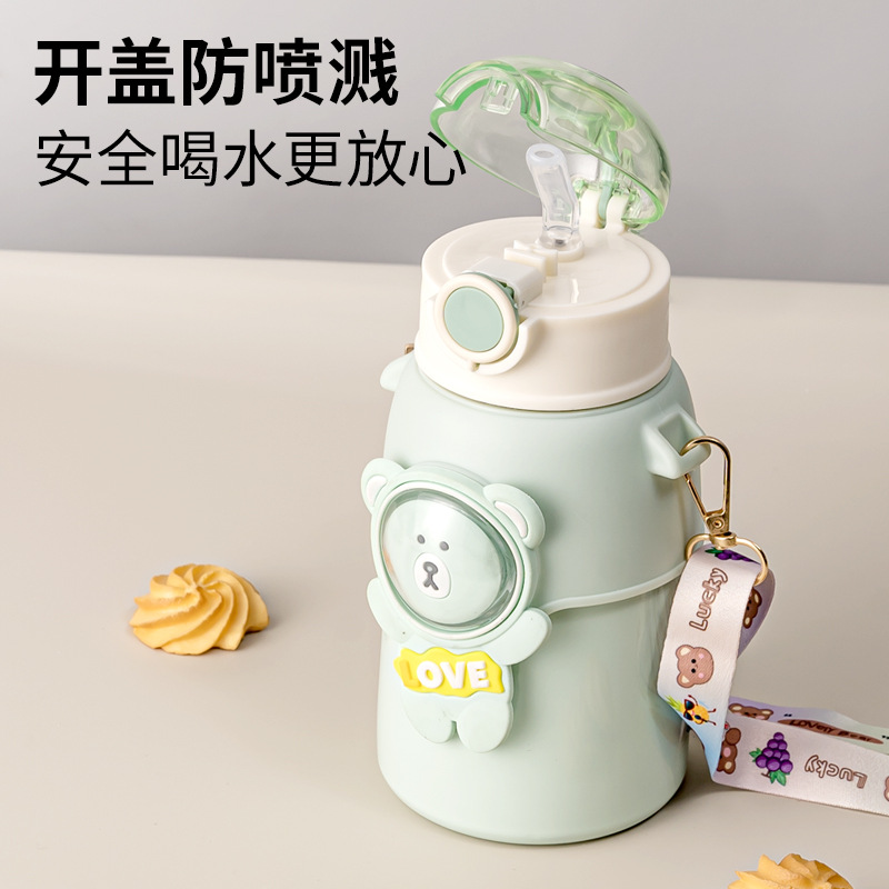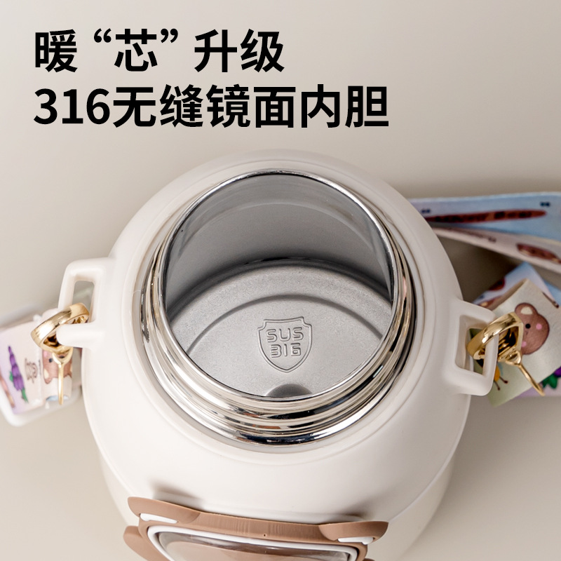 新款316不锈钢儿童保温杯可爱女生高颜值吸管水杯斜挎水壶大容量