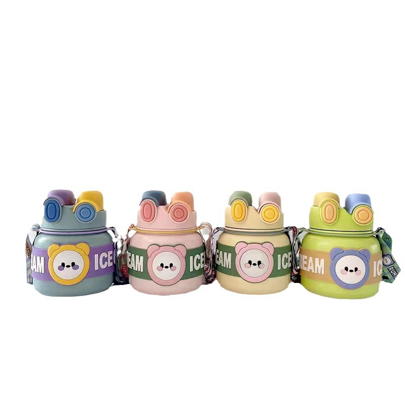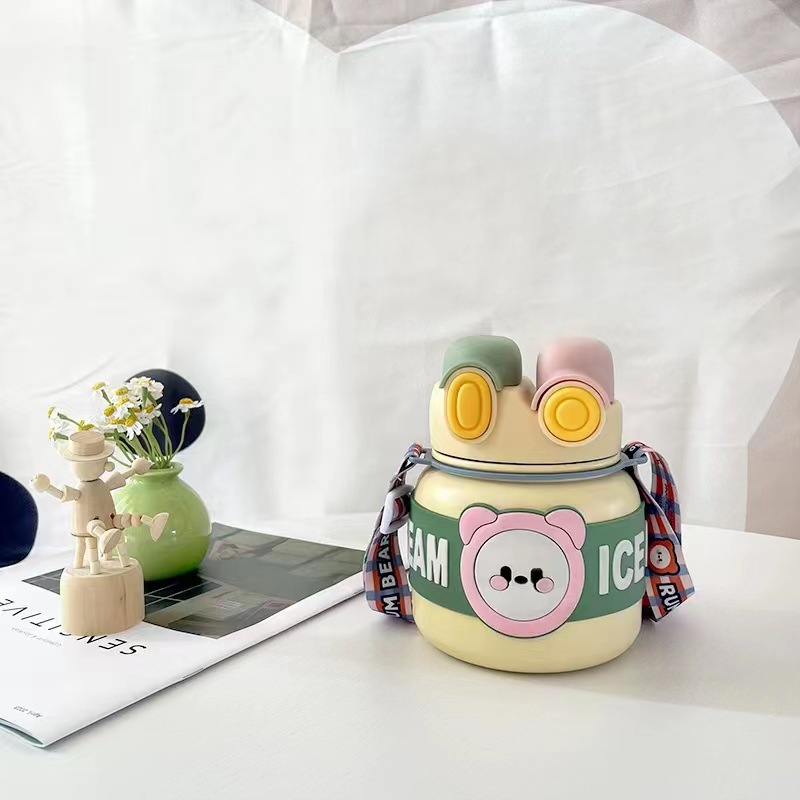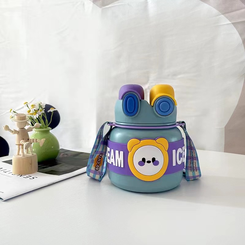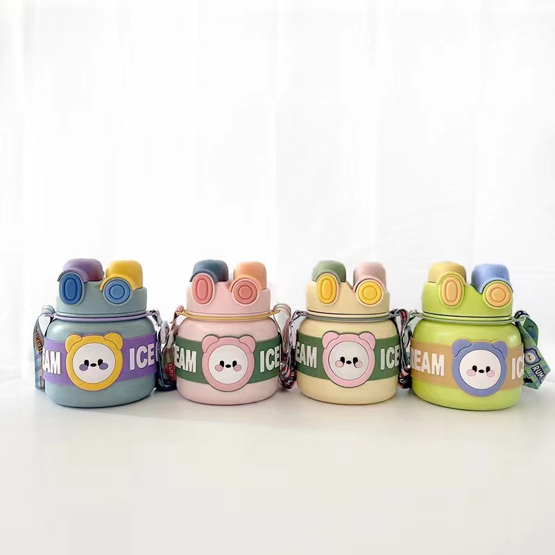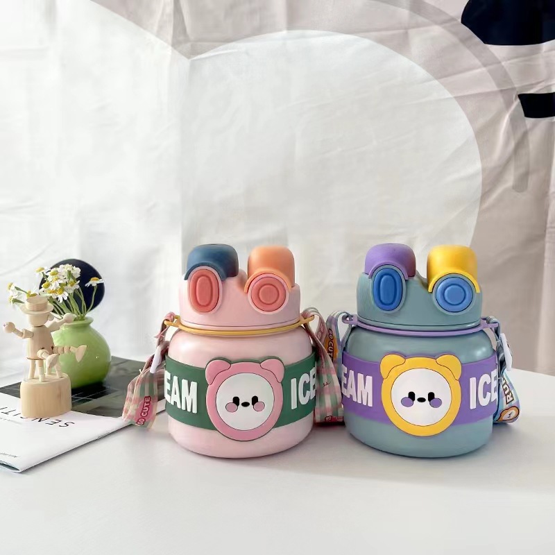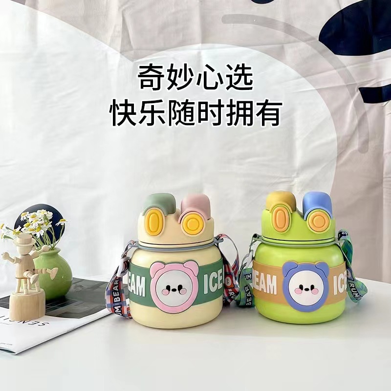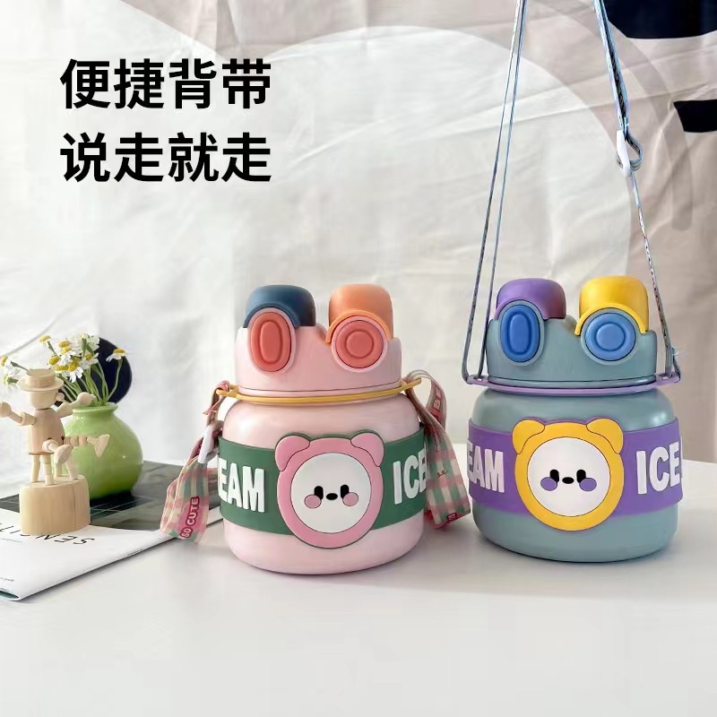 创意新款316保温杯不锈钢可爱卡通儿童吸管杯大容量防摔保温水壶