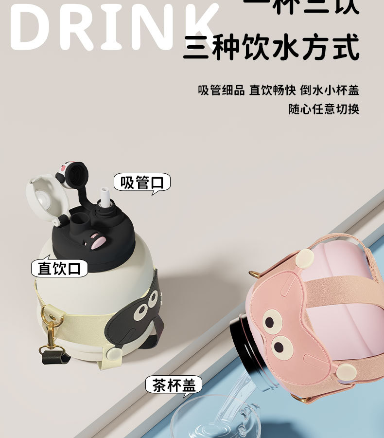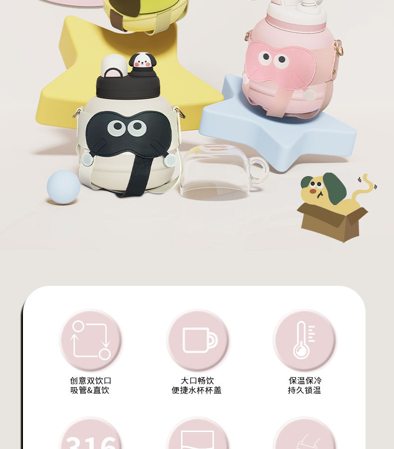 新款大容量316不锈钢儿童保温杯高颜值学生便携吸管杯卡通水杯