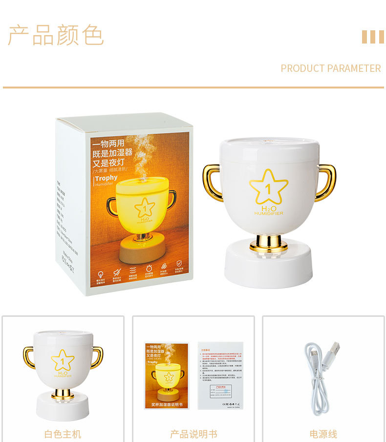 新款奖杯加湿器USB空气加湿香薰办公桌面便携大喷雾车载净化器