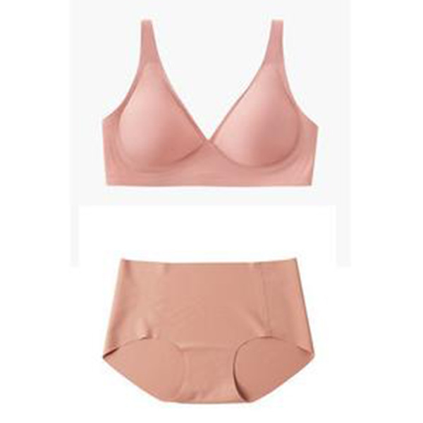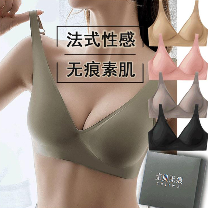 素肌无痕果冻 套装内衣女无钢圈深V薄款舒适小胸聚拢调整型文胸罩