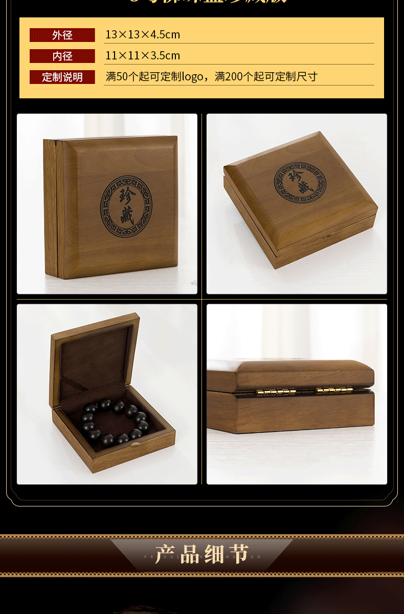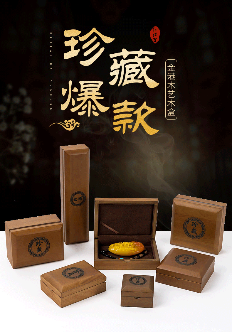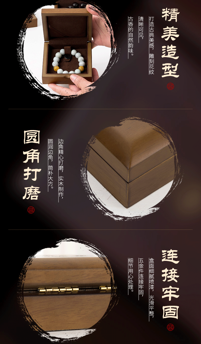实木珠宝首饰包装盒和田玉翡翠玉石吊坠项链佛珠手串手镯珍藏品盒