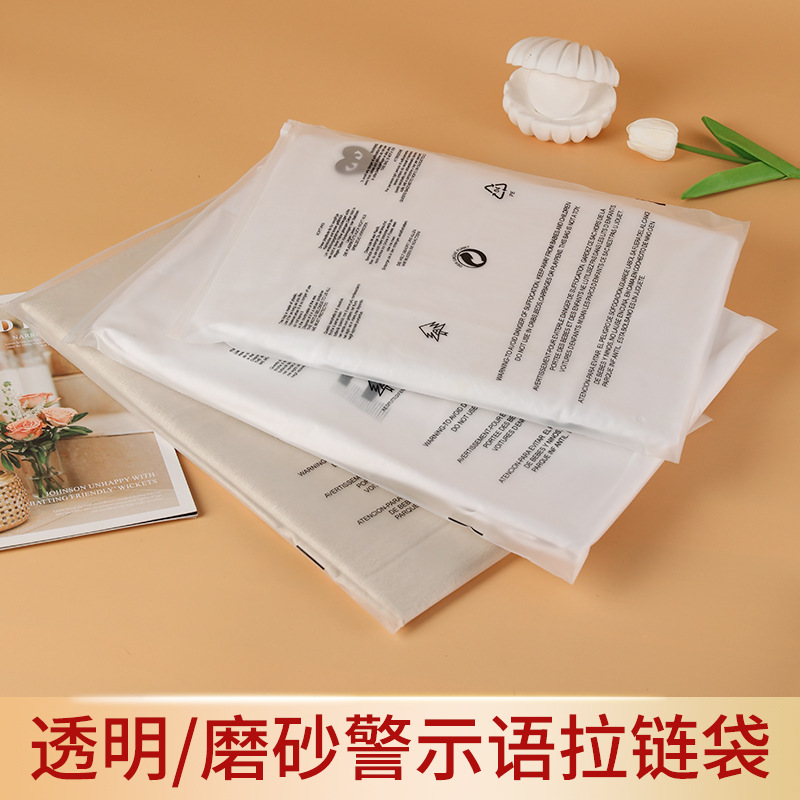 跨境专供警示语拉链包装袋透明磨砂警告语拉链袋服装拉链袋厂家直