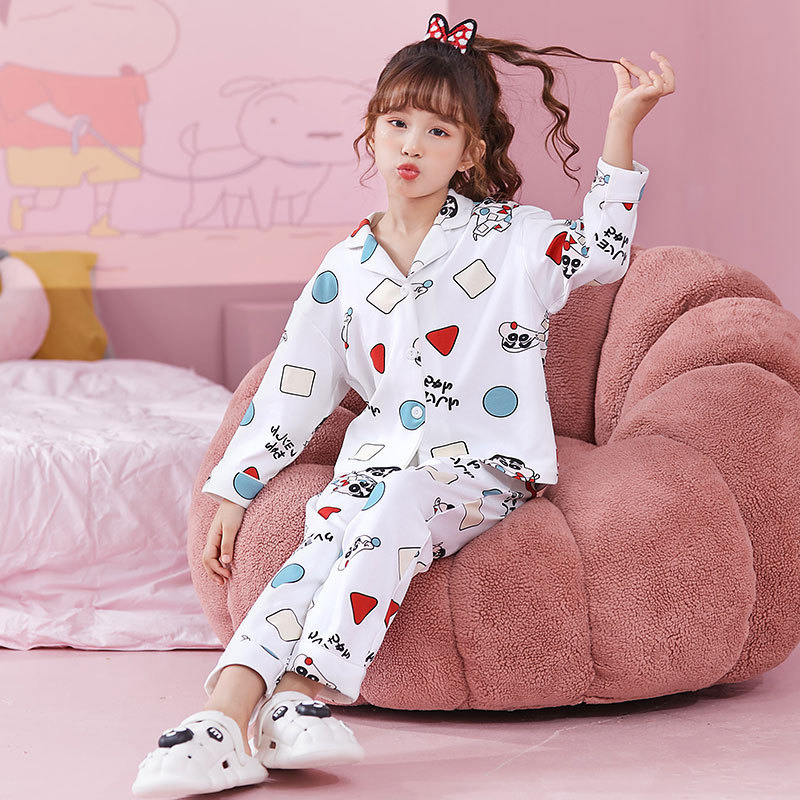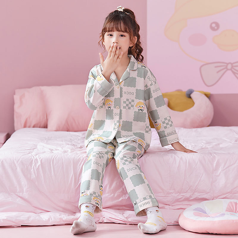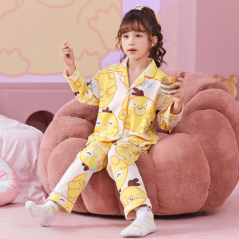 睡衣女童春秋开衫长袖精梳棉卡通中大童小女孩公主家居服套装批发