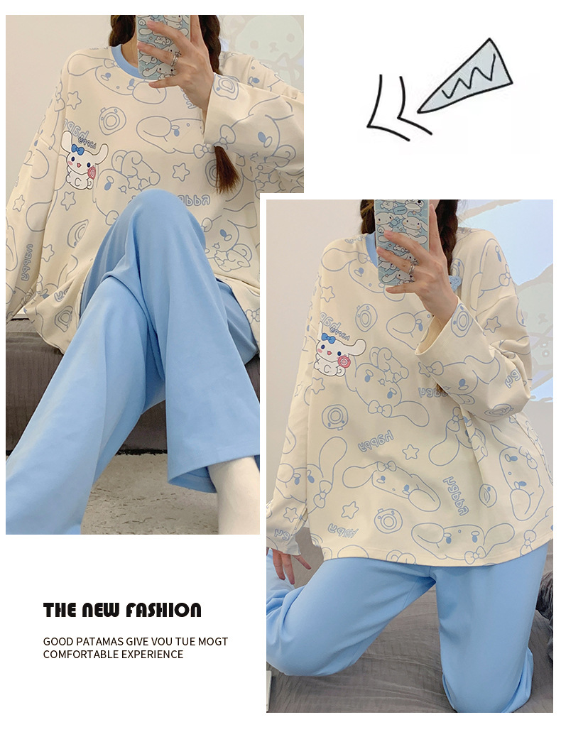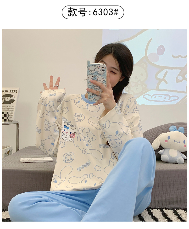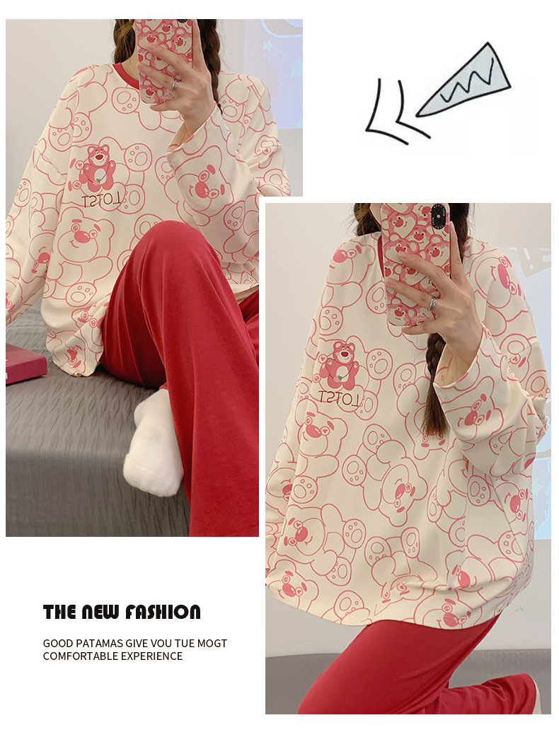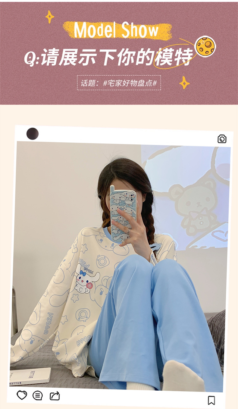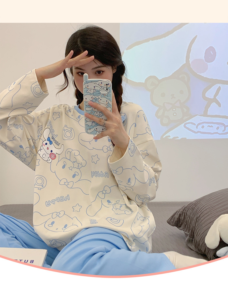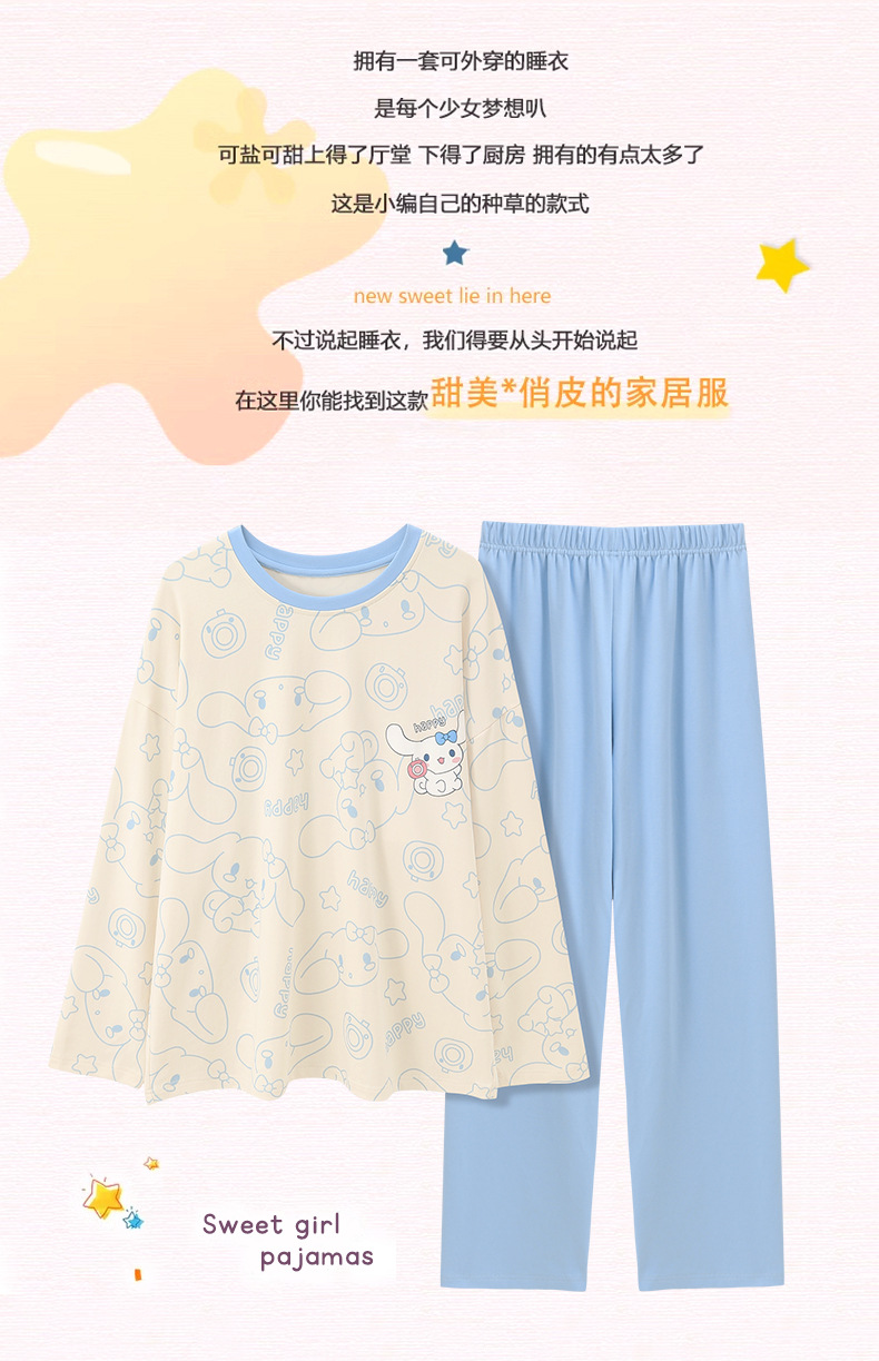 2024新款韩版秋季卡通休闲可爱圆领长袖睡衣女仿棉睡衣卡通家居服