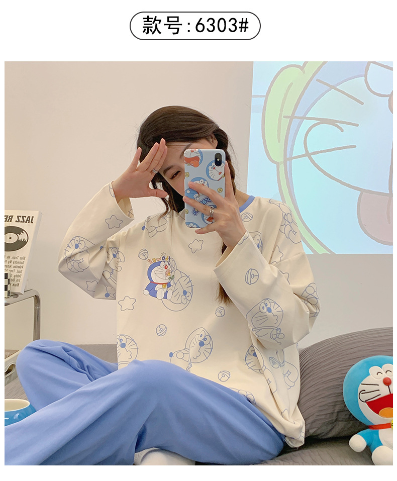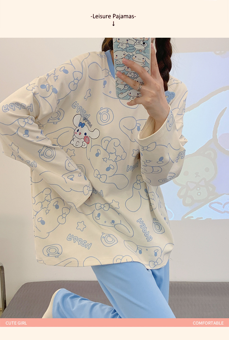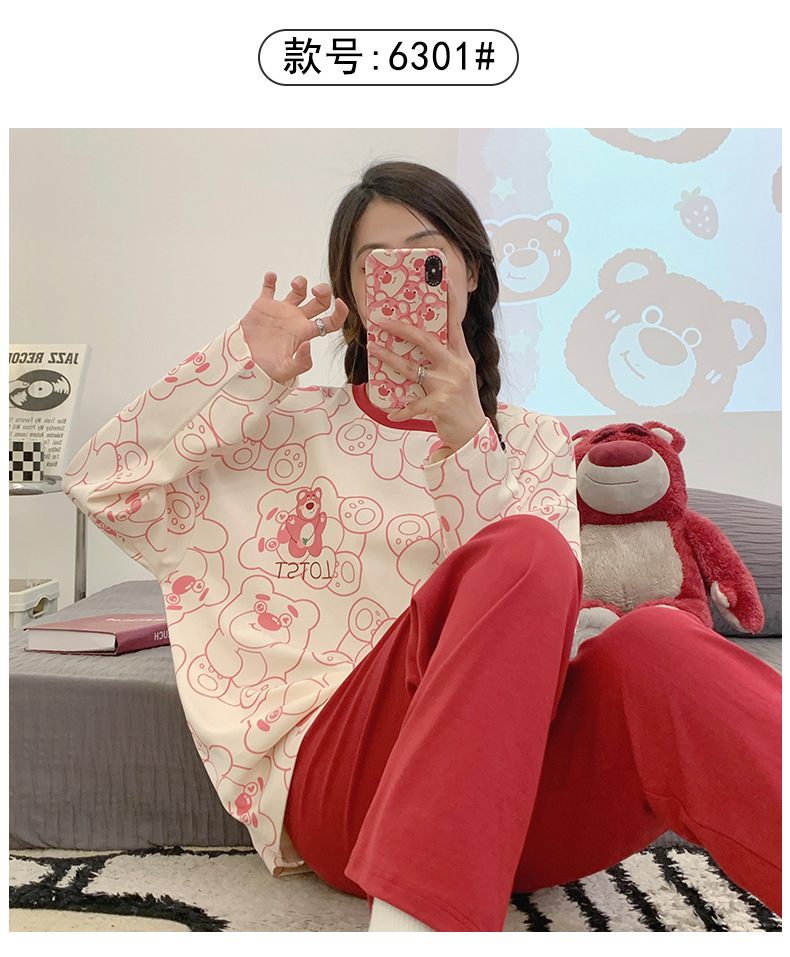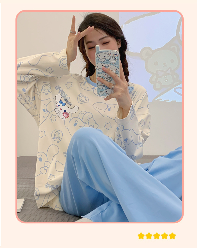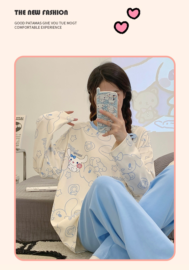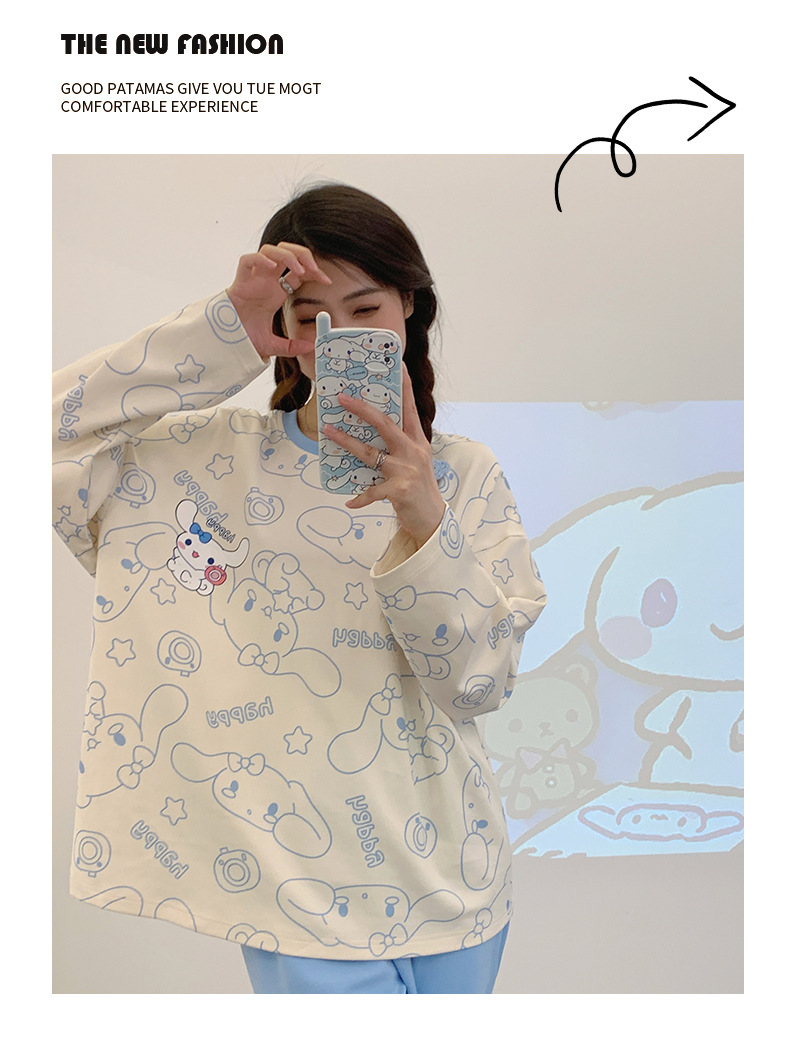 2024新款韩版秋季卡通休闲可爱圆领长袖睡衣女仿棉睡衣卡通家居服
