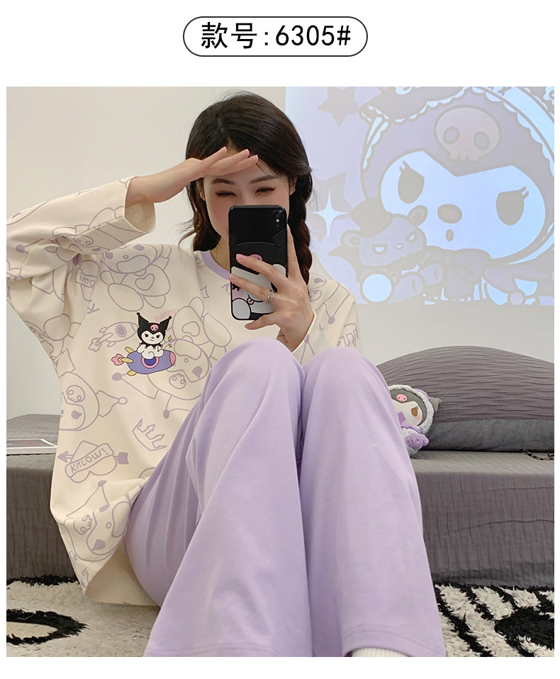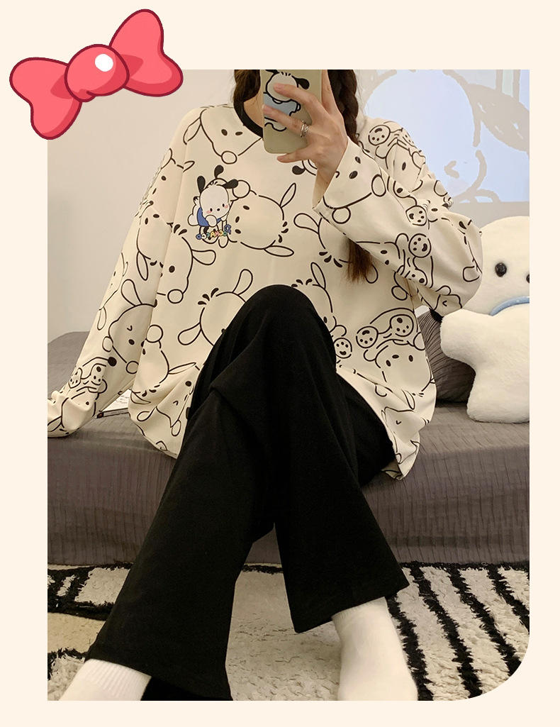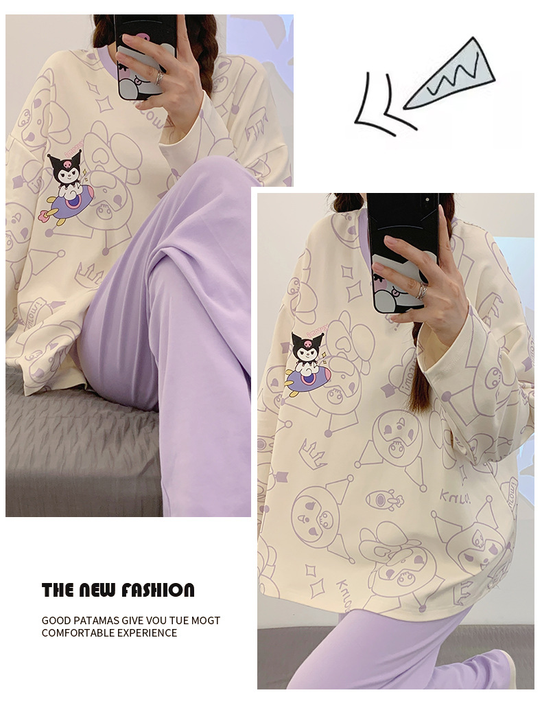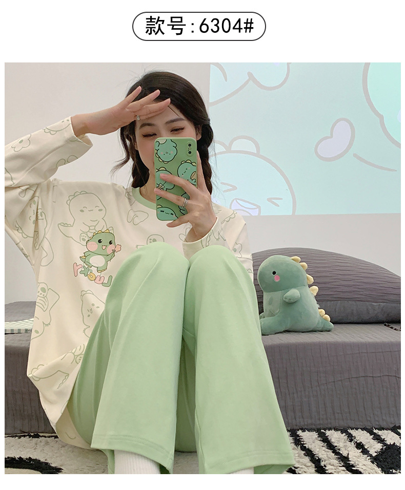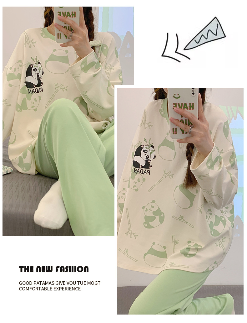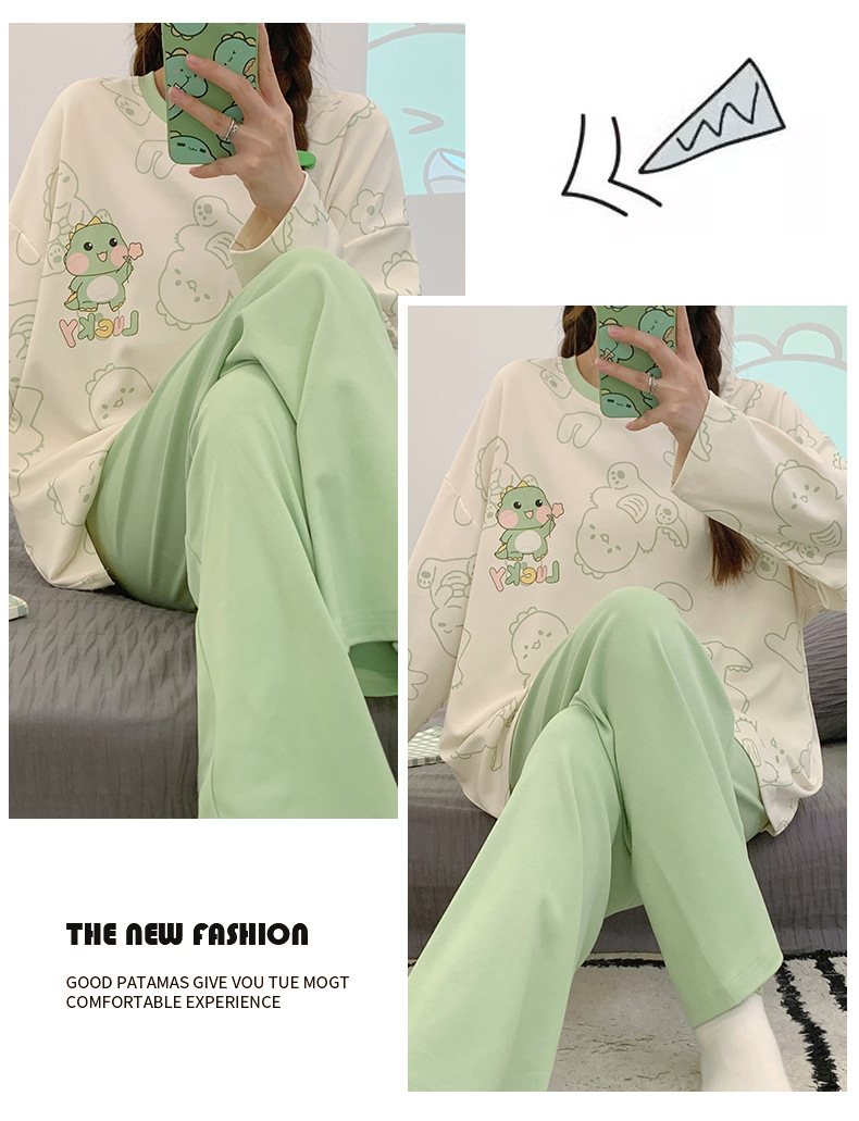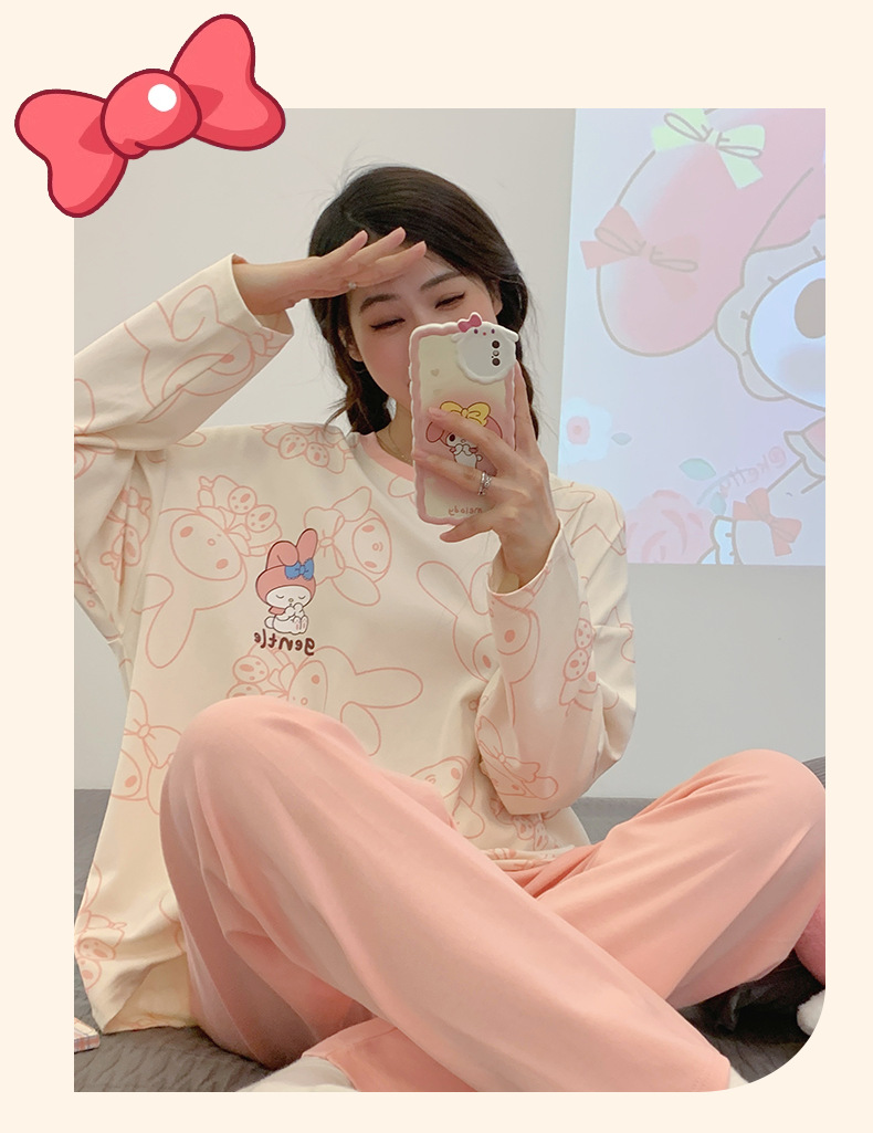 2024新款韩版秋季卡通休闲可爱圆领长袖睡衣女仿棉睡衣卡通家居服