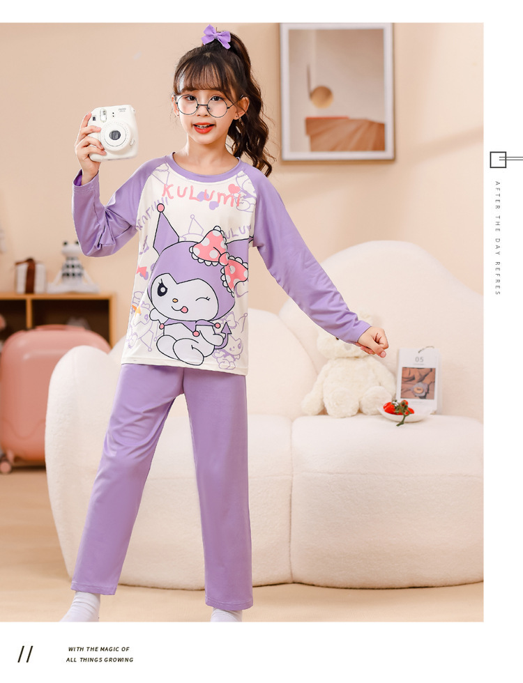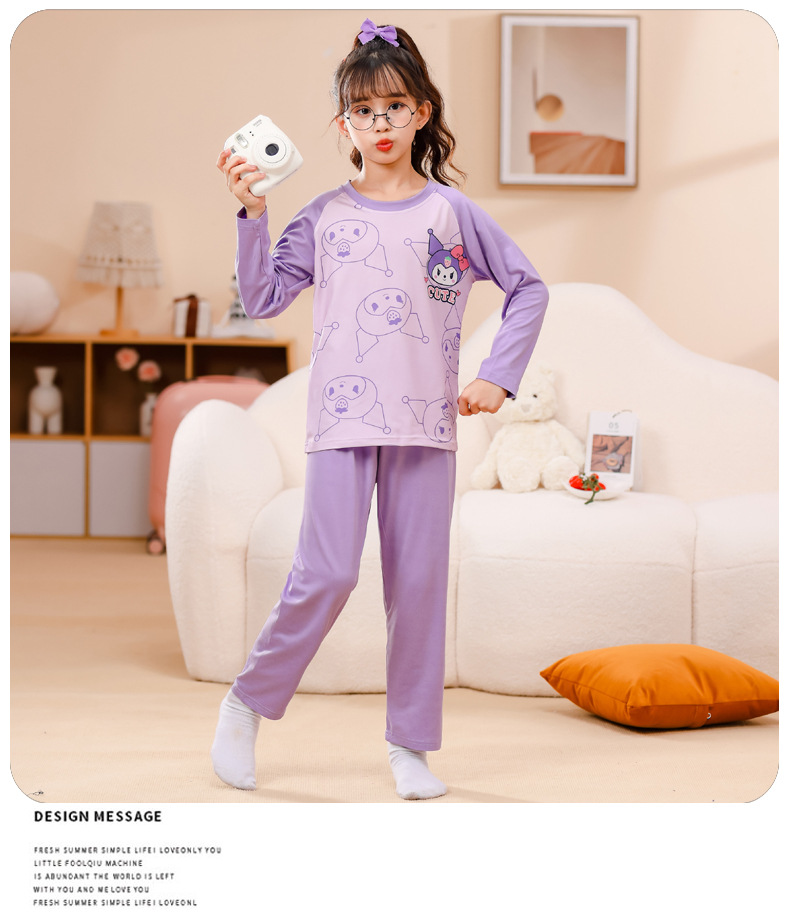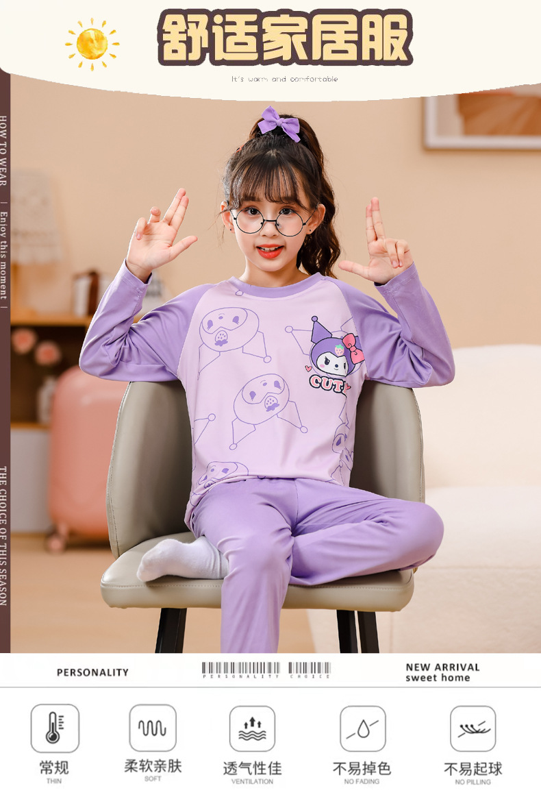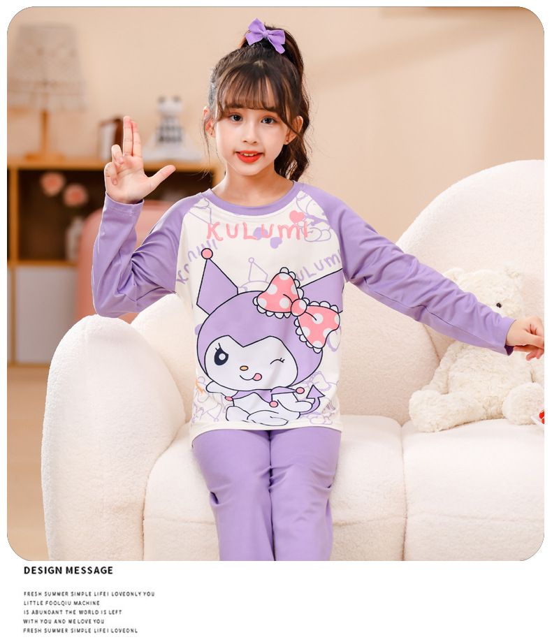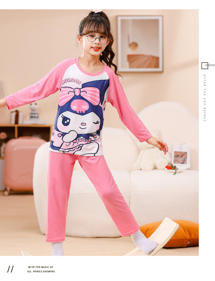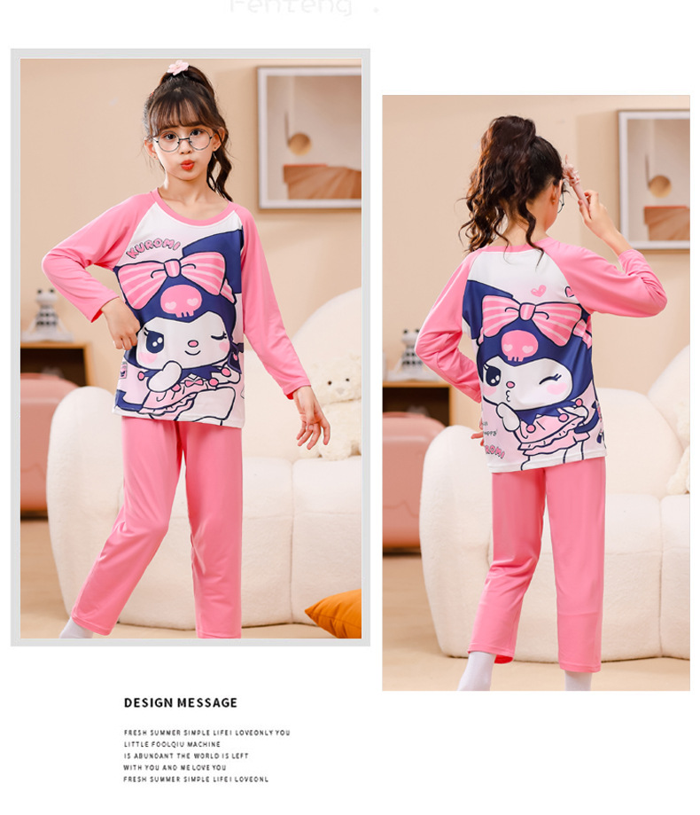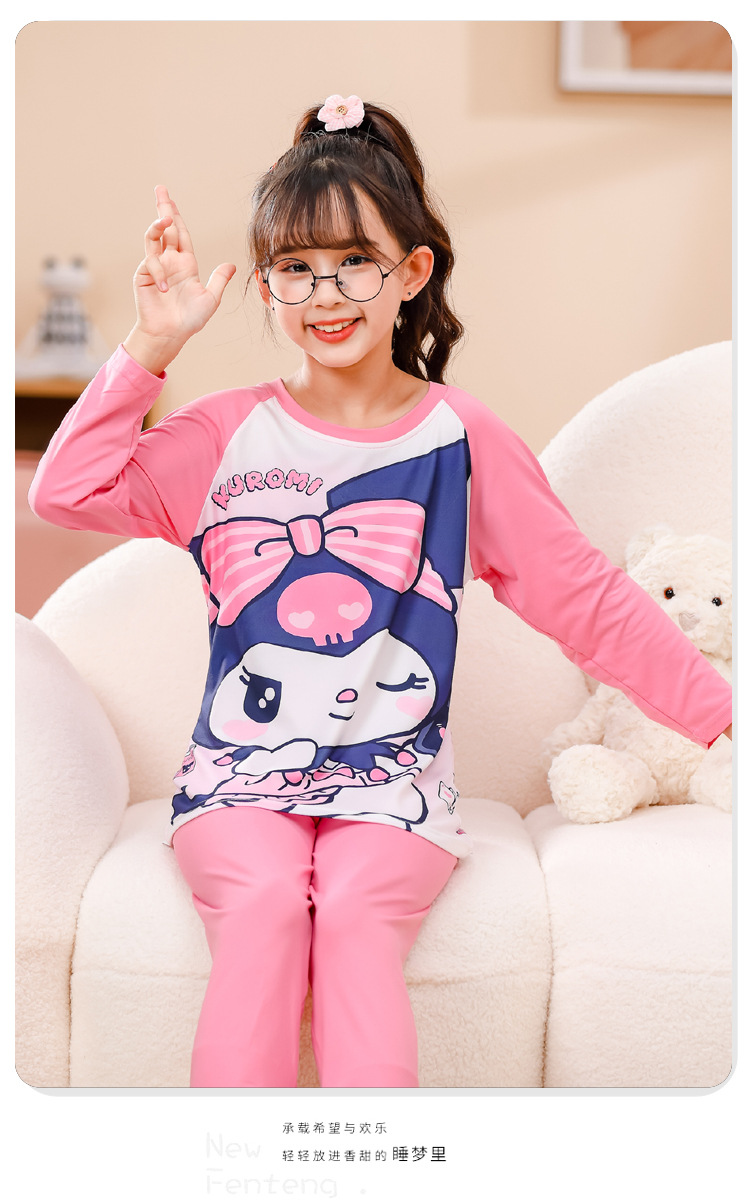 2023春季新款女童睡衣长袖长裤薄款套装库洛米中大童家居服批发