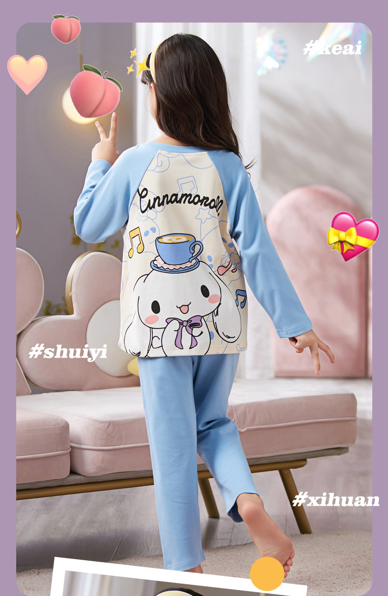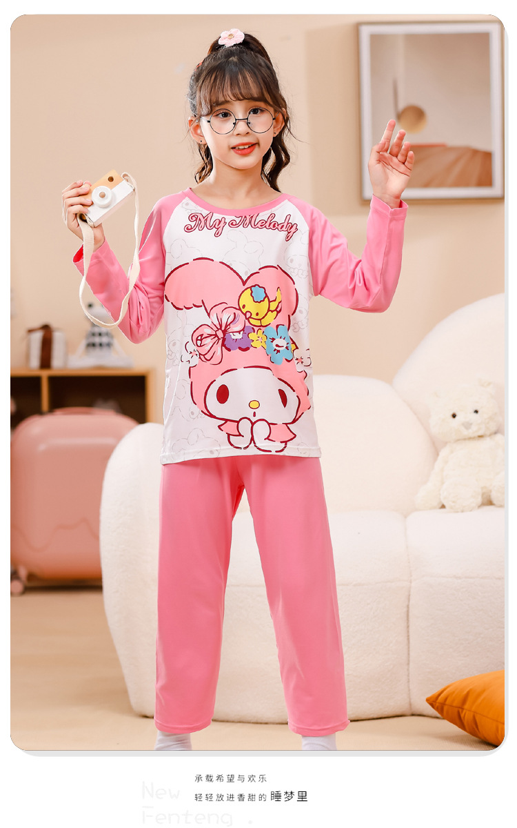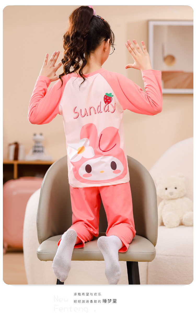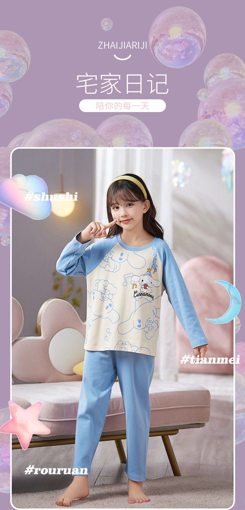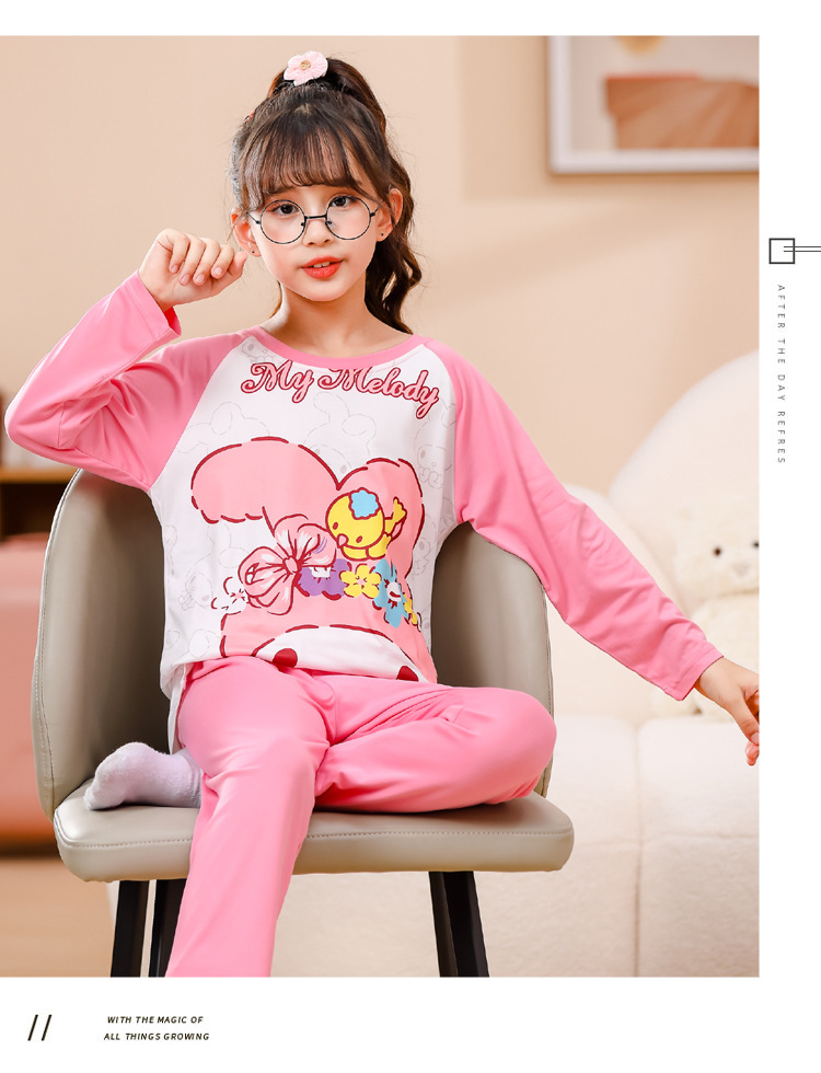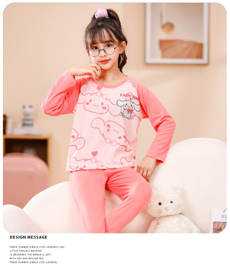 2023春季新款女童睡衣长袖长裤薄款套装库洛米中大童家居服批发