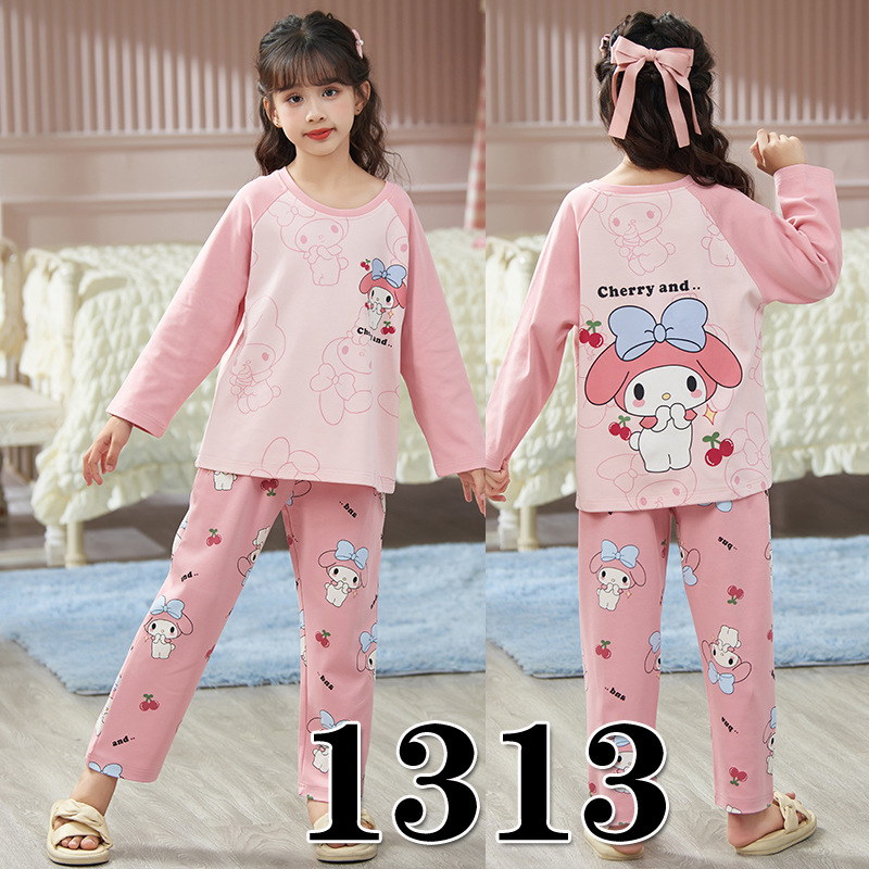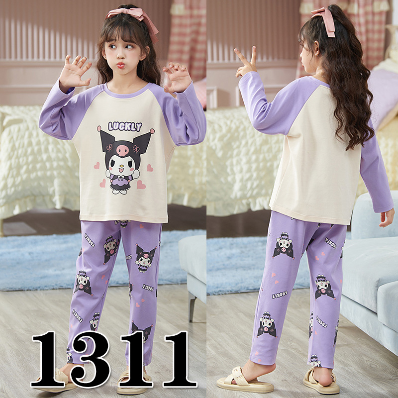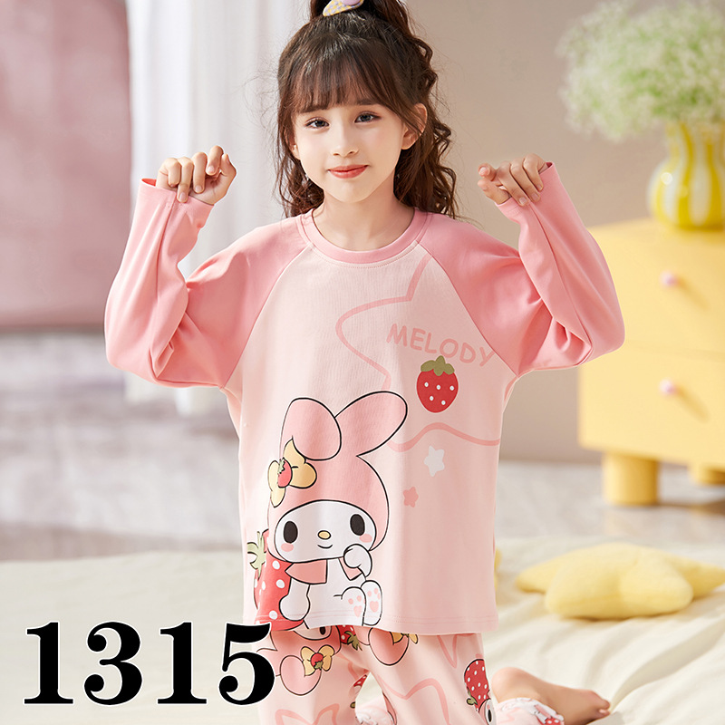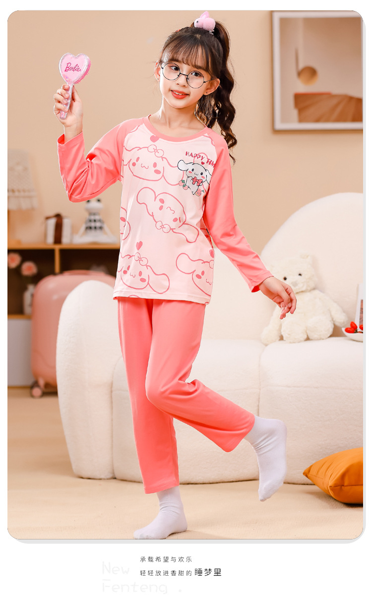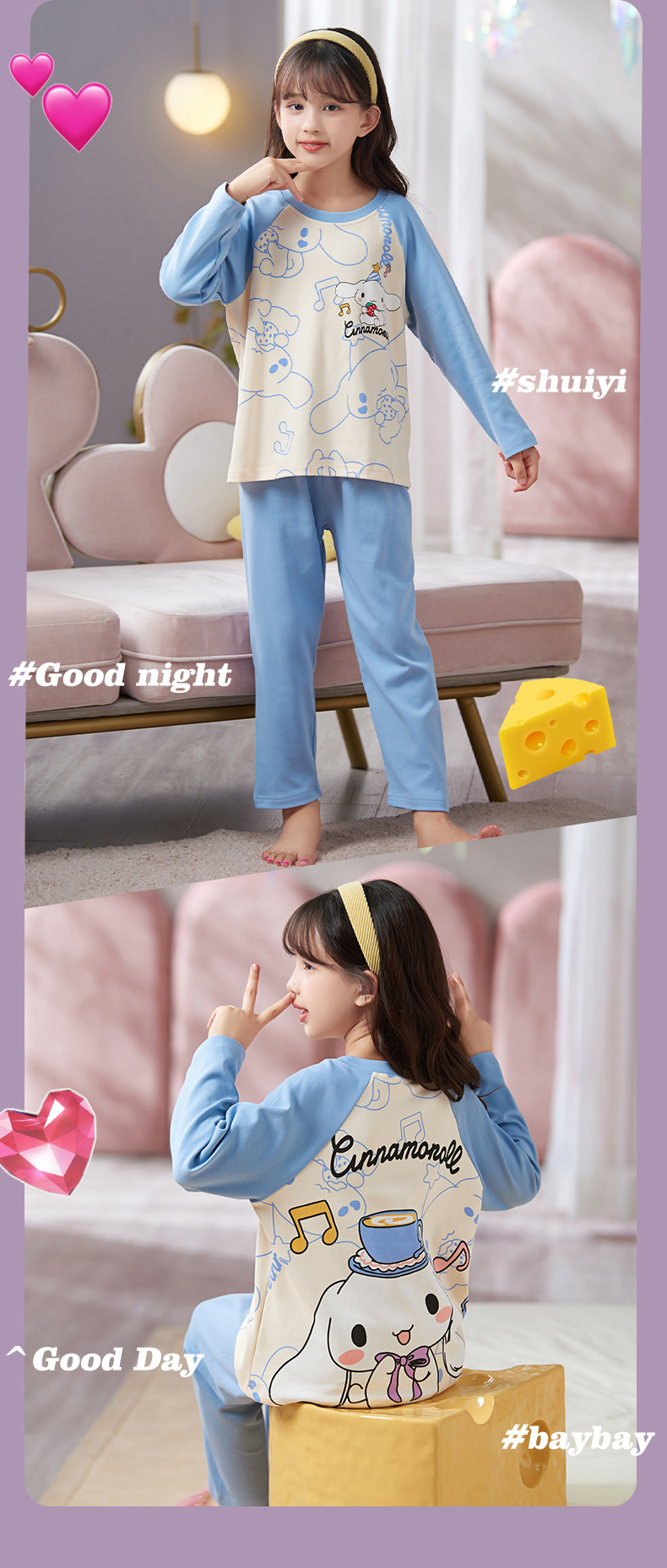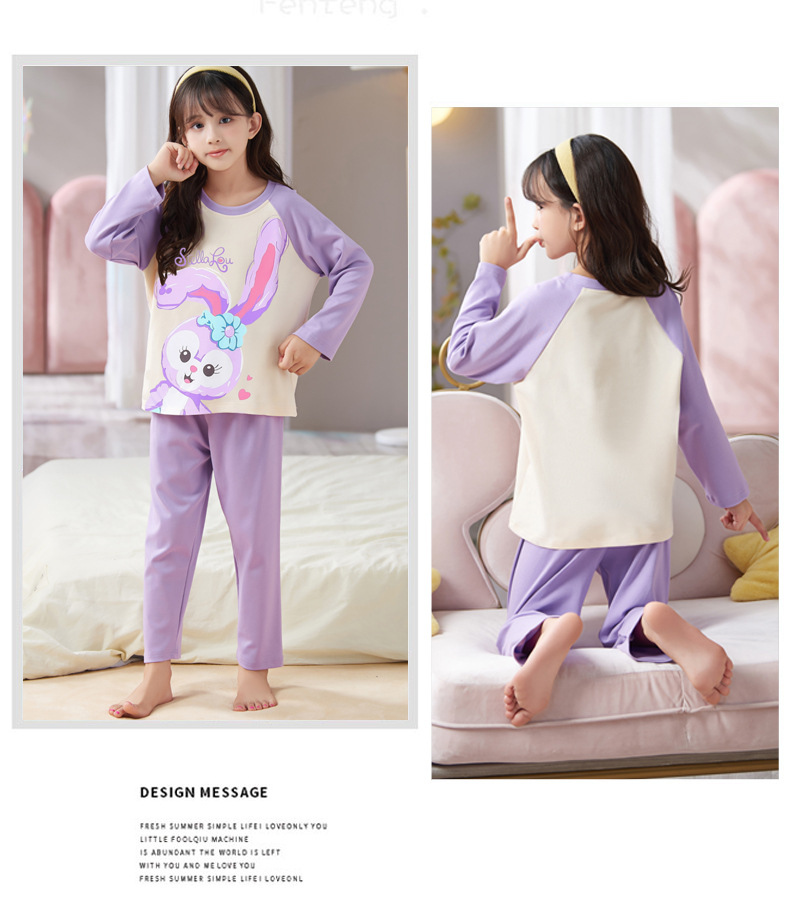 2023春季新款女童睡衣长袖长裤薄款套装库洛米中大童家居服批发