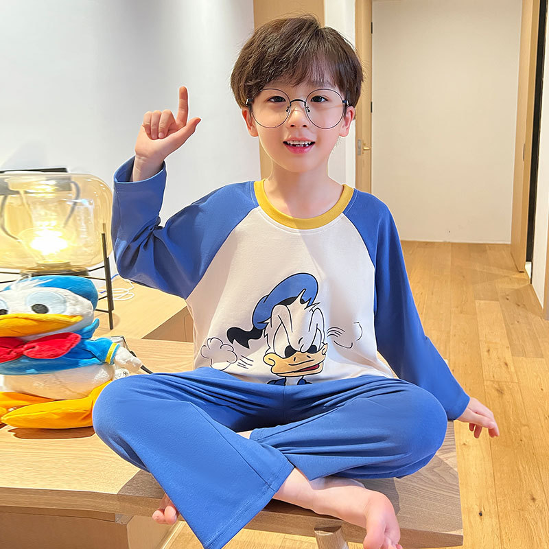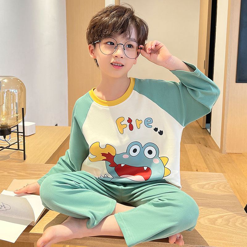 儿童睡衣春秋季长袖男女童可爱精梳棉卡通家居服圆领薄款套装冬季