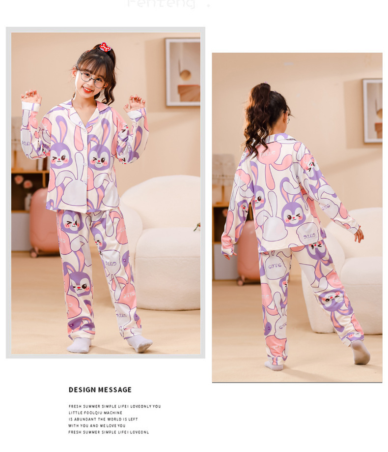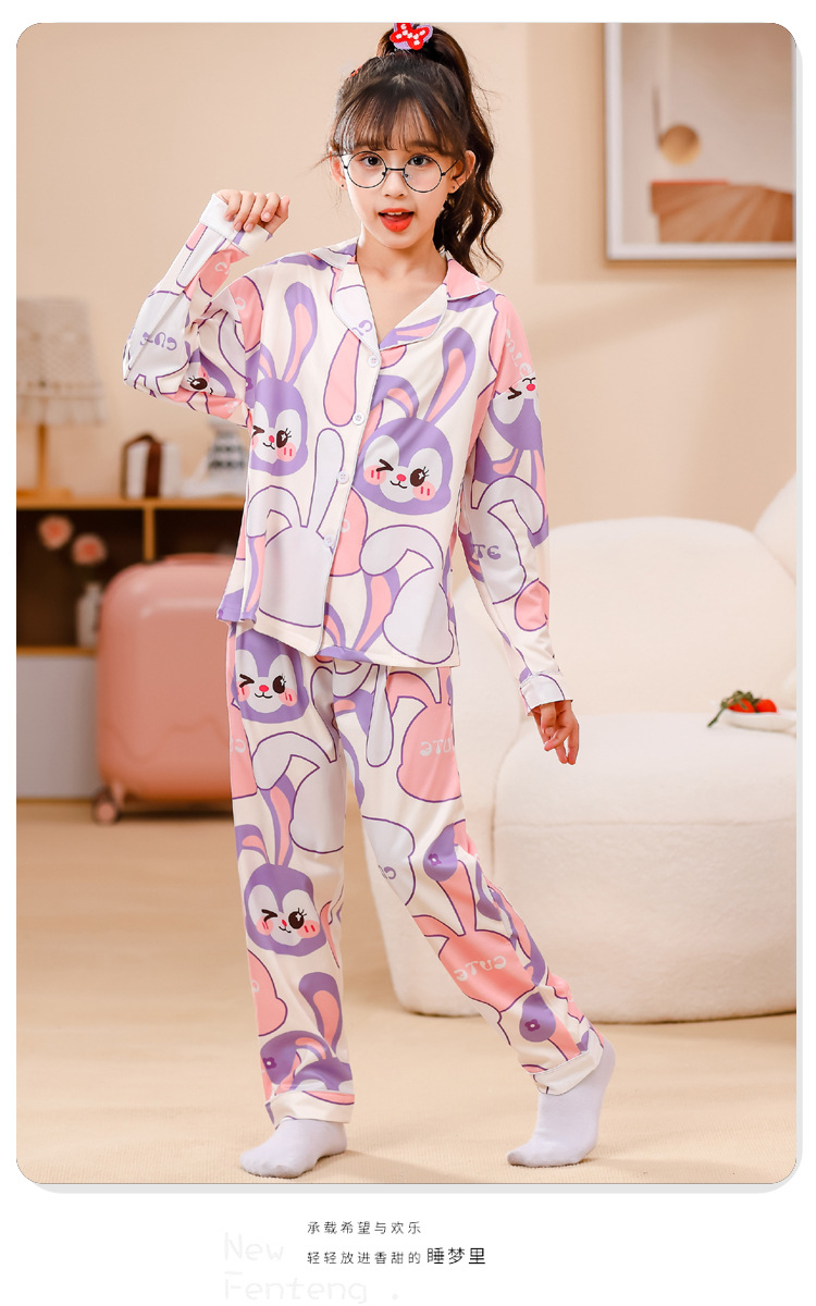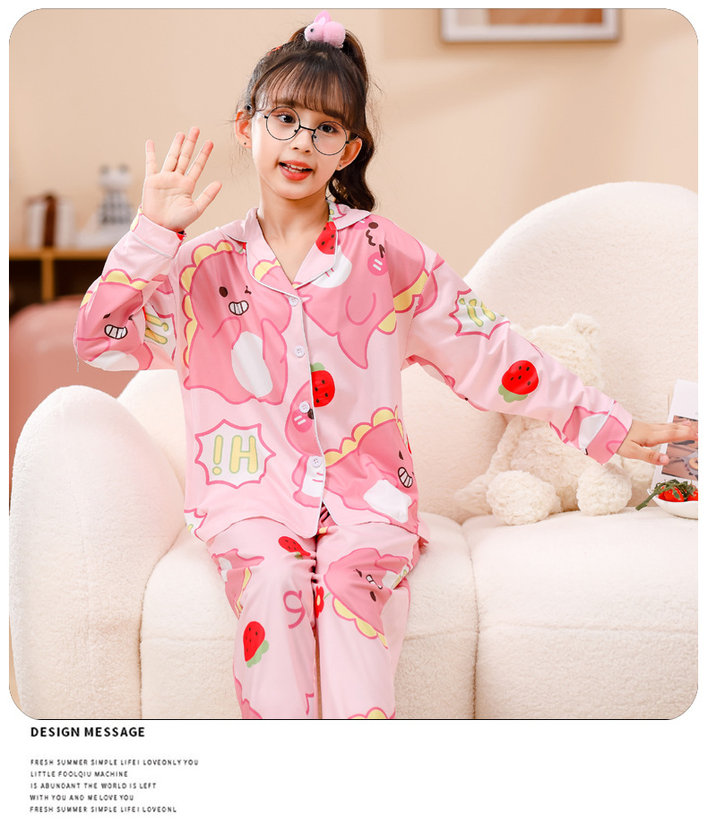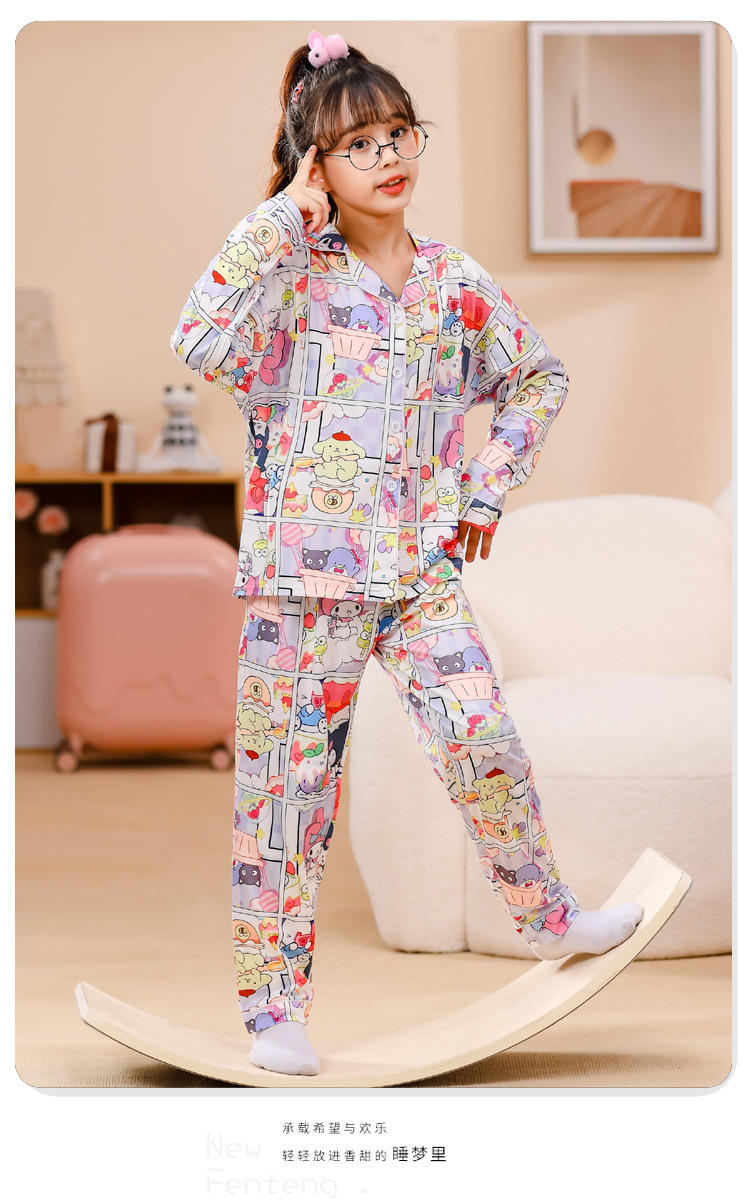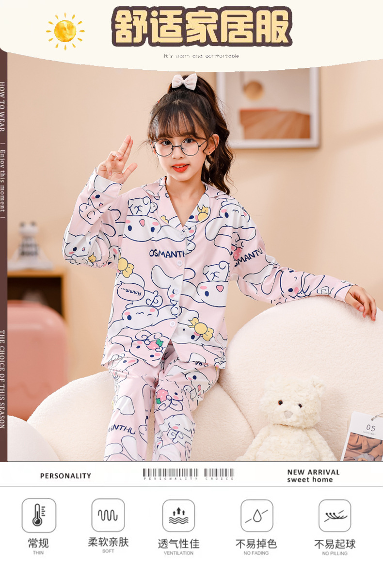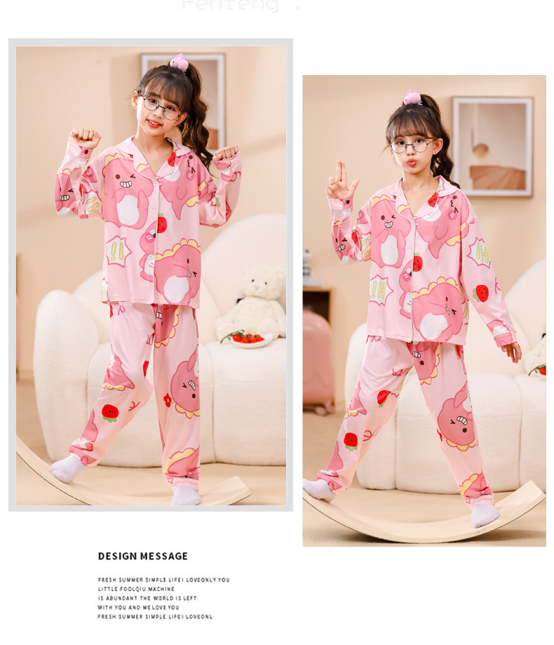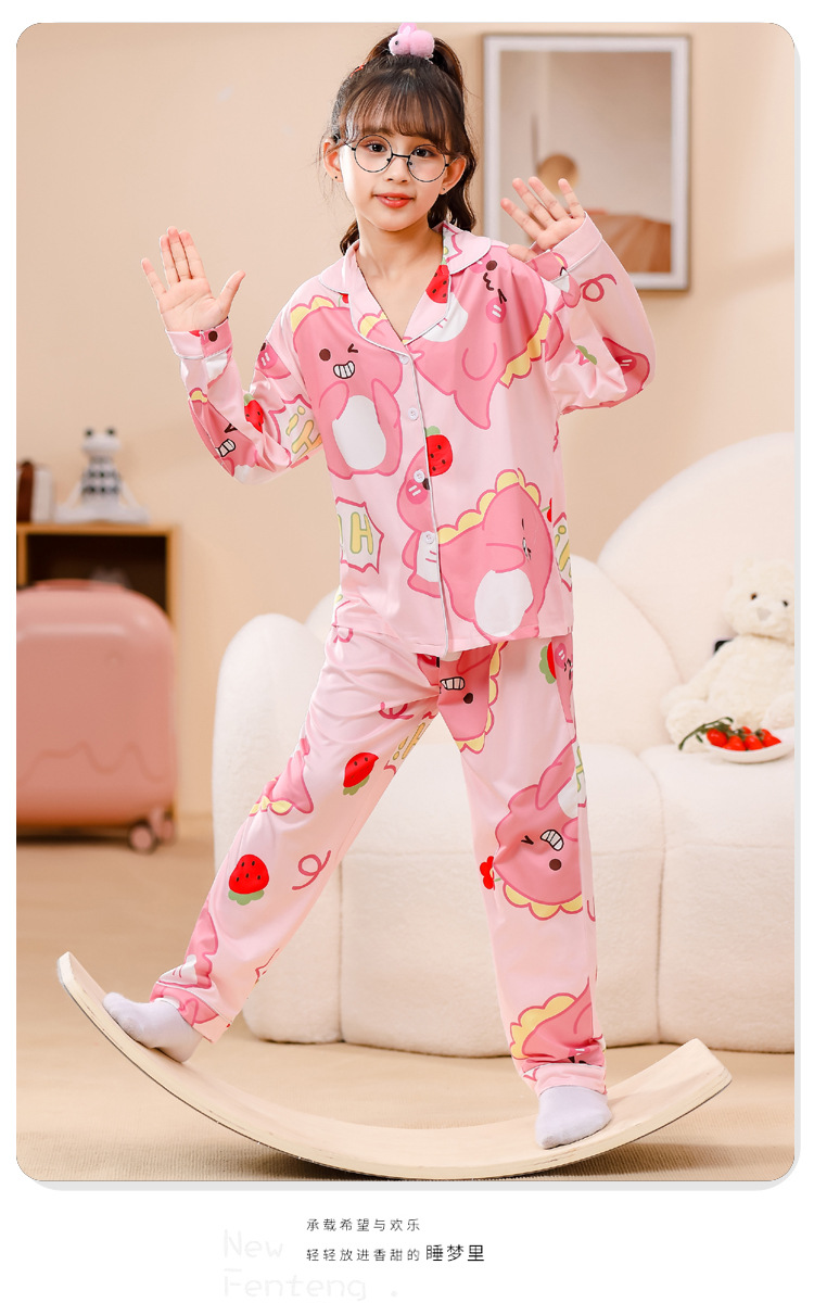 春秋季儿童睡衣套装宽松翻领长袖女童家居服女孩睡衣中大童空调服
